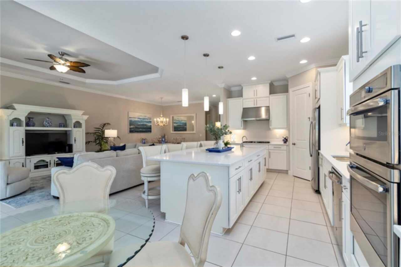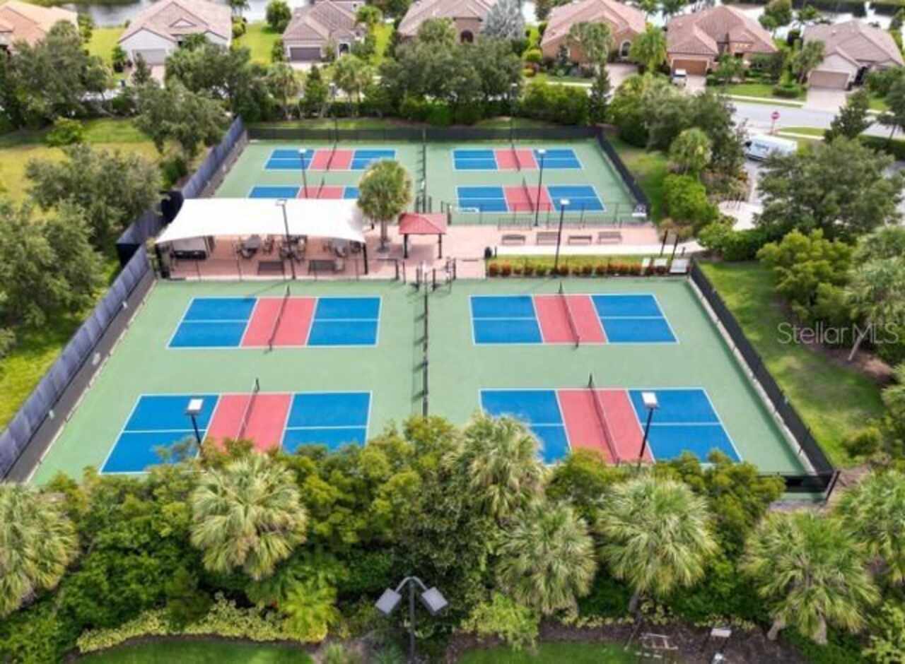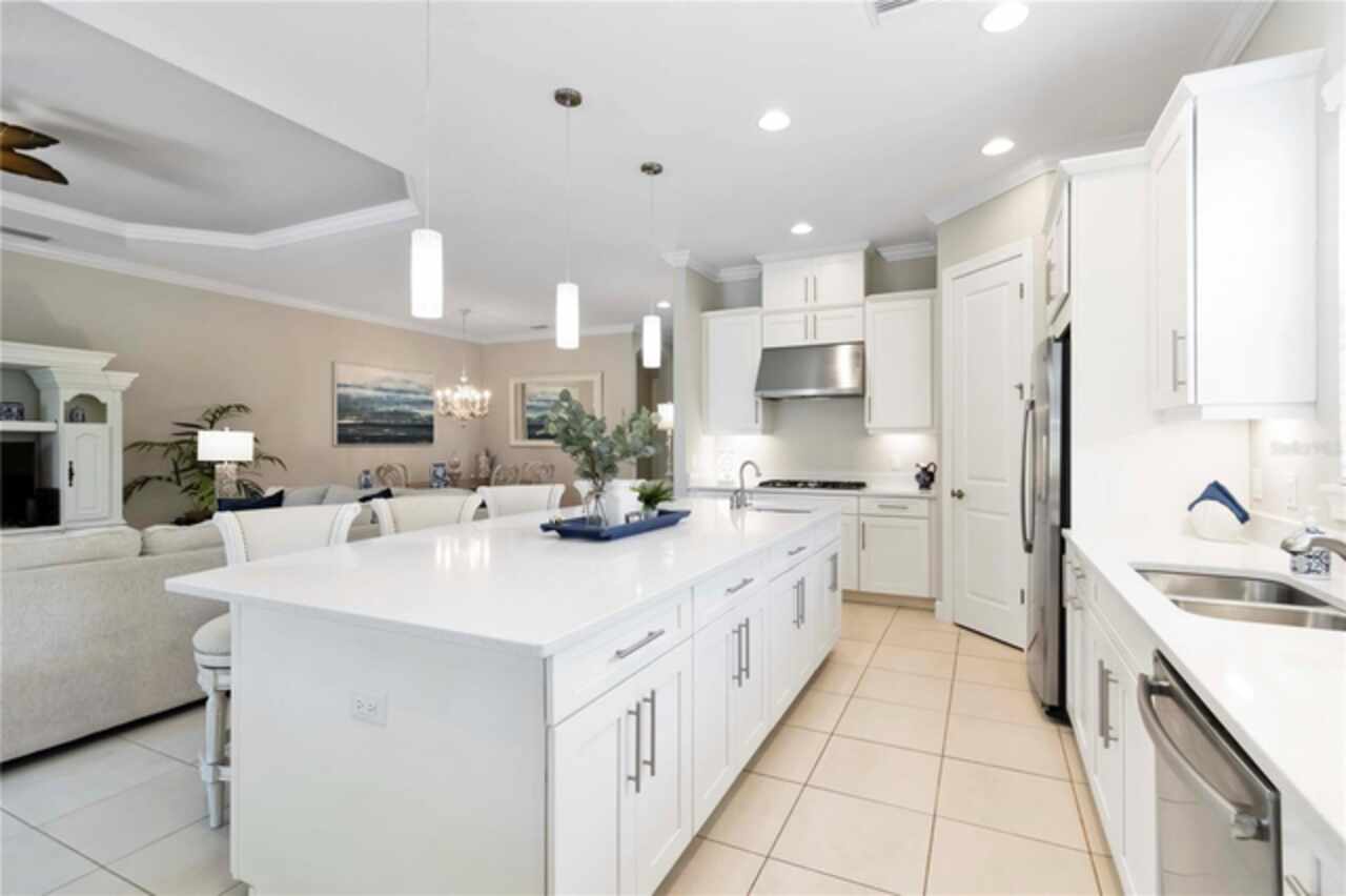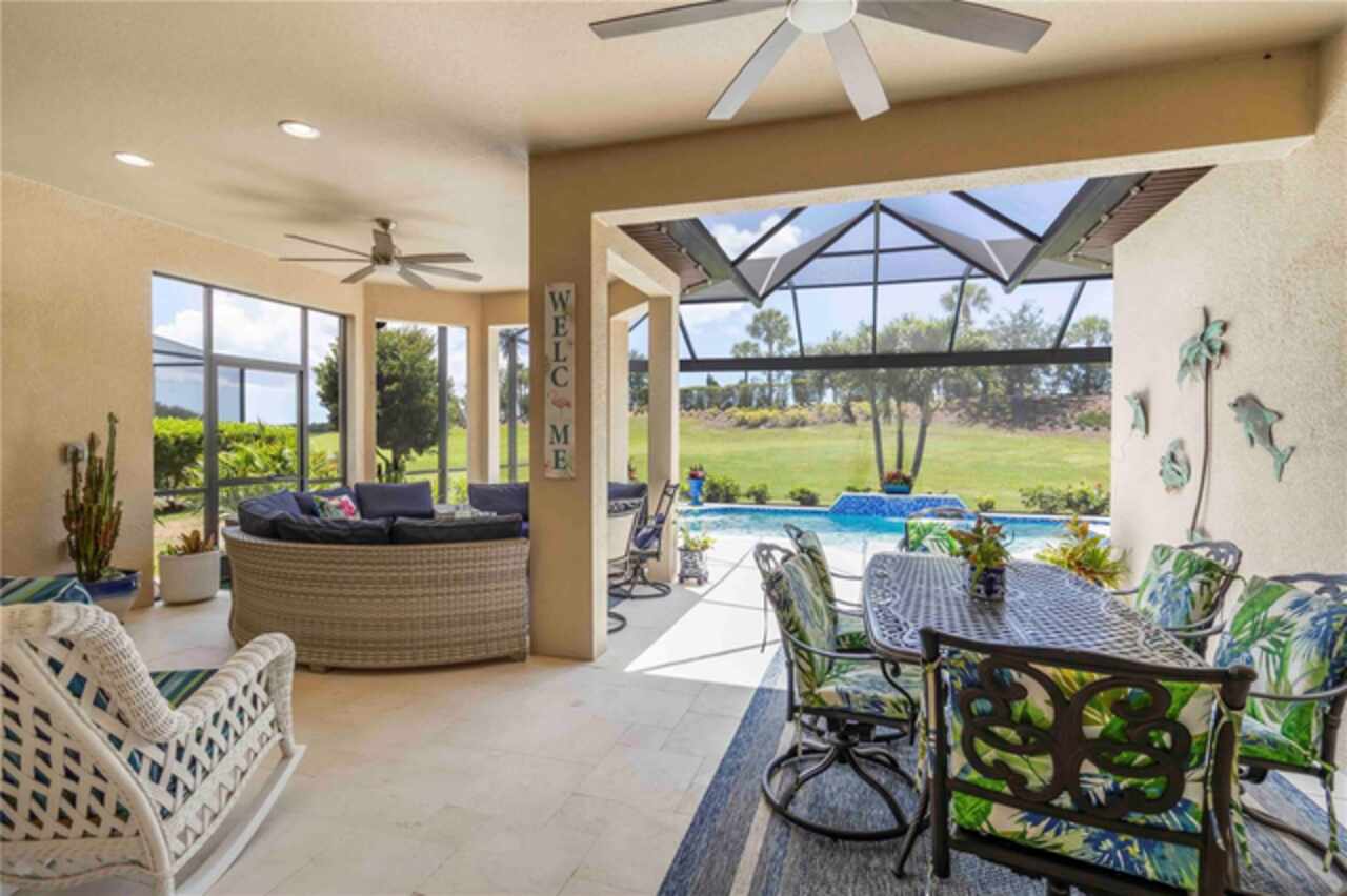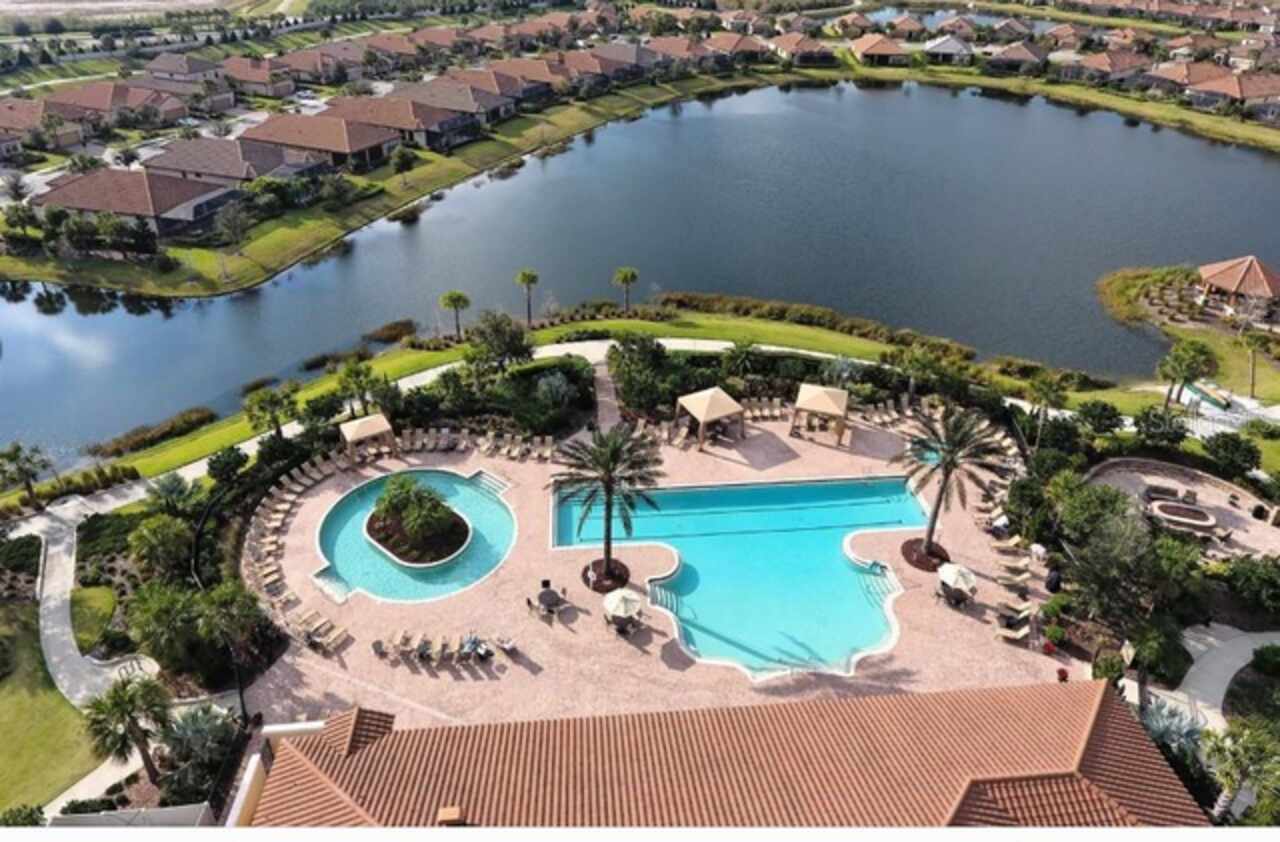 GOLF – SALT POOL – SUNSET Extended Lazio home in ESPLANADE with NEW Laminate floors in all bedrooms! Welcome to 4540 Terrazza Court, a beautifully maintained Lazio golf home on a spectacular lot in Esplanade at Lakewood Ranch, offering peaceful water views on one side and a lush panorama of towering palms and vibrant greenery from the lanai. Inside, this 3-bedroom, 3-bath home with an extended kitchen and flex study room offers a clean slate to make your own. The neutral palette, open layout, and inviting flow provide endless opportunities to design and personalize the space around your lifestyle. Designed for entertaining, the expanded travertine lanai sets the scene with a sparkling pool, relaxing spa, and waterfall feature—perfect for sunset gatherings or quiet mornings with coffee. Already plumbed for an outdoor kitchen so make it your own! The curated garden menagerie brings a storybook feel to your outdoor escape. Esplanade at Lakewood Ranch is a gated community offering a range of amenities including two fitness centers, full-service spa, bocce ball, pickleball courts, tennis club, fitness classes, walking trails, dog park, culinary center/club house, resort-style pool with private cabanas, resistance pool, and a full-service tiki bar and restaurant. This is a golf-deeded home. Bring your best offer — seller is motivated and ready to move!