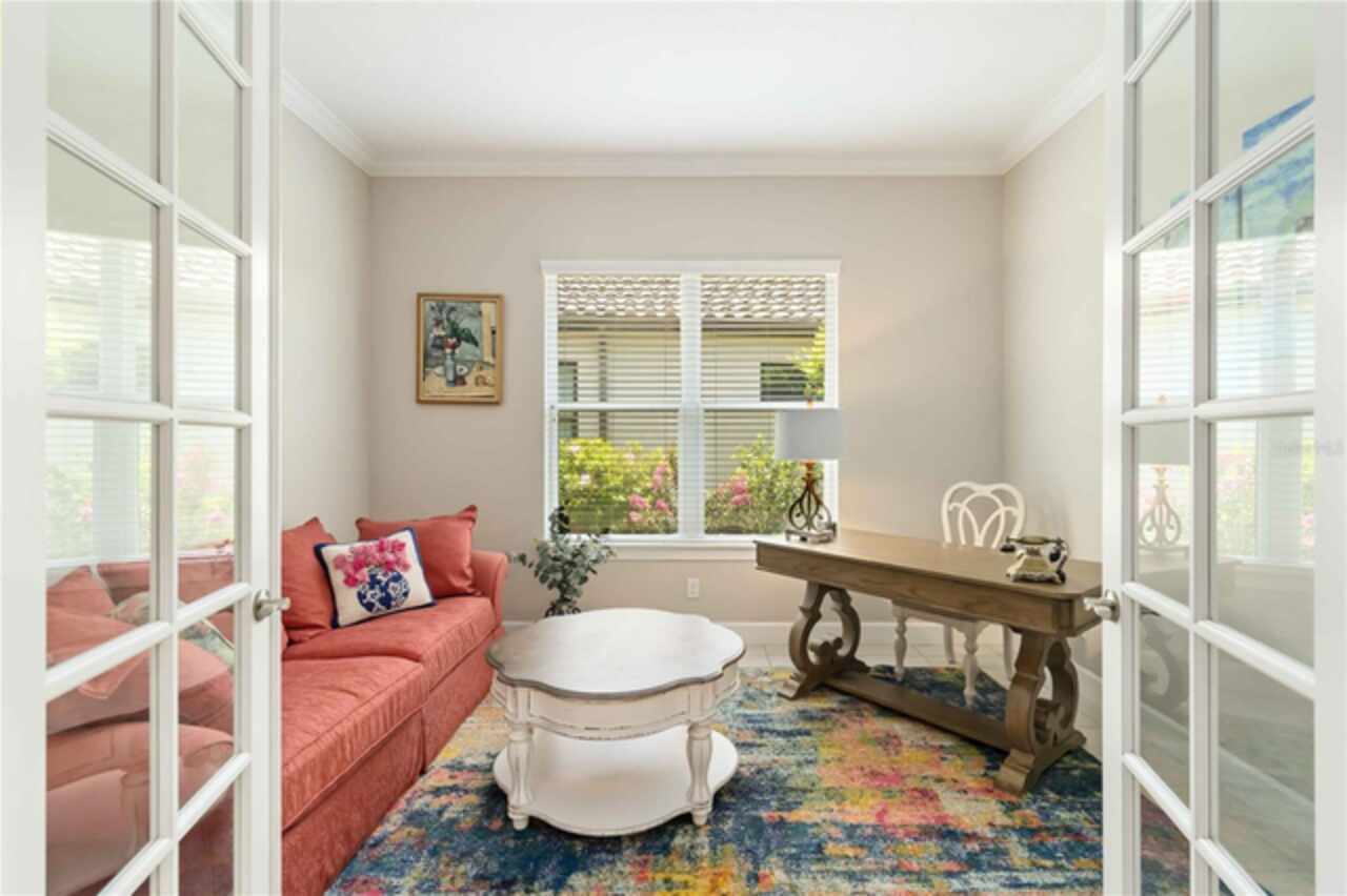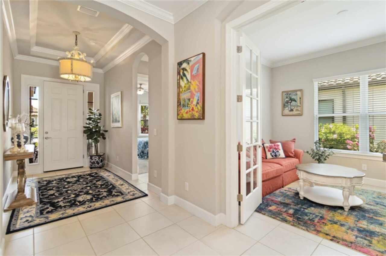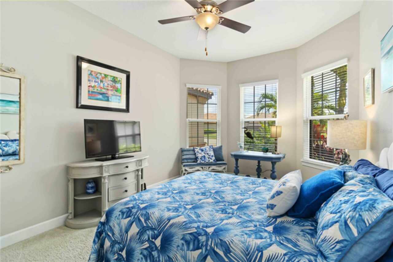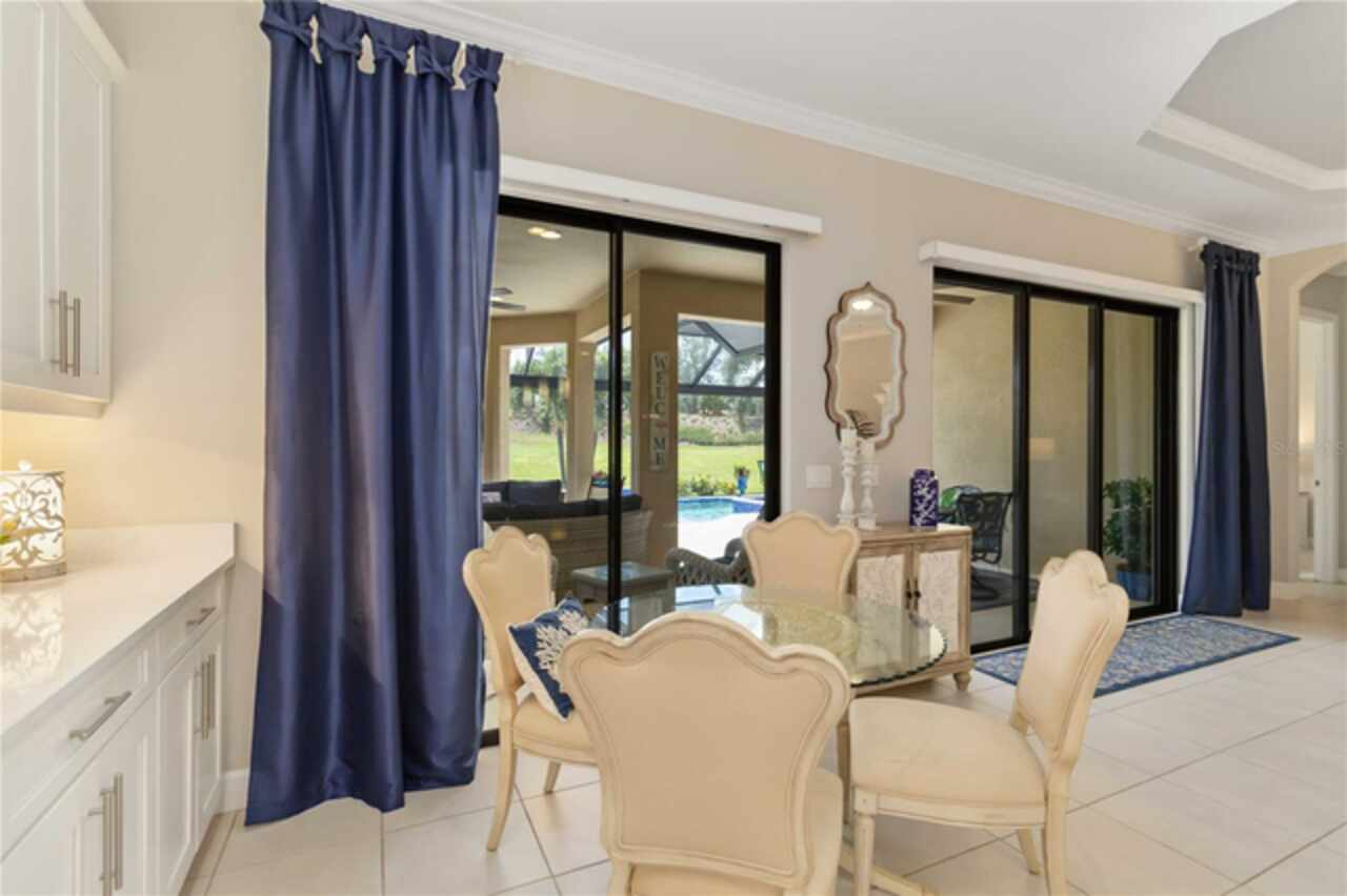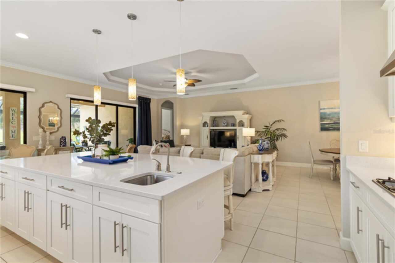 GOLF – SALT POOL – SUNSET Extended Lazio home in ESPLANADE with NEW Laminate floors in all bedrooms! Welcome to 4540 Terrazza Court, a beautifully maintained Lazio golf home on a spectacular lot in Esplanade at Lakewood Ranch, offering peaceful water views on one side and a lush panorama of towering palms and vibrant greenery from the lanai. Inside, this 3-bedroom, 3-bath home with an extended kitchen and flex study room offers a clean slate to make your own. The neutral palette, open layout, and inviting flow provide endless opportunities to design and personalize the space around your lifestyle. Designed for entertaining, the expanded travertine lanai sets the scene with a sparkling pool, relaxing spa, and waterfall feature—perfect for sunset gatherings or quiet mornings with coffee. Already plumbed for an outdoor kitchen so make it your own! The curated garden menagerie brings a storybook feel to your outdoor escape. Esplanade at Lakewood Ranch is a gated community offering a range of amenities including two fitness centers, full-service spa, bocce ball, pickleball courts, tennis club, fitness classes, walking trails, dog park, culinary center/club house, resort-style pool with private cabanas, resistance pool, and a full-service tiki bar and restaurant. This is a golf-deeded home. Bring your best offer — seller is motivated and ready to move!