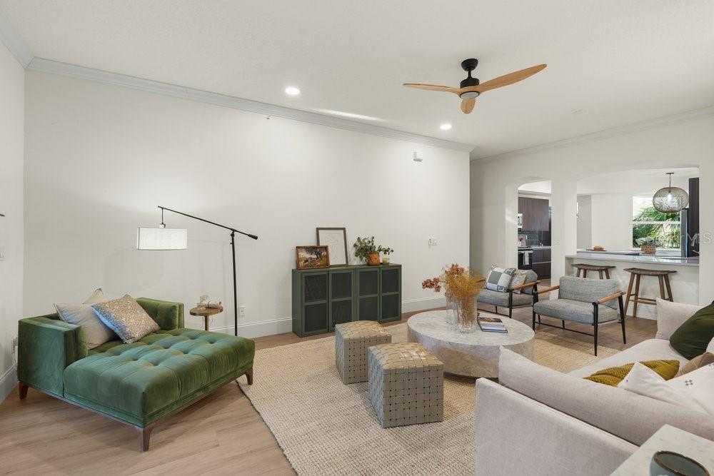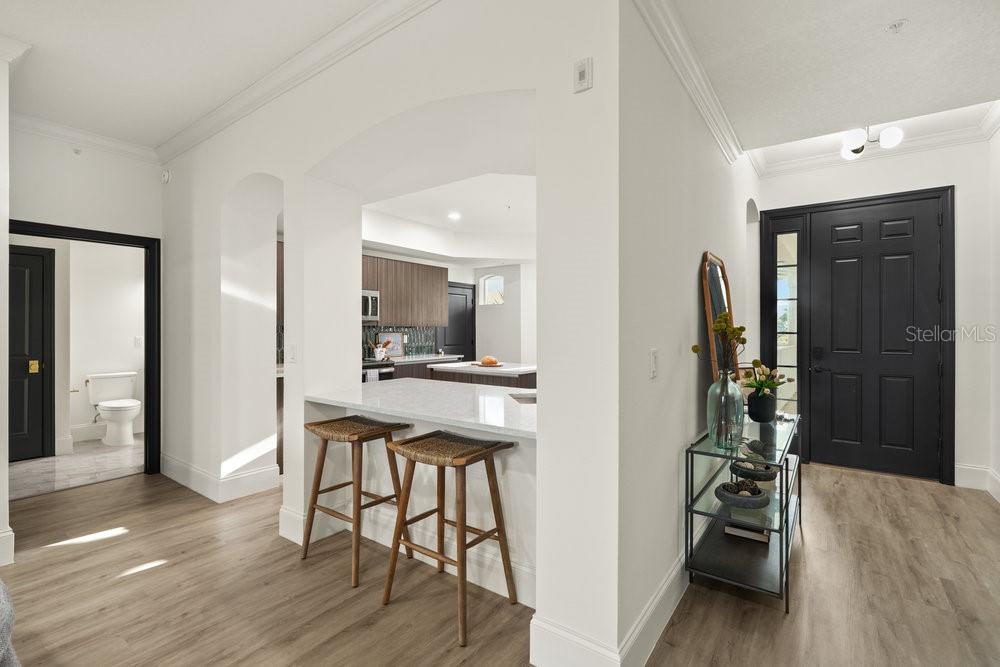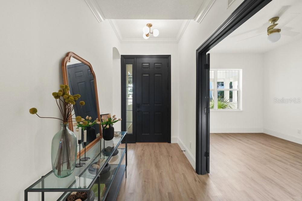 Experience Coastal Luxury Along the Intracoastal — The luxurious Pinehurst Model at Grand Vista in the premier gated golf community of Grand Haven. This exclusive enclave offers resort-style amenities including two pools, world-class golf, tennis and pickleball courts, scenic walking trails along the river, fitness center, playgrounds and an on-site restaurant—all surrounded by lush, tree-lined streets and timeless coastal beauty. Positioned to capture tranquil Intracoastal Waterway views and with 2 CAR GARAGE, this newly completed residence defines elevated living with high-end design and flawless attention to detail. Inside, you’ll find Luxury Quartz Stone countertops, handcrafted Italian tile and Lioher European kitchen cabinetry illuminated by Williams Sonoma designer lighting. The kitchen itself is a true showpiece, featuring a GE appliance package and a layout designed for effortless entertaining and everyday indulgence. The open-concept design flows gracefully beneath 10-foot ceilings, complemented by elegant crown moulding, 7-inch baseboards, and high-grade LVT flooring that marries luxury with livability. The primary suite exudes serenity and sophistication, featuring a free-standing soaking tub, brushed gold fixtures and Toto appointments that transform daily routines into spa-like experiences. High-impact windows bathe the home in natural light, while a screened-in patio invites you to unwind and take in the lush surroundings. A private 2-car garage adds a rare and highly coveted convenience—perfect for those who value both security and space. Additional highlights include a fully equipped laundry room with cabinetry, sink, washer, and dryer, along with a thoughtful layout designed for comfort, style, and seamless entertaining. Ideally located just minutes from boutique shopping, fine dining, and Palm Coast’s pristine beaches, this home offers a lifestyle that feels both exclusive and effortless. The Pinehurst at Grand Vista isn’t just a residence—it’s a statement of refinement, craftsmanship and Florida coastal living at its finest. Schedule your private showing today and experience the height of Grand Haven elegance.