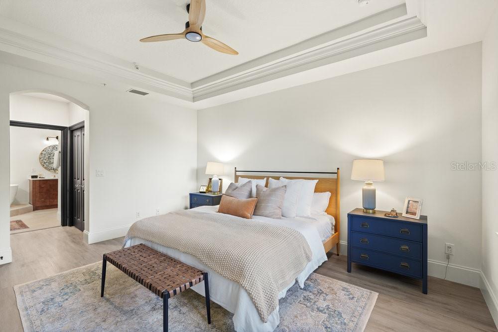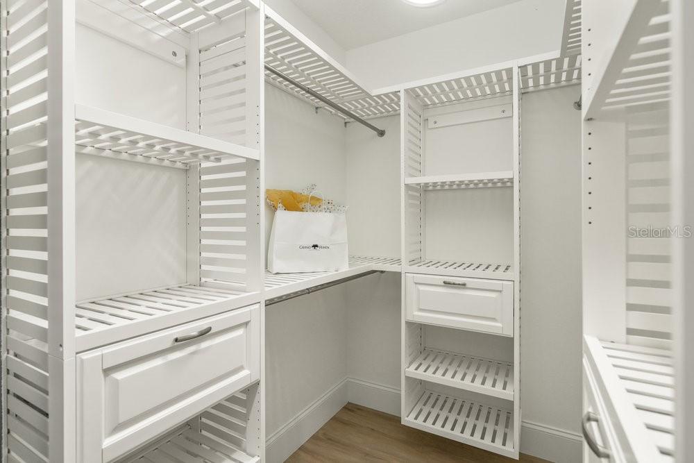 Built-in Features, Ceiling Fans(s), Crown Molding, Eat-in Kitchen, High Ceilings, Open Floorplan, Primary Bedroom Main Floor, Solid Surface Counters, Split Bedroom, Stone Counters, Thermostat, Walk-In Closet(s)