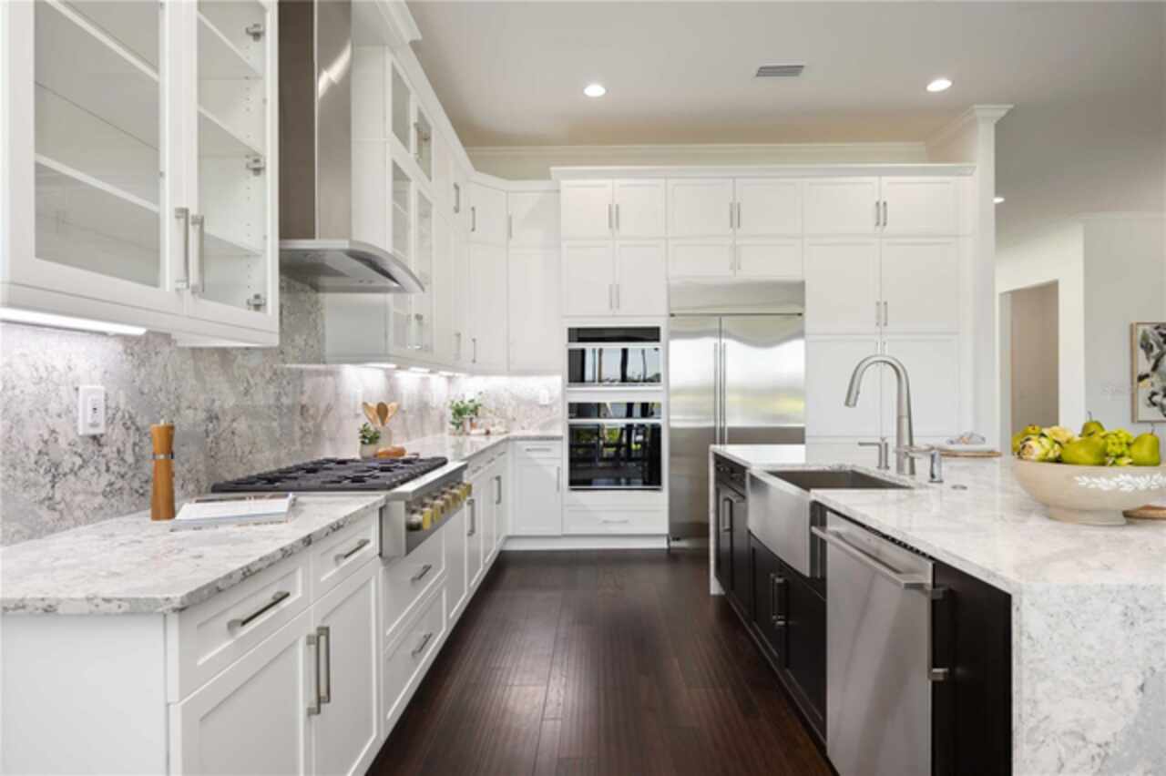 Under contract-accepting backup offers. One or more photo(s) has been virtually staged. NEW PRICE IMPROVEMENT!!! STUNNING, HIGHLY UPGRADED BRAND NEW HOME with Long Water View in Artistry Sarasota with NO CDD Fees. Welcome to luxury living in the sought-after gated community of Artistry Sarasota, maintenance-free living with landscaping and irrigation included. This meticulously upgraded single-family home offers 3 bedrooms, 3 full bathrooms, a den and over 3, 000 square feet of thoughtfully designed living space, set on a premium homesite with a long, tranquil water view. Nearly $300, 000 in builder upgrades elevate this home to a rare find in Artistry Sarasota. Highlights include solid core doors, smooth wall finishes, premium paint, and crown molding, while hardwood floors flow throughout the bedrooms, great room, kitchen, and den. The gourmet dream kitchen showcases Monogram appliances, including a convection and Advantium wall oven, second tier cabinets, soft-close cabinetry, quartz countertops with waterfall edge and backsplash, a farm house sink, and a large entertaining island. The owner’s suite offers a bay window overlooking the lake, oversized walk-in closet, and a spa-style bath with dual vanities and a floor-to-ceiling tiled shower with dual shower heads. Enjoy the Florida lifestyle and serene water view from the extended screened lanai. Additional features include a 3 car tandem garage, all impact-glass windows, Sonos speakers, Wi-Fi extender, keyless entry, and a smart garage camera system. The laundry room offers 42” upper cabinets, washer and gas dryer on pedestals, and thoughtful storage. Life in Artistry Sarasota offers more than just a beautiful home—it’s a true lifestyle community. Residents enjoy a wide array of amenities including a state-of-the-art fitness center, resort-style pool, basketball court, pickleball court, playground, and scenic walking trails. Whether you're seeking wellness, activity, or relaxation, Artistry is designed to enrich your daily life in a serene, gated setting close to everything Sarasota has to offer. Conveniently located near Lakewood Ranch, downtown Sarasota, world-class beaches, dining, and shopping. This home was designed for the most discerning buyer-schedule your private tour today and experience the elegance and comfort that make Artistry truly special.