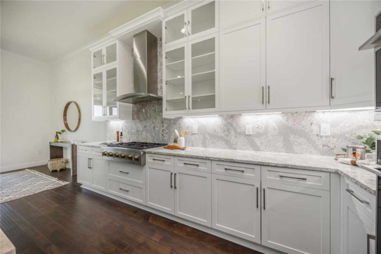 Coffered Ceiling(s), Crown Molding, Eat-in Kitchen, High Ceilings, In Wall Pest System, Kitchen/Family Room Combo, Open Floorplan, Primary Bedroom Main Floor, Smart Home, Solid Wood Cabinets, Split Bedroom, Stone Counters, Thermostat, Tray Ceiling(s), Walk-In Closet(s)