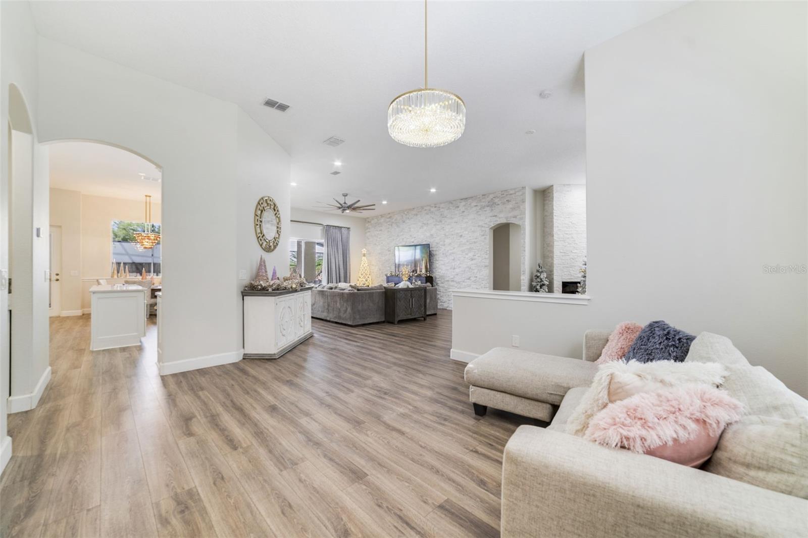 One or more photo(s) has been virtually staged. Discover comfortable LUXURY and UPGRADES galore in this meticulously maintained ***CUSTOM BUILT ~ POOL HOME*** perfectly situated on a .39 ACRE LOT at the end of a quiet CUL-DE-SAC in the sought-after GATED Wekiva Preserve! Major improvements are already done for you ***ROOF (2020) and the A/C (2021/2023)***, and LUXURY VINYL PLANK flooring throughout, setting the stage for truly turn-key living. Step inside through double front entry doors and feel the grand sense of space with 5-bedrooms (with an option for a 6th!), 5.5-baths, high ceilings, rounded corner details, plantation shutters, and a light, bright OPEN CONCEPT that offers both formal and family spaces. The expansive main floor delivers a thoughtful SPLIT BEDROOM layout, and the private PRIMARY SUITE sits quietly at the back of the home with direct access to the lanai. This tranquil retreat includes not one but TWO WALK-IN CLOSETS, and a luxurious en-suite bath offering dual sinks, a soaking tub, and an enormous step-in shower with dual shower heads – a true spa-like experience! The UPGRADED CHEF’S KITCHEN checks every box with soft-close cabinetry, stainless steel appliances, complementary backsplash, a pantry outfitted by California Closets (you will find custom closets in many of the rooms!), wet bar with stone accents and wine cooler, plus a charming coffee bar! TRIPLE SLIDING GLASS DOORS open wide to the outdoor oasis where indoor/outdoor living takes center stage. Your private sanctuary features an inviting pool with WATERFALL, OUTDOOR GRILL and bar space, a full POOL BATHROOM and a cozy FIREPLACE – all framed by an extended screened lanai with pavers. Beyond the screen enclosure, the patio continues with a built-in cast concrete fire pit and a FULLY FENCED backyard. There is even a convenient cabana bath for days spent poolside. Need flexibility? You will love the second floor – a versatile suite that consists of a full bedroom and en-suite bath, perfect for in-law quarters, guest space, home theater, game room, or loft. A downstairs guest bedroom also connects to a full bath and bonus room that could easily function as a sixth bedroom if desired. Additional highlights include: an OVERSIZED 3-CAR GARAGE, custom laundry room with quartz counters and cabinets, CUSTOM STONE ACCENTS THROUGHOUT, niche details, and more upgrades than you can count. All of this in a prime location close to I-4, 429, top-rated schools, Wekiwa Springs State Park, shopping, dining, and everyday conveniences. Homes of this caliber are rare, schedule your tour today and fall in love with Chinahill Court!