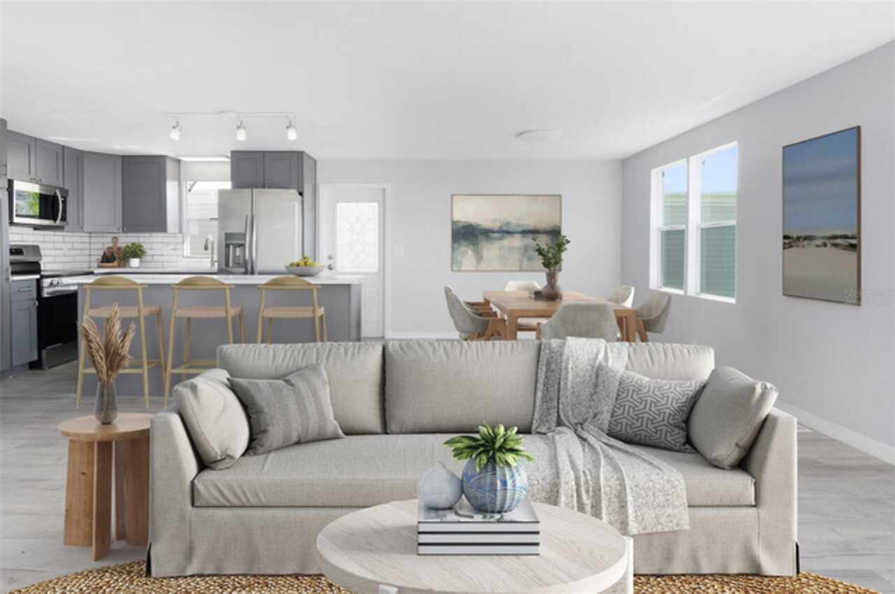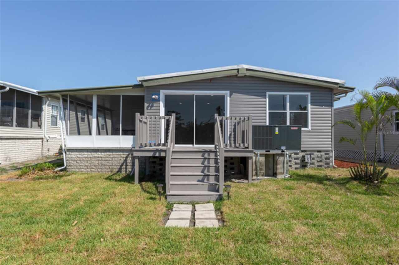 Live in the Florida lifestyle in this beautifully remodeled waterfront home. As you step into the inviting screened porch, you are greeted by serene waterfront views. This spacious 3-bedroom. 2-bath home features new stainless appliances, updated cabinets, a large custom island, solid granite surface countertops, and new ductwork. Enjoy plenty of parking for up to 4 cars. No interior flooding in 2024 hurricanes, providing peace of mind. The price includes a share of the lot and ownership in the co-op. Located in Americana Cover, a vibrant 55+ waterfront community, your only 10 minutes to downtown St. Petersburg and 25 minutes to Tampa International Airport. Don't miss your chance to own a waterfront property at an incredible price.