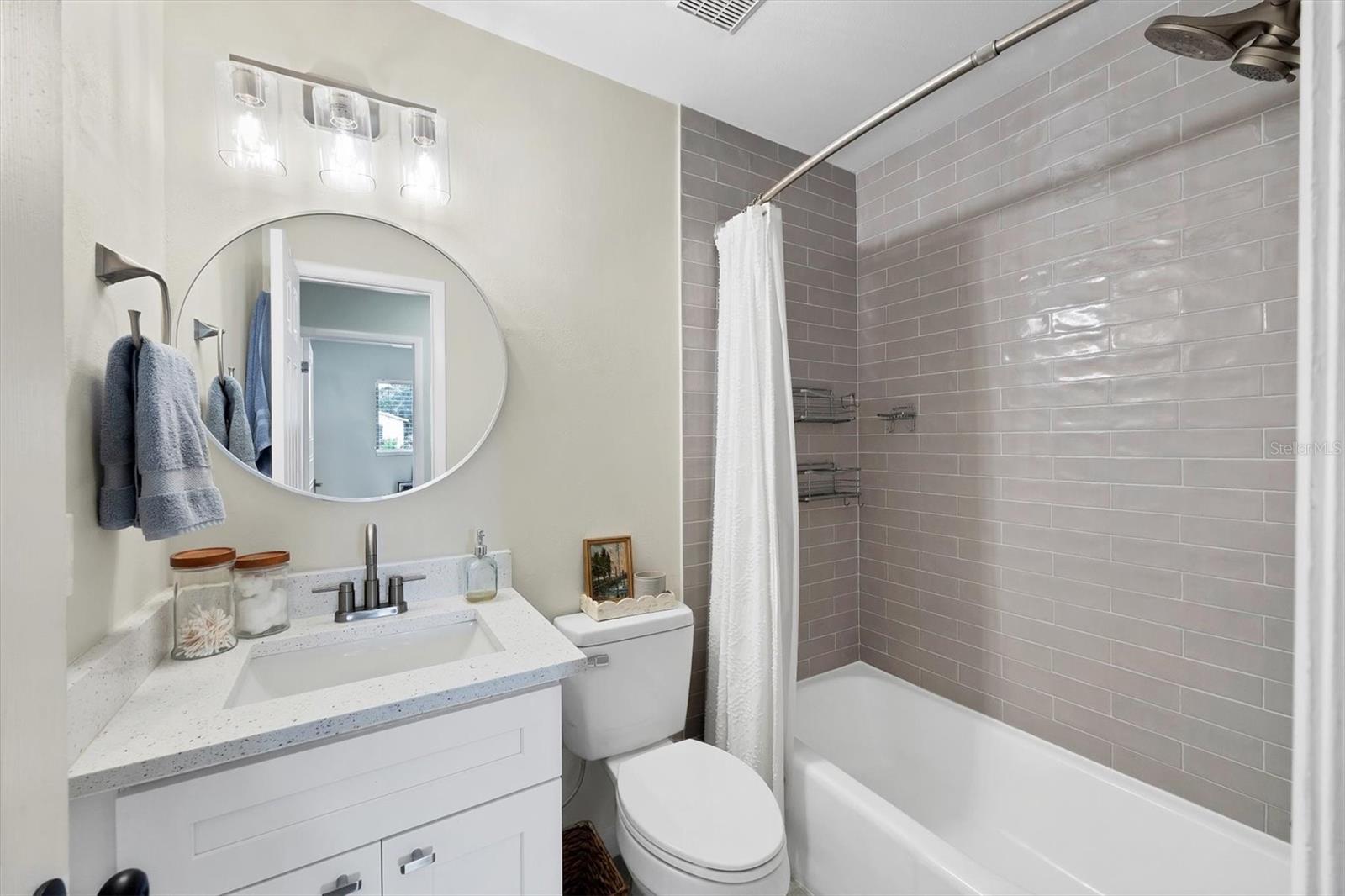 Stylishly updated and meticulously maintained four-bedroom, two-bath pool home, ideally on a quiet cul-de-sac in one of West Bradenton’s desirable neighborhoods. Entering inside, you’ll discover a bright, open floor living space with vaulted ceilings, luxury waterproof vinyl plank flooring and glass sliders leading to the pool. The modern kitchen is a culinary haven, featuring shaker-style cabinetry, quartz countertops, stainless steel appliances, a breakfast bar, closet pantry for storage, striking tri-color subway tile backsplash and reverse osmosis system. The spacious primary suite offers private access to the covered patio, a spa-inspired en-suite bath with a seamless glass shower, custom tile finishes, a dual sink quartz vanity and stone-style finish tile flooring. Three additional bedrooms provide ample space for a growing family, guests, or a home office, each with updated closets. Guest bath exhibits new mosaic tile flooring, updated vanity and subway tile finishes in the shower and tub. Enjoy your own backyard oasis with a screened-in refinished pool deck and resurfaced pool (2024), covered lanai, new sod and a fully fenced yard, ideal for entertaining or relaxing in privacy. The home is equipped with a fully functional well pump and newer irrigation system, offering lush landscaping without the water bill. Additional upgrades include fresh interior paint and modern baseboards, new ceiling fans and closet doors throughout, and expanded attic storage. Plus, an oversized driveway with two-car garage, newer HVAC (2022), low HOA fees and community pool. Built to withstand Florida’s toughest weather, this concrete block home in Flood Zone X sustained zero damage during last year’s hurricane season with no lost shingles, no flooding and peace of mind, according to the owner. Just minutes from GT Bray Park, IMG Academy, top-rated golf courses, Bradenton Christian School and the world-renowned beaches of Anna Maria Island, this home offers a blend of comfort, style and location. Don’t miss this rare opportunity to own a move-in-ready pool home in a prime location with thoughtful upgrades and exceptional care throughout.