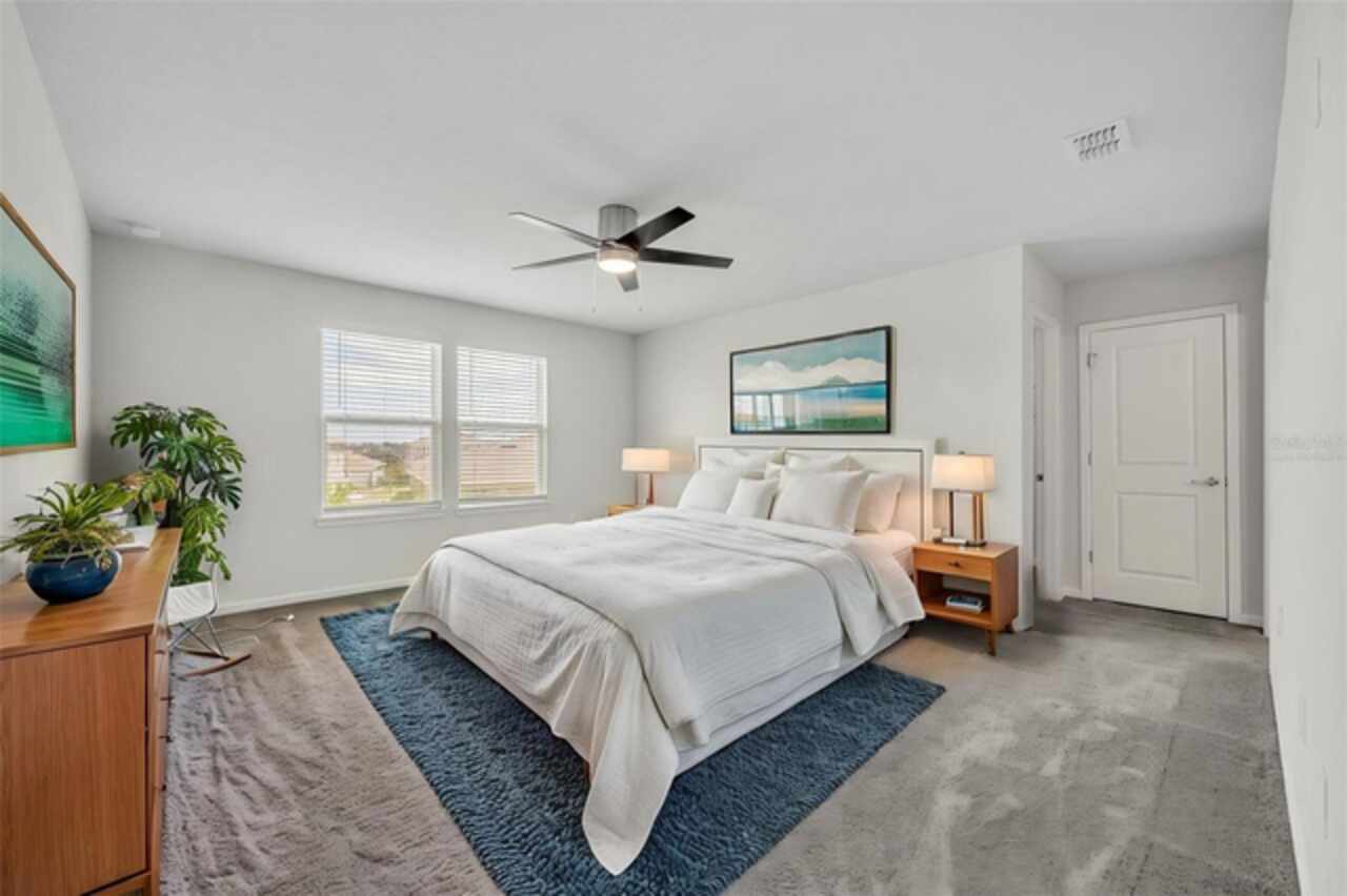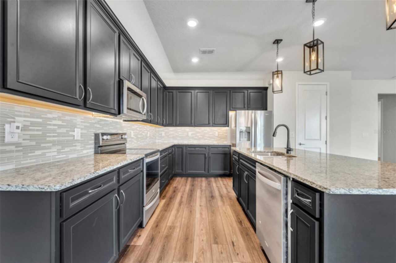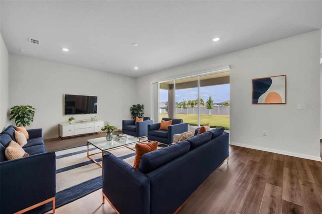 One or more photo(s) has been virtually staged. Welcome to your practically new 5-bedroom, 3.5-bathroom sanctuary—a stunning 2022-built residence offering turnkey living in the exclusive, gated waterfront community of Lakeview Preserve. Designed for the modern buyer, this immaculate home is loaded with high-value features: an open-concept layout, a chef-inspired kitchen with granite countertops, a dedicated home office/flex space, and a spacious media loft pre-wired for surround sound. Beyond the fresh paint and newly added gutters, blinds, and upgraded light fixtures, the home includes a practical 3-car tandem garage with an electric vehicle (EV) charging plug. The sought-after Lakeview Preserve lifestyle grants you access to a resort-style pool, fitness center, clubhouse, and non-motorized water sports on Johns Lake, all conveniently located near shopping and dining. Experience the luxury, convenience, and low-maintenance of this highly upgraded home today. Seller is also offering a $5, 000.00 credit to the buyer at closing!!