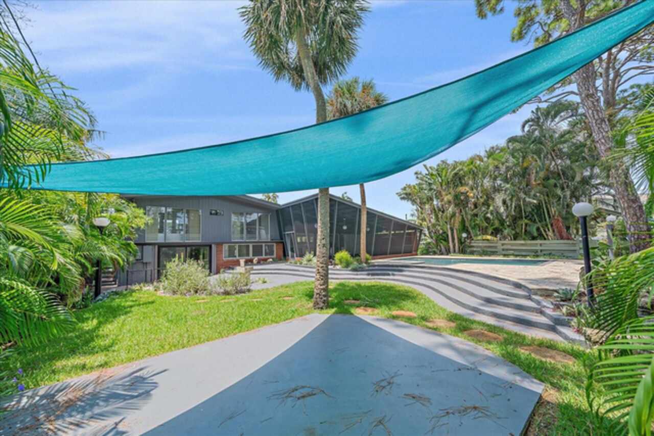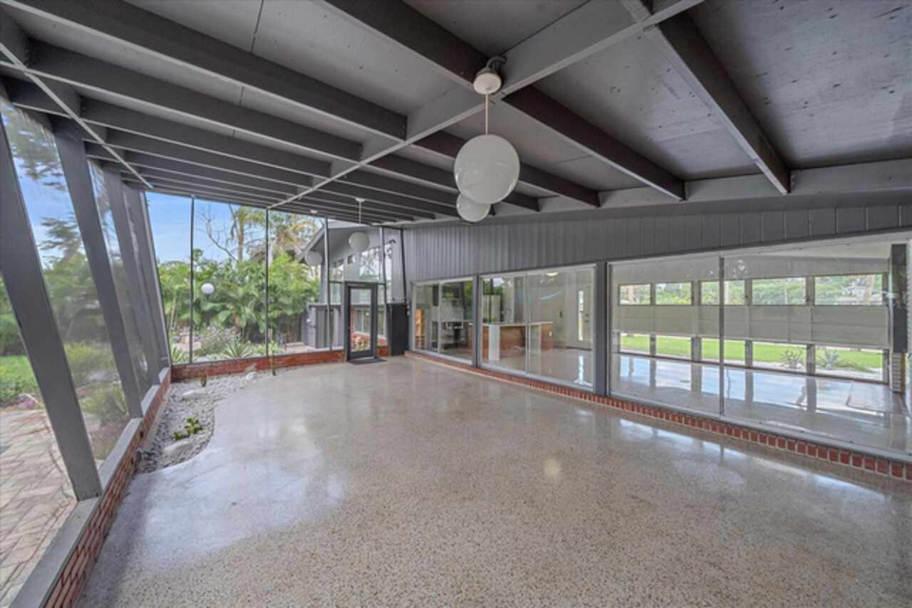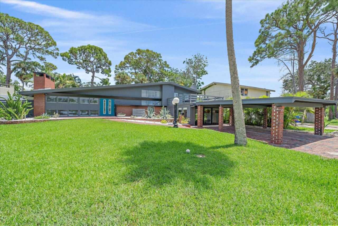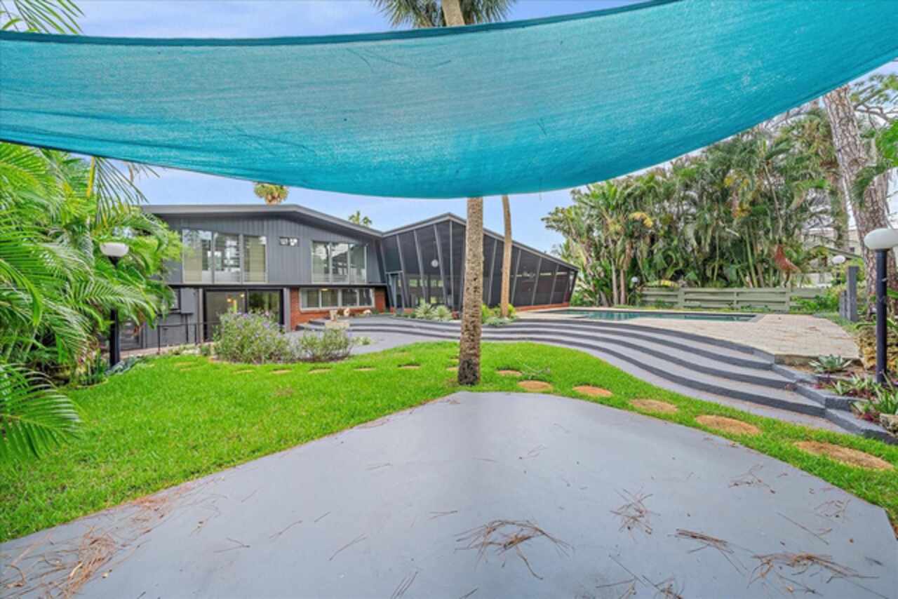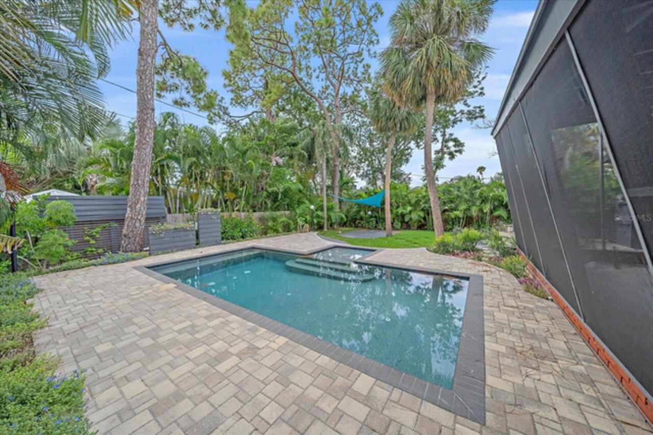 Under contract-accepting backup offers. **Priced below recently appraised value** Designed by the famed architect, Glen Q. Johnson, this Mid-Century Modern Bird Cage Home is one of only 13 unique homes built in the area. Known for his work in designing the St Pete Beach Library, the North Shore Aquatic Center, and the Pinellas County Judicial Building, Glen Q. Johnson, designed these “Vision-Aire” homes to provide comfort in the tropical Florida weather. Each home featured a unique floor plan and were oriented to the Southeast in order to best catch the breezes from nearby waterways. The Birdcage nickname comes from the floor-to-roofline screened terraces providing the ultimate amount of comfort and style while enjoying the Florida weather. The home itself has been tastefully updated while taking careful consideration to preserve the original design and “feel” of the home. This particular home features 3 bedrooms, 2 bathrooms and 1869 square feet of heated/cooled living space. The main living area features beautifully restored terrazzo floors, a wood burning fireplace, and a completely redone modern kitchen all overlooking the massive outdoor patio space, outdoor kitchen, and beautiful saltwater pool. The primary is located on the second floor and has access out to the refinished private deck. The downstairs suite features a kitchenette, own private entrance, and independent mini-split air conditioning units making it the perfect guest suite, in-law suite, or vacation rental. An additional bonus room provides even more flexibility for those looking for an office space or workout room. Outside the home you are greeted by a gorgeous private oasis featuring mature landscaping, a saltwater pool with pavers, a free standing fountain and multiple covered seating areas. Providing further peace of mind is the new roof in 2023, new HVAC in 2024, and new water heater in 2024. Located in close proximity to downtown Saint Petersburg, world renowned Florida beaches, local boat ramps, parks, and much more, this unique home is surely a dream come true.