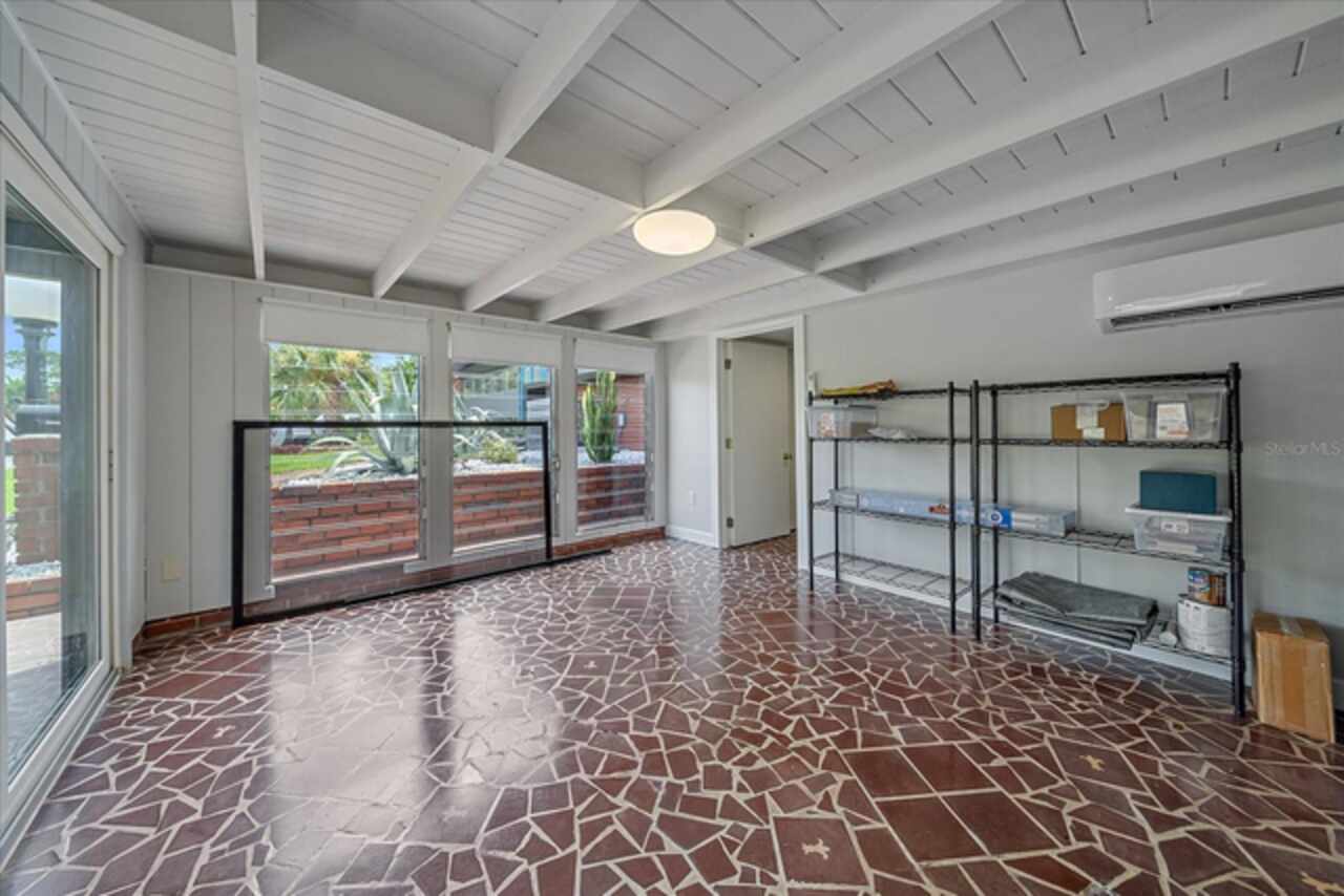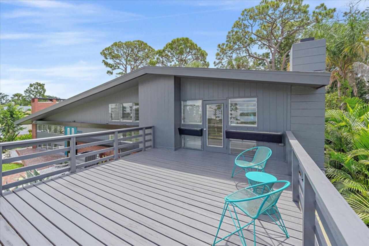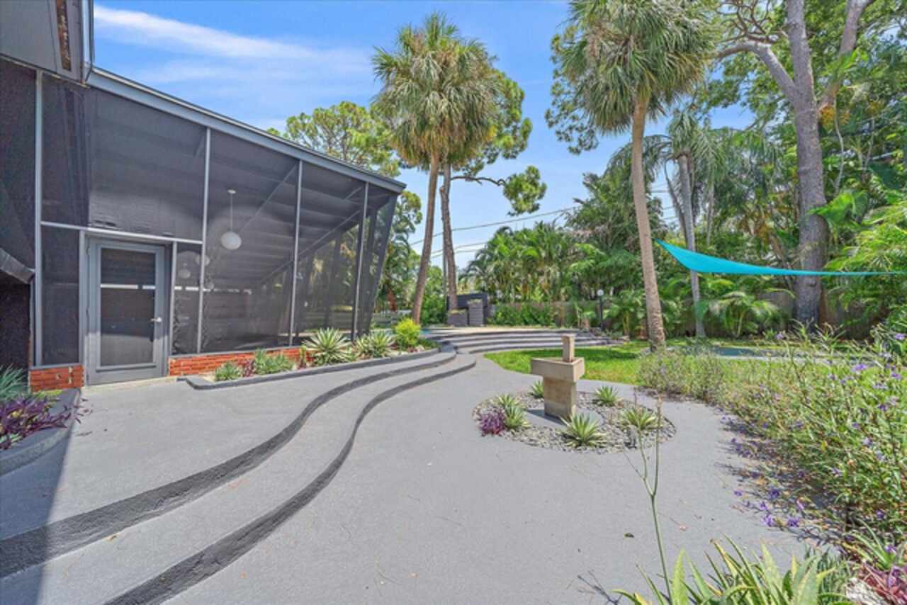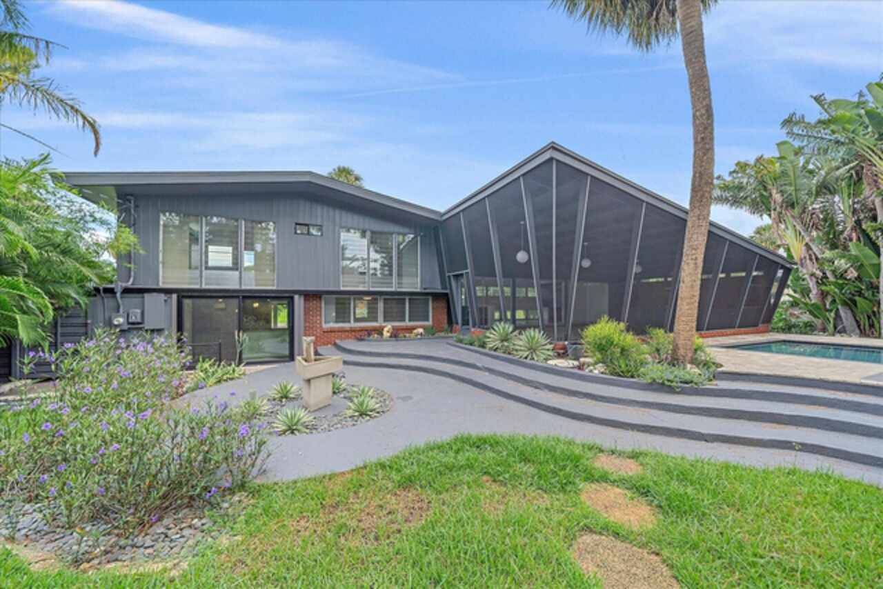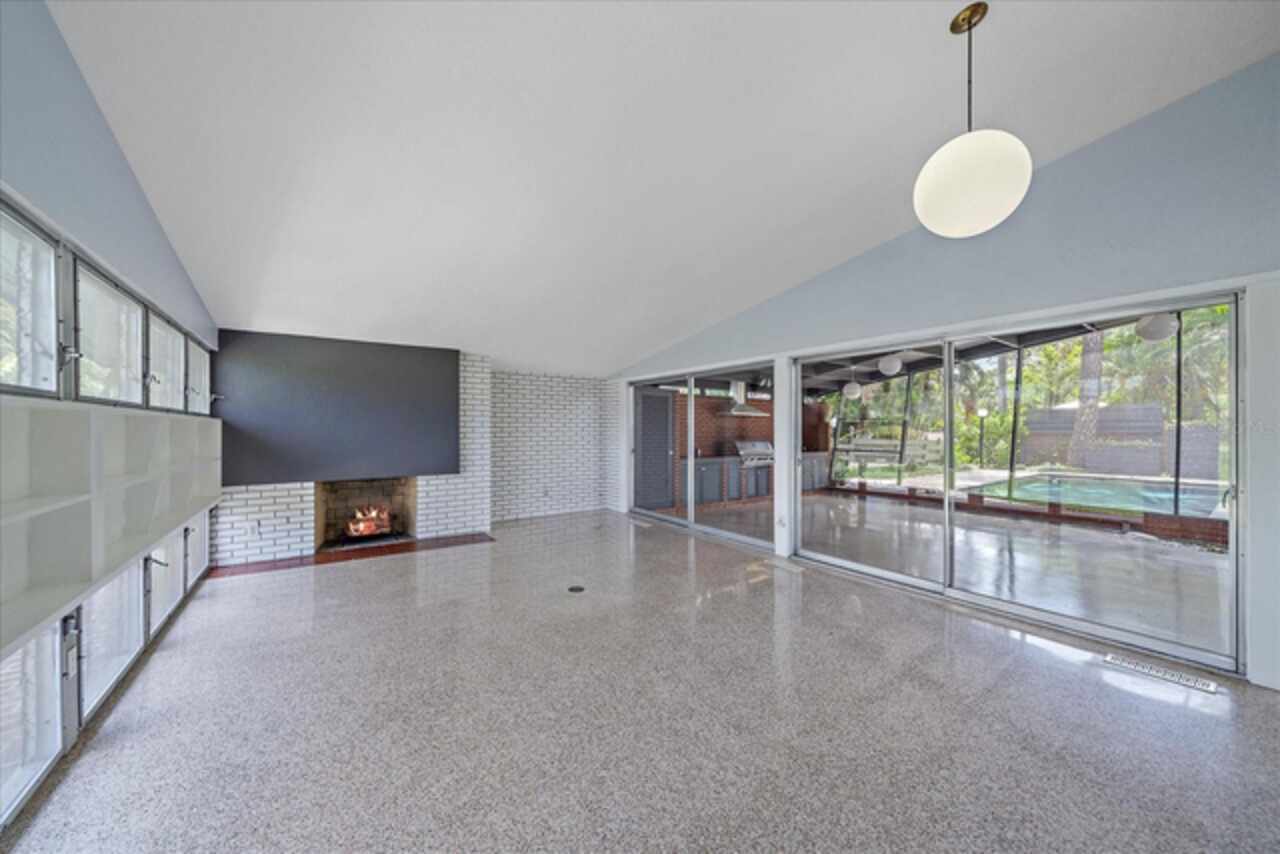 Under contract-accepting backup offers. **Priced below recently appraised value** Designed by the famed architect, Glen Q. Johnson, this Mid-Century Modern Bird Cage Home is one of only 13 unique homes built in the area. Known for his work in designing the St Pete Beach Library, the North Shore Aquatic Center, and the Pinellas County Judicial Building, Glen Q. Johnson, designed these “Vision-Aire” homes to provide comfort in the tropical Florida weather. Each home featured a unique floor plan and were oriented to the Southeast in order to best catch the breezes from nearby waterways. The Birdcage nickname comes from the floor-to-roofline screened terraces providing the ultimate amount of comfort and style while enjoying the Florida weather. The home itself has been tastefully updated while taking careful consideration to preserve the original design and “feel” of the home. This particular home features 3 bedrooms, 2 bathrooms and 1869 square feet of heated/cooled living space. The main living area features beautifully restored terrazzo floors, a wood burning fireplace, and a completely redone modern kitchen all overlooking the massive outdoor patio space, outdoor kitchen, and beautiful saltwater pool. The primary is located on the second floor and has access out to the refinished private deck. The downstairs suite features a kitchenette, own private entrance, and independent mini-split air conditioning units making it the perfect guest suite, in-law suite, or vacation rental. An additional bonus room provides even more flexibility for those looking for an office space or workout room. Outside the home you are greeted by a gorgeous private oasis featuring mature landscaping, a saltwater pool with pavers, a free standing fountain and multiple covered seating areas. Providing further peace of mind is the new roof in 2023, new HVAC in 2024, and new water heater in 2024. Located in close proximity to downtown Saint Petersburg, world renowned Florida beaches, local boat ramps, parks, and much more, this unique home is surely a dream come true.