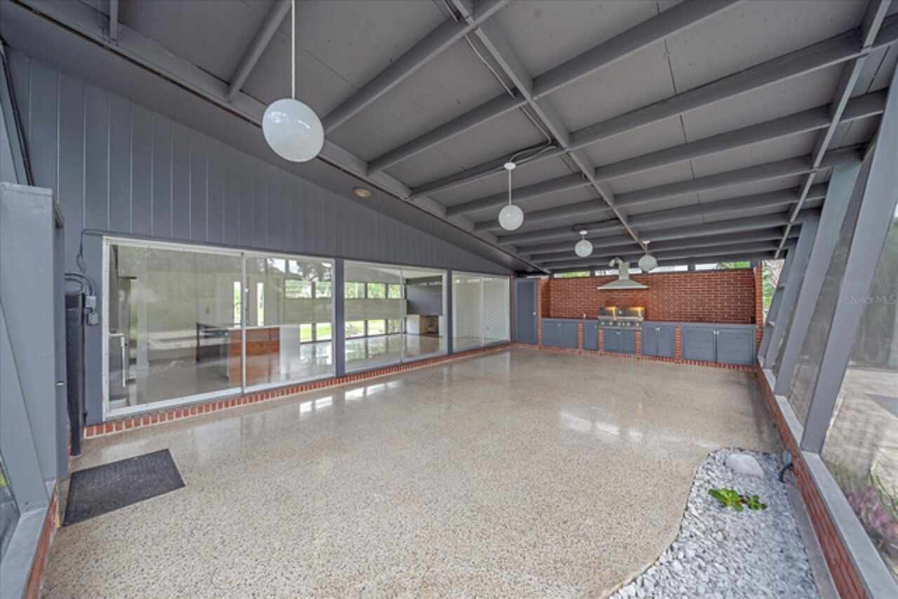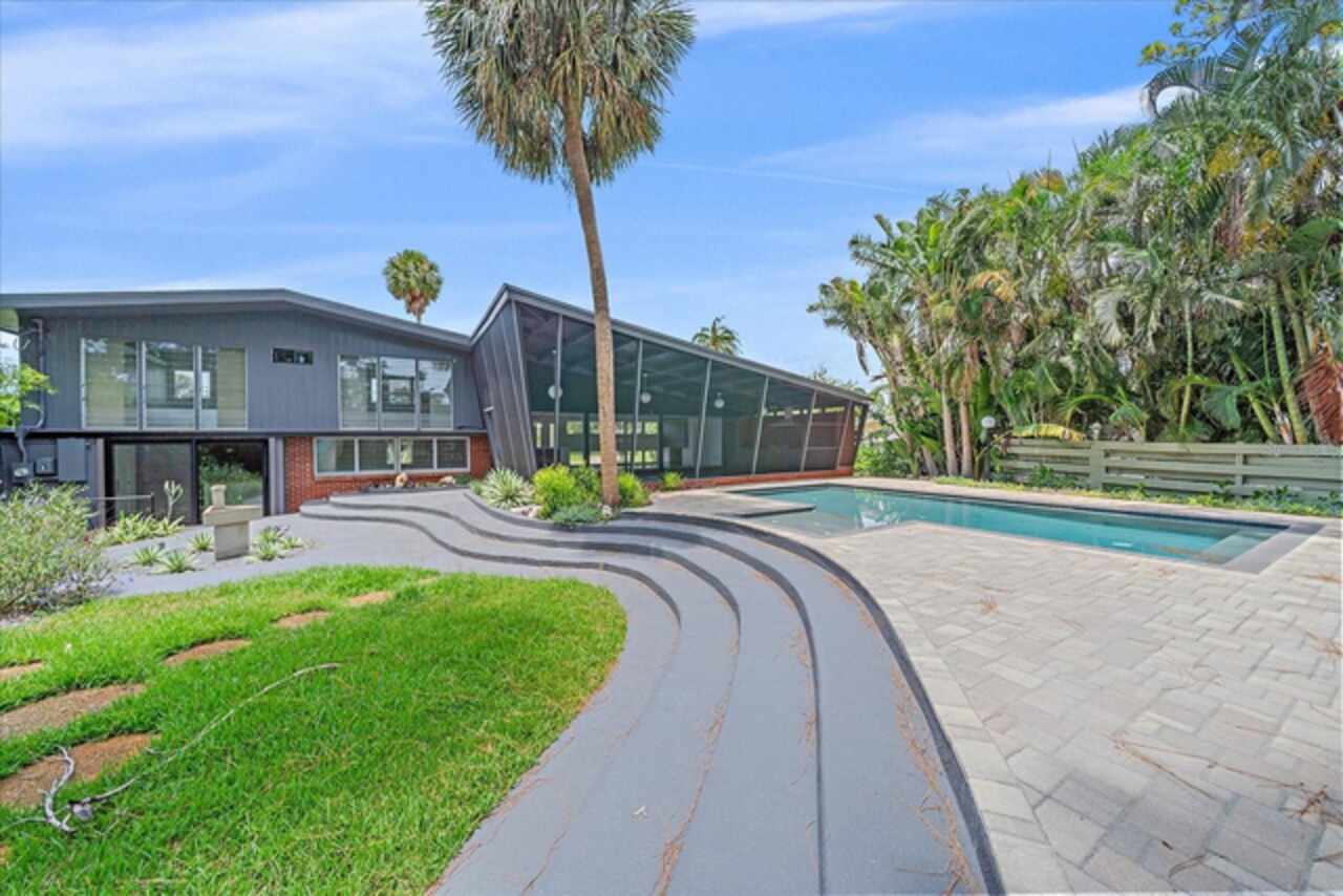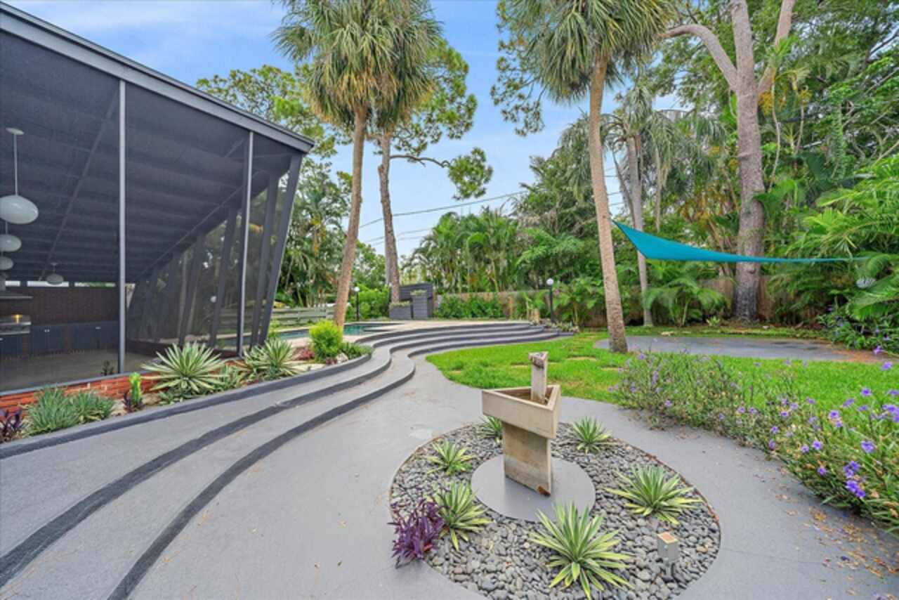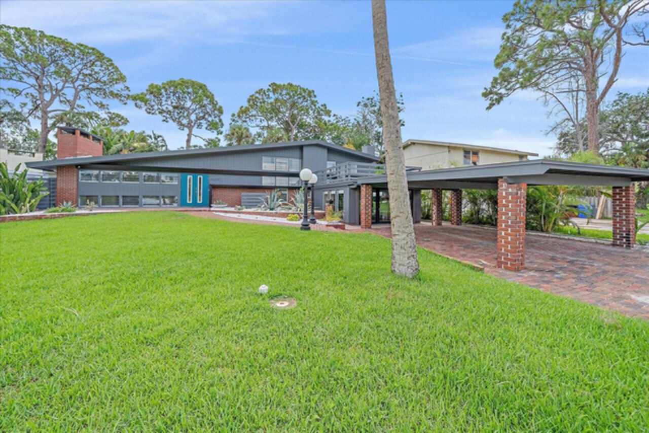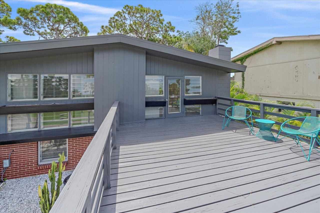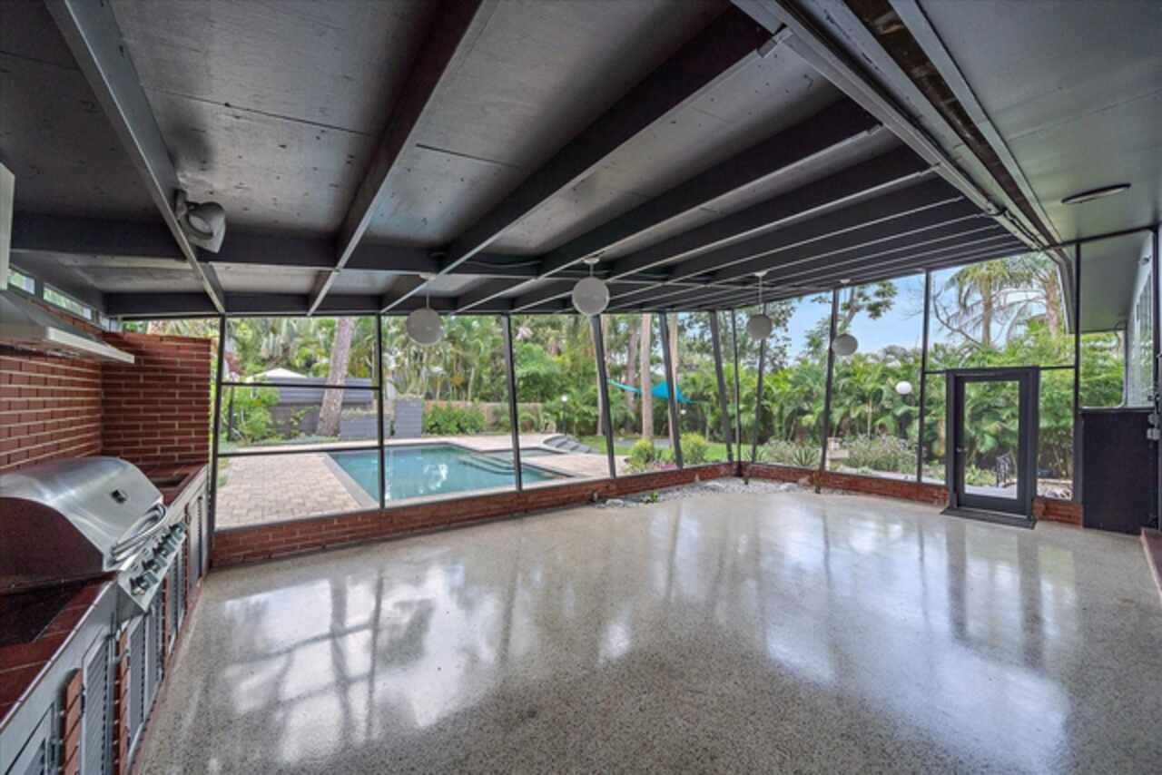 Under contract-accepting backup offers. **Priced below recently appraised value** Designed by the famed architect, Glen Q. Johnson, this Mid-Century Modern Bird Cage Home is one of only 13 unique homes built in the area. Known for his work in designing the St Pete Beach Library, the North Shore Aquatic Center, and the Pinellas County Judicial Building, Glen Q. Johnson, designed these “Vision-Aire” homes to provide comfort in the tropical Florida weather. Each home featured a unique floor plan and were oriented to the Southeast in order to best catch the breezes from nearby waterways. The Birdcage nickname comes from the floor-to-roofline screened terraces providing the ultimate amount of comfort and style while enjoying the Florida weather. The home itself has been tastefully updated while taking careful consideration to preserve the original design and “feel” of the home. This particular home features 3 bedrooms, 2 bathrooms and 1869 square feet of heated/cooled living space. The main living area features beautifully restored terrazzo floors, a wood burning fireplace, and a completely redone modern kitchen all overlooking the massive outdoor patio space, outdoor kitchen, and beautiful saltwater pool. The primary is located on the second floor and has access out to the refinished private deck. The downstairs suite features a kitchenette, own private entrance, and independent mini-split air conditioning units making it the perfect guest suite, in-law suite, or vacation rental. An additional bonus room provides even more flexibility for those looking for an office space or workout room. Outside the home you are greeted by a gorgeous private oasis featuring mature landscaping, a saltwater pool with pavers, a free standing fountain and multiple covered seating areas. Providing further peace of mind is the new roof in 2023, new HVAC in 2024, and new water heater in 2024. Located in close proximity to downtown Saint Petersburg, world renowned Florida beaches, local boat ramps, parks, and much more, this unique home is surely a dream come true.