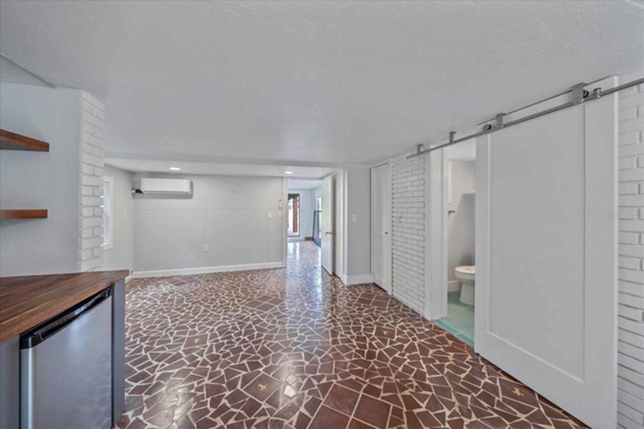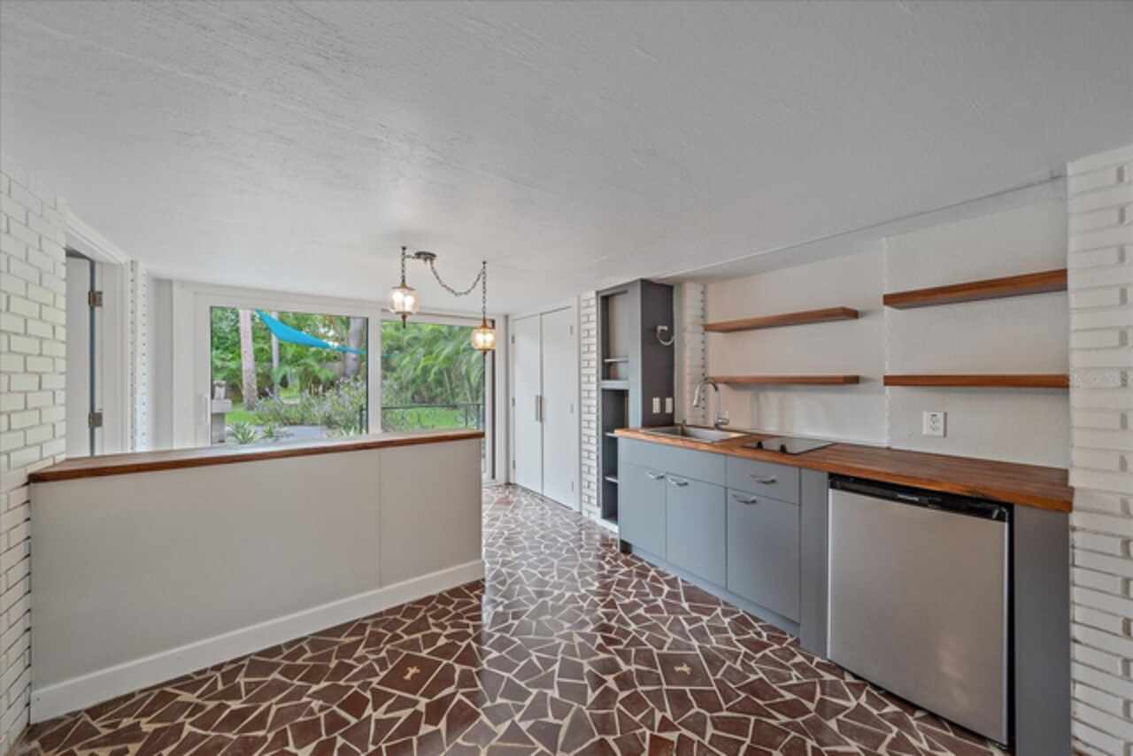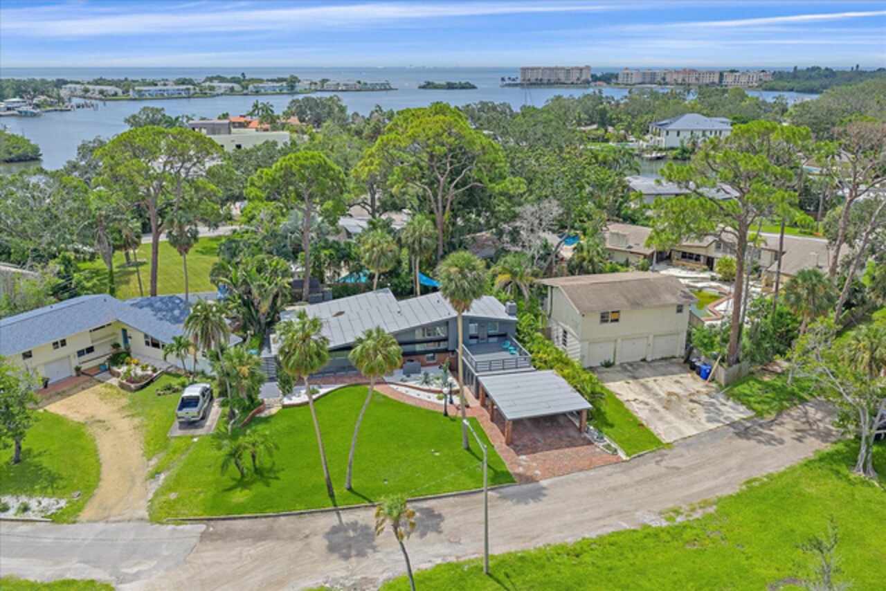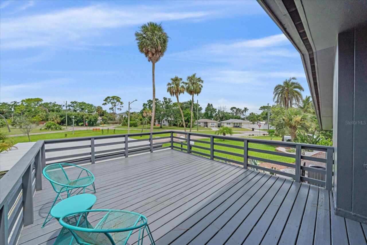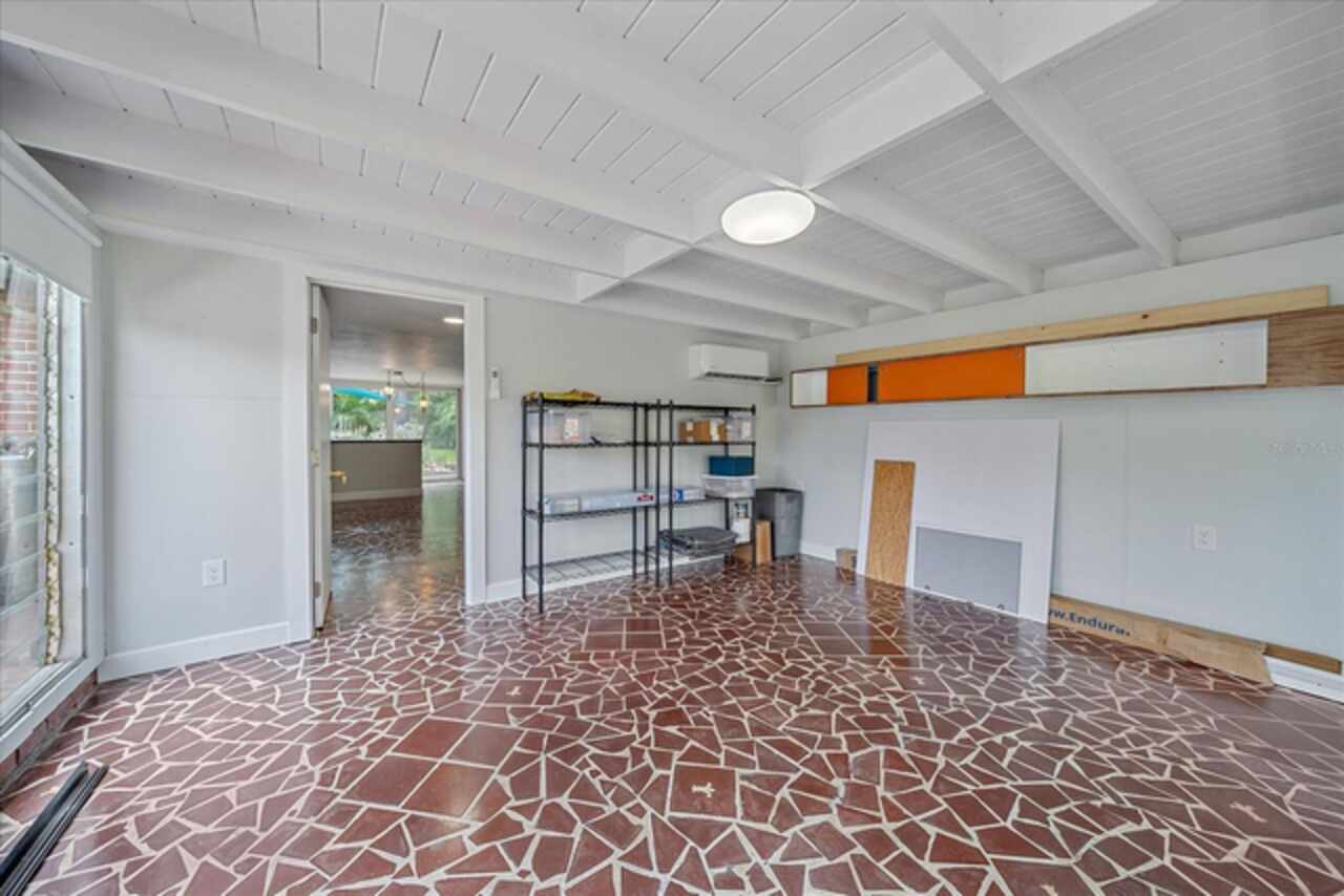 Under contract-accepting backup offers. **Priced below recently appraised value** Designed by the famed architect, Glen Q. Johnson, this Mid-Century Modern Bird Cage Home is one of only 13 unique homes built in the area. Known for his work in designing the St Pete Beach Library, the North Shore Aquatic Center, and the Pinellas County Judicial Building, Glen Q. Johnson, designed these “Vision-Aire” homes to provide comfort in the tropical Florida weather. Each home featured a unique floor plan and were oriented to the Southeast in order to best catch the breezes from nearby waterways. The Birdcage nickname comes from the floor-to-roofline screened terraces providing the ultimate amount of comfort and style while enjoying the Florida weather. The home itself has been tastefully updated while taking careful consideration to preserve the original design and “feel” of the home. This particular home features 3 bedrooms, 2 bathrooms and 1869 square feet of heated/cooled living space. The main living area features beautifully restored terrazzo floors, a wood burning fireplace, and a completely redone modern kitchen all overlooking the massive outdoor patio space, outdoor kitchen, and beautiful saltwater pool. The primary is located on the second floor and has access out to the refinished private deck. The downstairs suite features a kitchenette, own private entrance, and independent mini-split air conditioning units making it the perfect guest suite, in-law suite, or vacation rental. An additional bonus room provides even more flexibility for those looking for an office space or workout room. Outside the home you are greeted by a gorgeous private oasis featuring mature landscaping, a saltwater pool with pavers, a free standing fountain and multiple covered seating areas. Providing further peace of mind is the new roof in 2023, new HVAC in 2024, and new water heater in 2024. Located in close proximity to downtown Saint Petersburg, world renowned Florida beaches, local boat ramps, parks, and much more, this unique home is surely a dream come true.