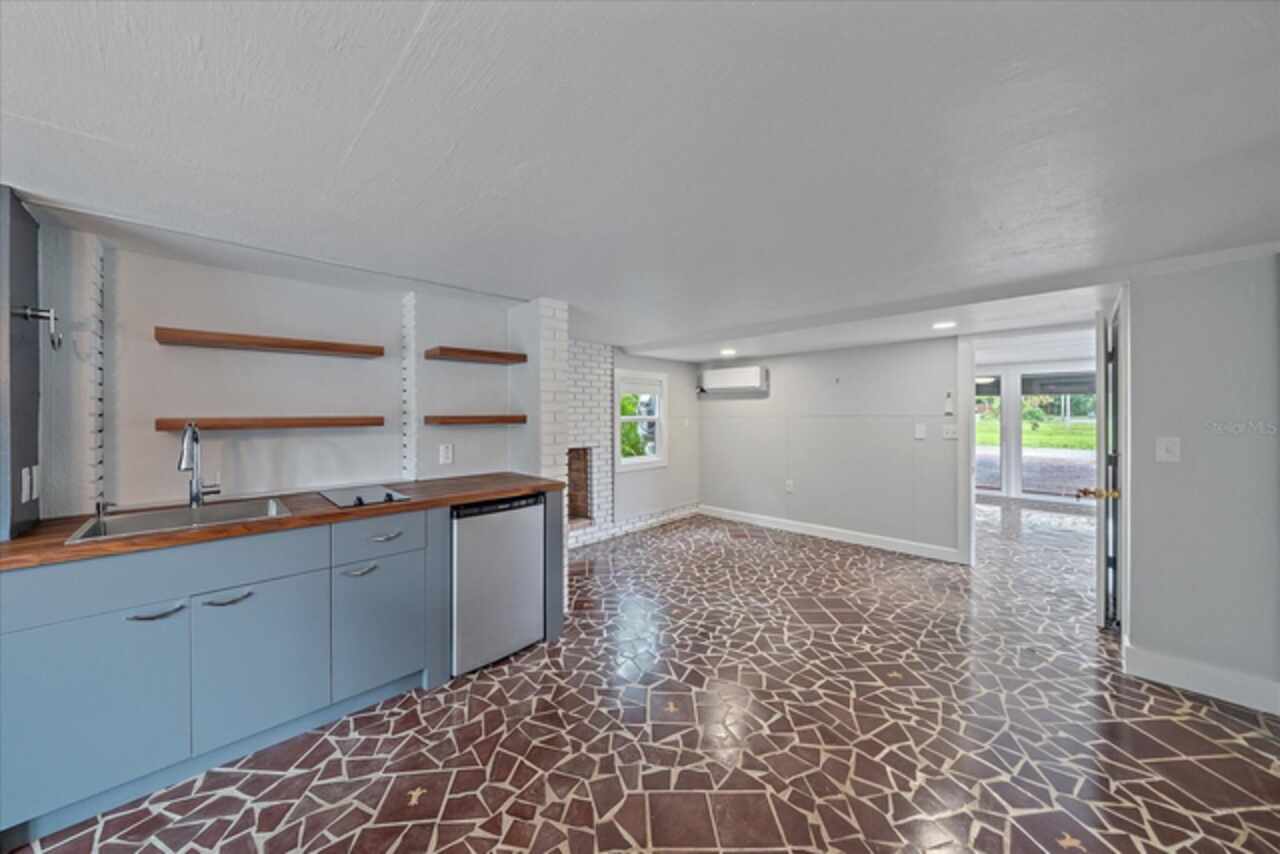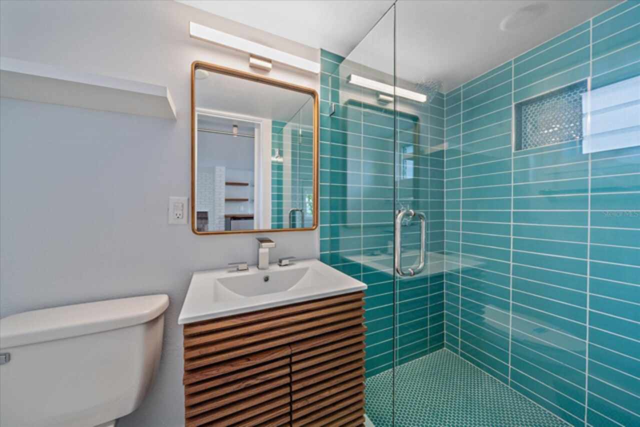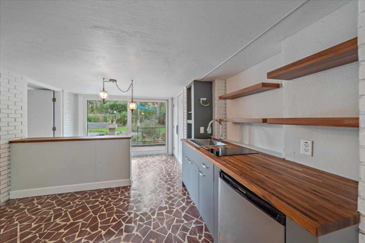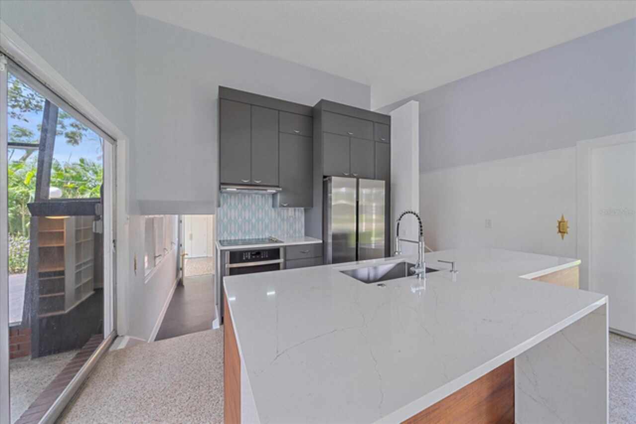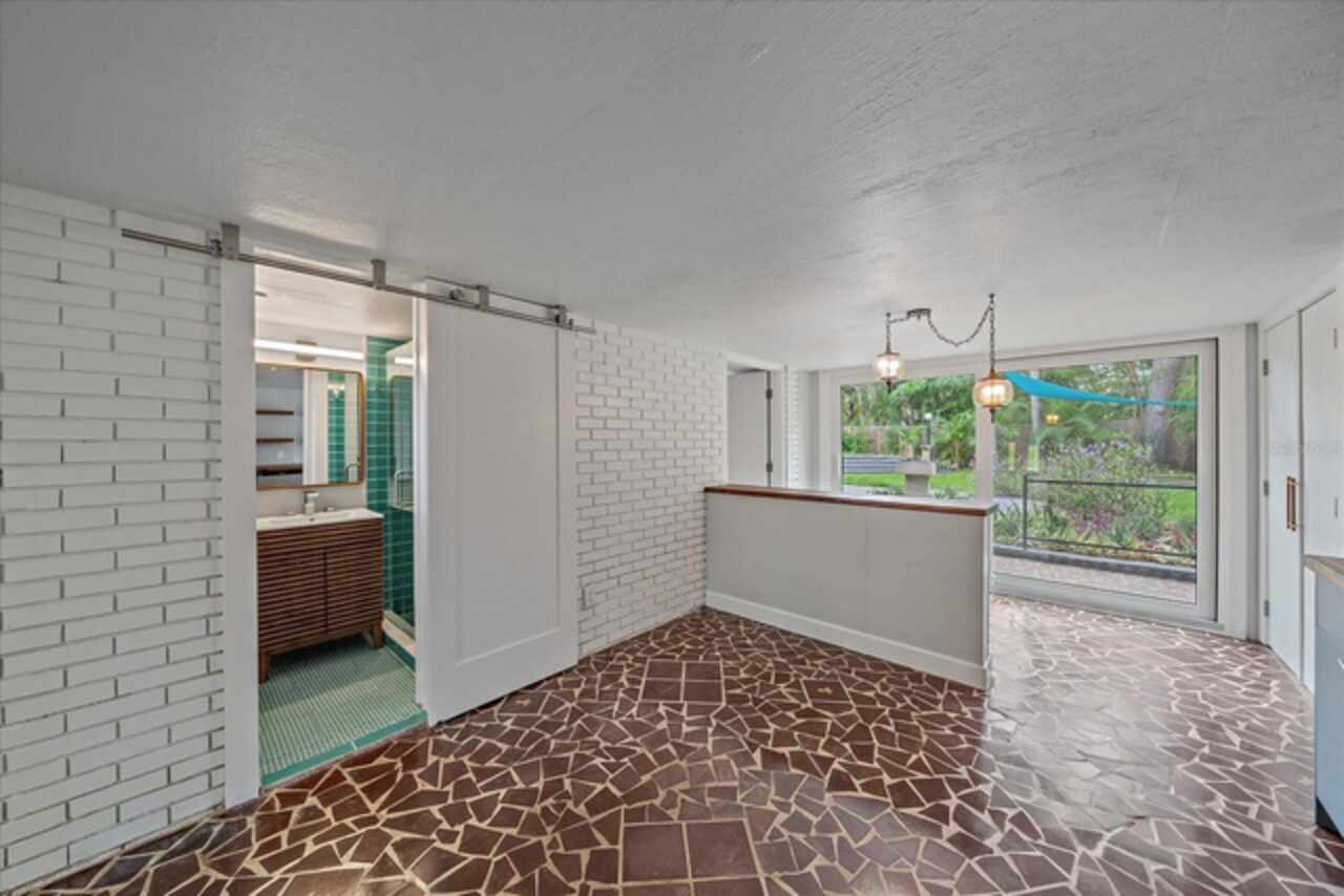 Under contract-accepting backup offers. **Priced below recently appraised value** Designed by the famed architect, Glen Q. Johnson, this Mid-Century Modern Bird Cage Home is one of only 13 unique homes built in the area. Known for his work in designing the St Pete Beach Library, the North Shore Aquatic Center, and the Pinellas County Judicial Building, Glen Q. Johnson, designed these “Vision-Aire” homes to provide comfort in the tropical Florida weather. Each home featured a unique floor plan and were oriented to the Southeast in order to best catch the breezes from nearby waterways. The Birdcage nickname comes from the floor-to-roofline screened terraces providing the ultimate amount of comfort and style while enjoying the Florida weather. The home itself has been tastefully updated while taking careful consideration to preserve the original design and “feel” of the home. This particular home features 3 bedrooms, 2 bathrooms and 1869 square feet of heated/cooled living space. The main living area features beautifully restored terrazzo floors, a wood burning fireplace, and a completely redone modern kitchen all overlooking the massive outdoor patio space, outdoor kitchen, and beautiful saltwater pool. The primary is located on the second floor and has access out to the refinished private deck. The downstairs suite features a kitchenette, own private entrance, and independent mini-split air conditioning units making it the perfect guest suite, in-law suite, or vacation rental. An additional bonus room provides even more flexibility for those looking for an office space or workout room. Outside the home you are greeted by a gorgeous private oasis featuring mature landscaping, a saltwater pool with pavers, a free standing fountain and multiple covered seating areas. Providing further peace of mind is the new roof in 2023, new HVAC in 2024, and new water heater in 2024. Located in close proximity to downtown Saint Petersburg, world renowned Florida beaches, local boat ramps, parks, and much more, this unique home is surely a dream come true.