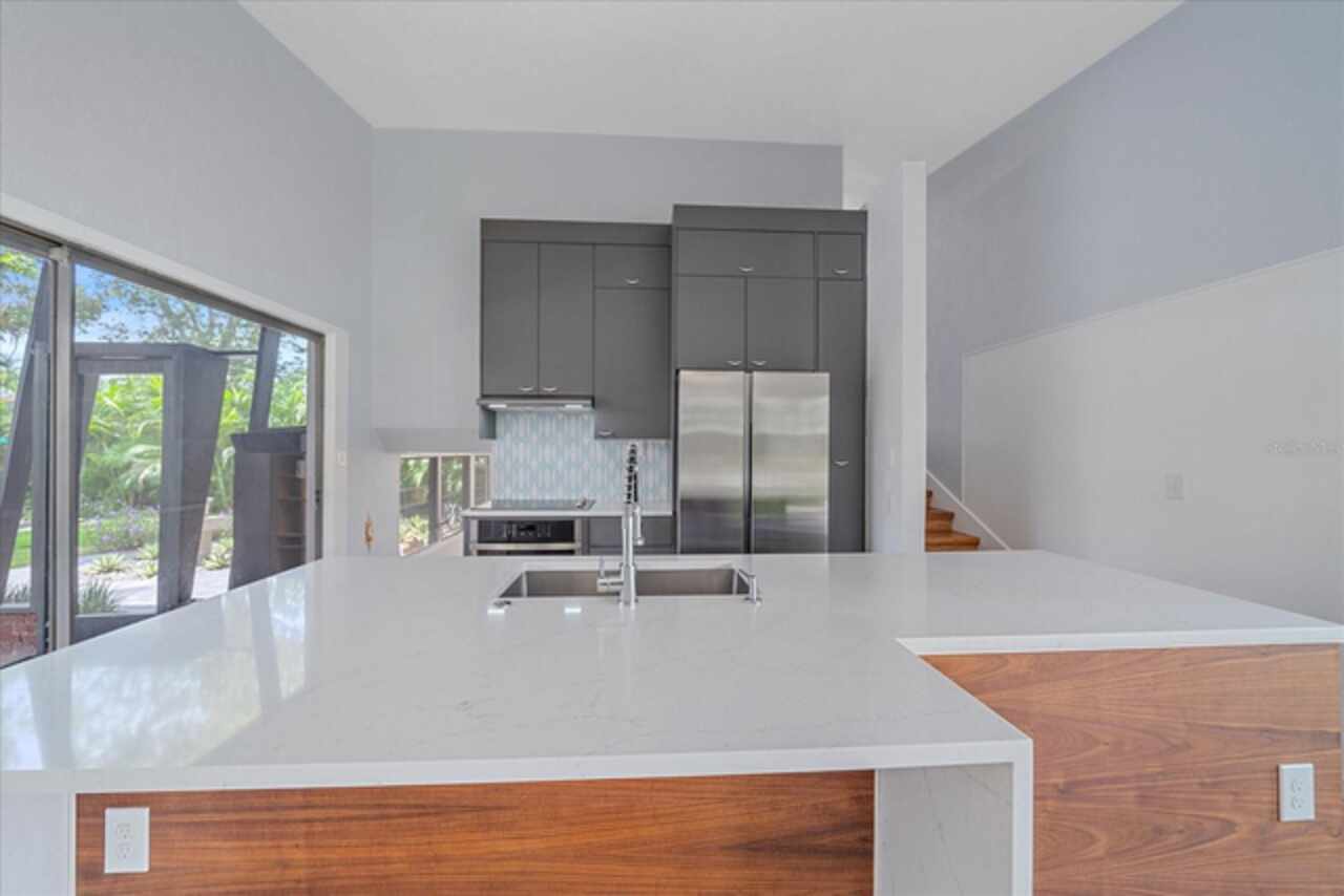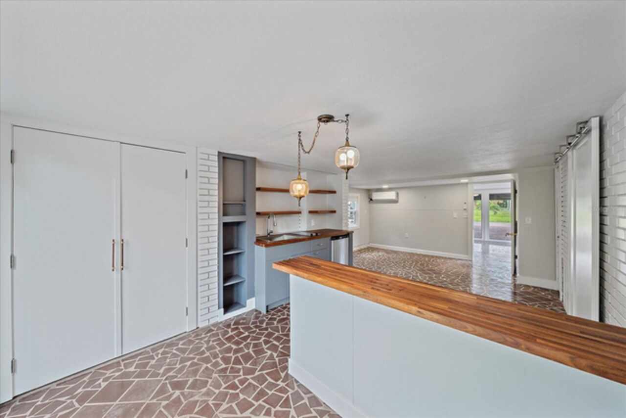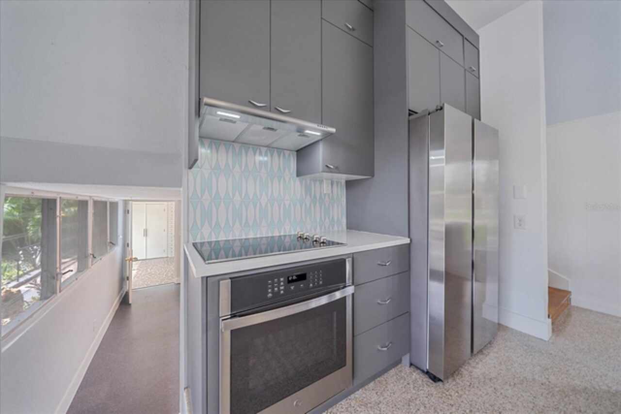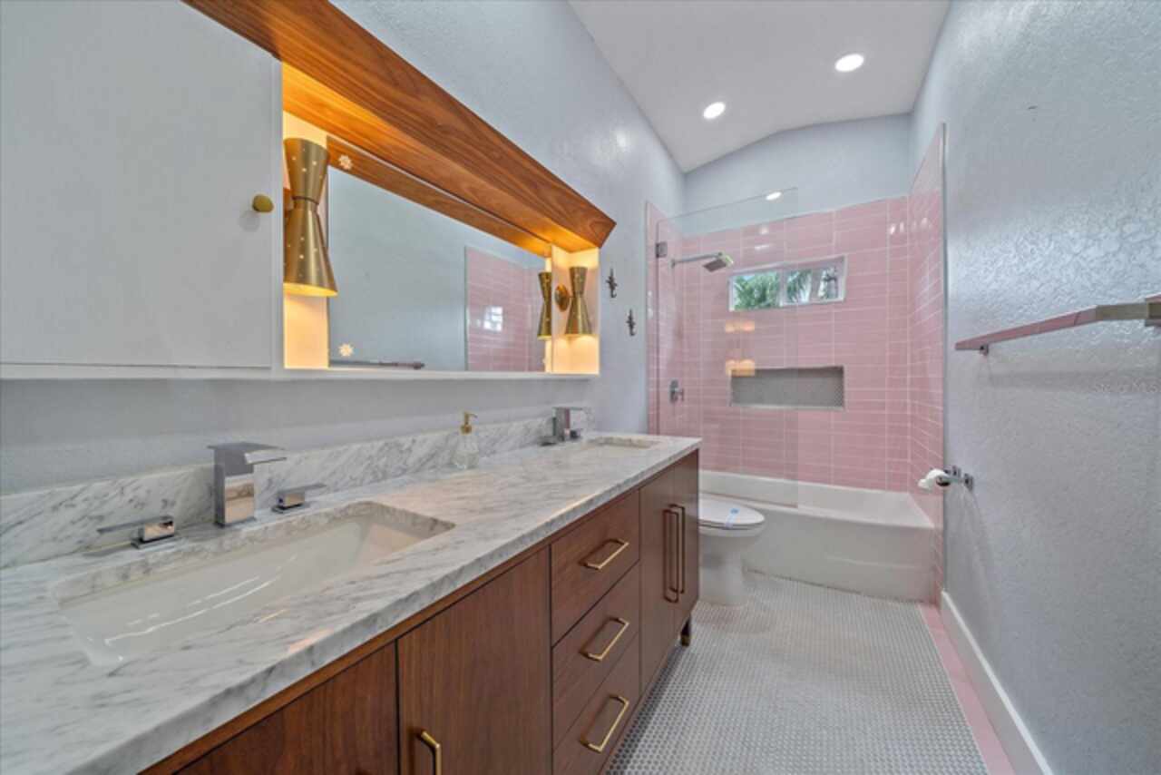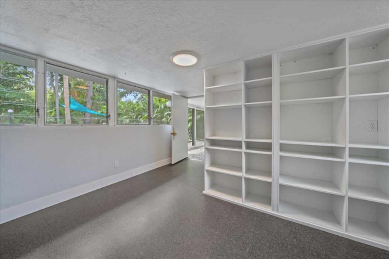 Under contract-accepting backup offers. **Priced below recently appraised value** Designed by the famed architect, Glen Q. Johnson, this Mid-Century Modern Bird Cage Home is one of only 13 unique homes built in the area. Known for his work in designing the St Pete Beach Library, the North Shore Aquatic Center, and the Pinellas County Judicial Building, Glen Q. Johnson, designed these “Vision-Aire” homes to provide comfort in the tropical Florida weather. Each home featured a unique floor plan and were oriented to the Southeast in order to best catch the breezes from nearby waterways. The Birdcage nickname comes from the floor-to-roofline screened terraces providing the ultimate amount of comfort and style while enjoying the Florida weather. The home itself has been tastefully updated while taking careful consideration to preserve the original design and “feel” of the home. This particular home features 3 bedrooms, 2 bathrooms and 1869 square feet of heated/cooled living space. The main living area features beautifully restored terrazzo floors, a wood burning fireplace, and a completely redone modern kitchen all overlooking the massive outdoor patio space, outdoor kitchen, and beautiful saltwater pool. The primary is located on the second floor and has access out to the refinished private deck. The downstairs suite features a kitchenette, own private entrance, and independent mini-split air conditioning units making it the perfect guest suite, in-law suite, or vacation rental. An additional bonus room provides even more flexibility for those looking for an office space or workout room. Outside the home you are greeted by a gorgeous private oasis featuring mature landscaping, a saltwater pool with pavers, a free standing fountain and multiple covered seating areas. Providing further peace of mind is the new roof in 2023, new HVAC in 2024, and new water heater in 2024. Located in close proximity to downtown Saint Petersburg, world renowned Florida beaches, local boat ramps, parks, and much more, this unique home is surely a dream come true.