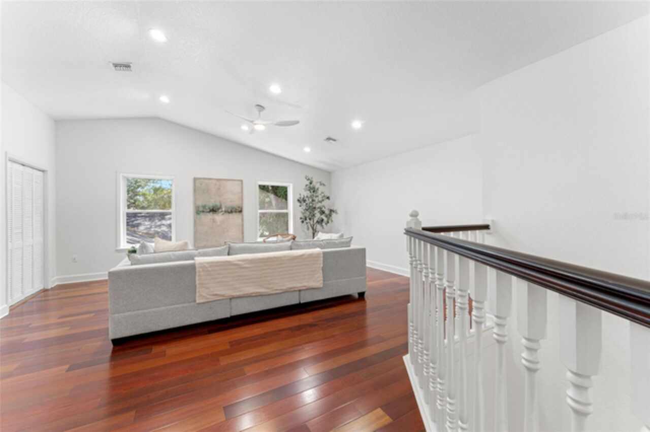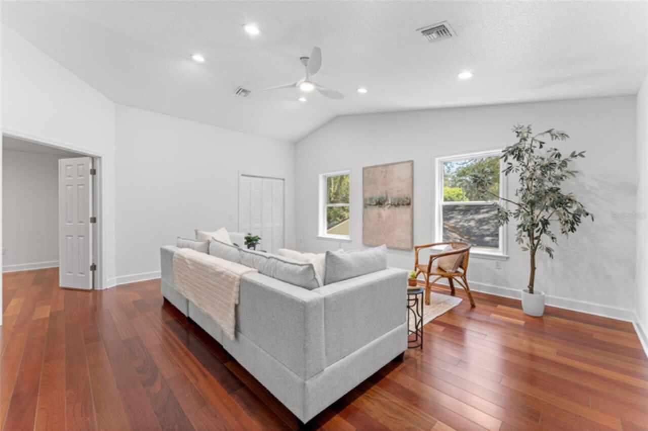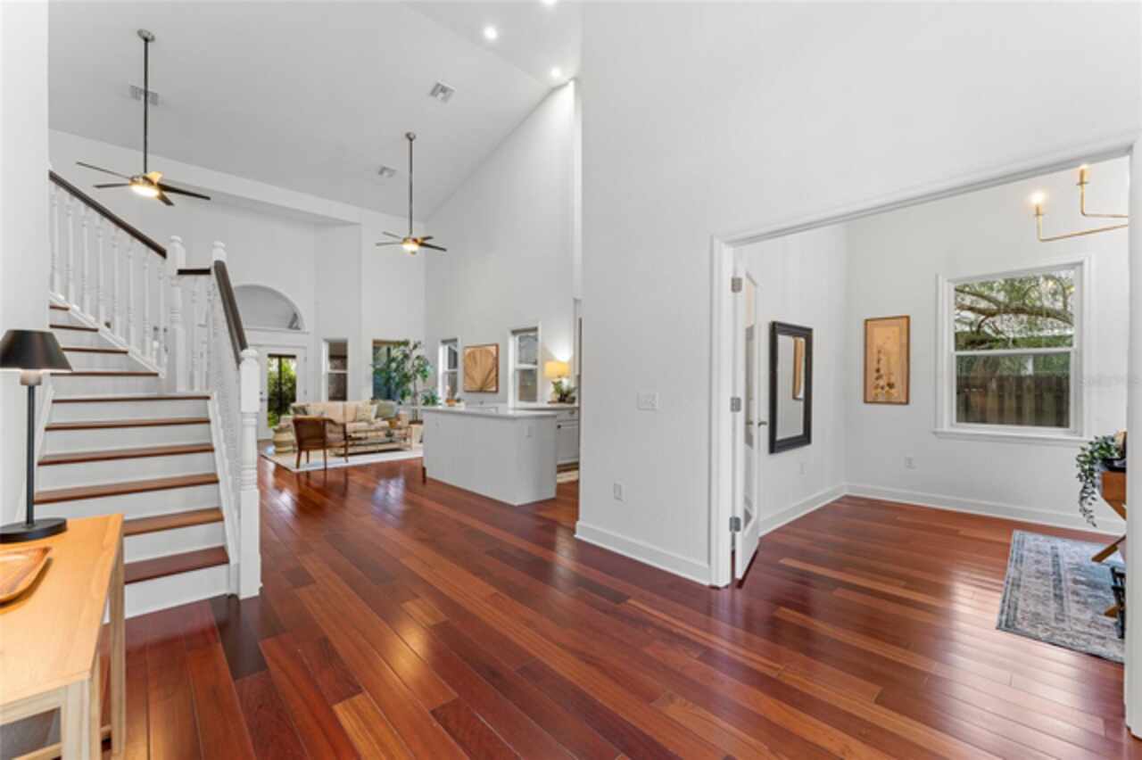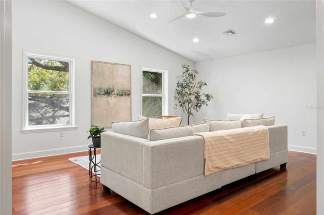 Nestled in the heart of highly sought-after Bayshore Beautiful neighborhood, this expansive South Tampa residence spans over 3, 200 sq ft on a generous 70x120 lot, offering both privacy and presence in a premier location. Open the elegant double glass doors to be greeted by soaring cathedral ceilings, rich hardwood flooring and an abundance of natural light. The open layout offers multiple living and dining areas, perfect for both entertaining and everyday comfort. Thoughtfully updated throughout, this residence blends timeless charm and fresh designer finishes. The updated kitchen is open to all of the living spaces, has quartz countertops and backsplash, real wood cabinetry, ss appliances and bronze hardware. All bedrooms are located on the first floor with split floor plan. Primary bedroom has french doors giving you access to screened in back porch, double walk in closets, ensuite bathroom with private water closet, linen closet, massive shower and double vanity. Secondary bedroom has updated ensuite bathroom and ample closet space. Bedroom 3 & 4 are spacious and in close proximity to the updated 3rd bathroom. Upstairs offers an additional loft with private insulated room that can be used as home theatre, 2nd home office, workout room, playroom, library, (easy convert to 5th bedroom), etc. Your imagination is the limit! Outside, enjoy a vaulted screened in porch, over looking plenty of backyard space with room for a pool. The exterior construction of the home is cement based Hardie board siding to resist moisture and pests. Originally built in 1943, home was completely rebuilt in 2001, and beautifully updated 2020-2025. This special home is only a few blocks from Bayshore Boulevard, offering easy access to scenic waterfront paths, parks, award winning restaurants and boutique shopping. Call to schedule your private tour of this truly special property.