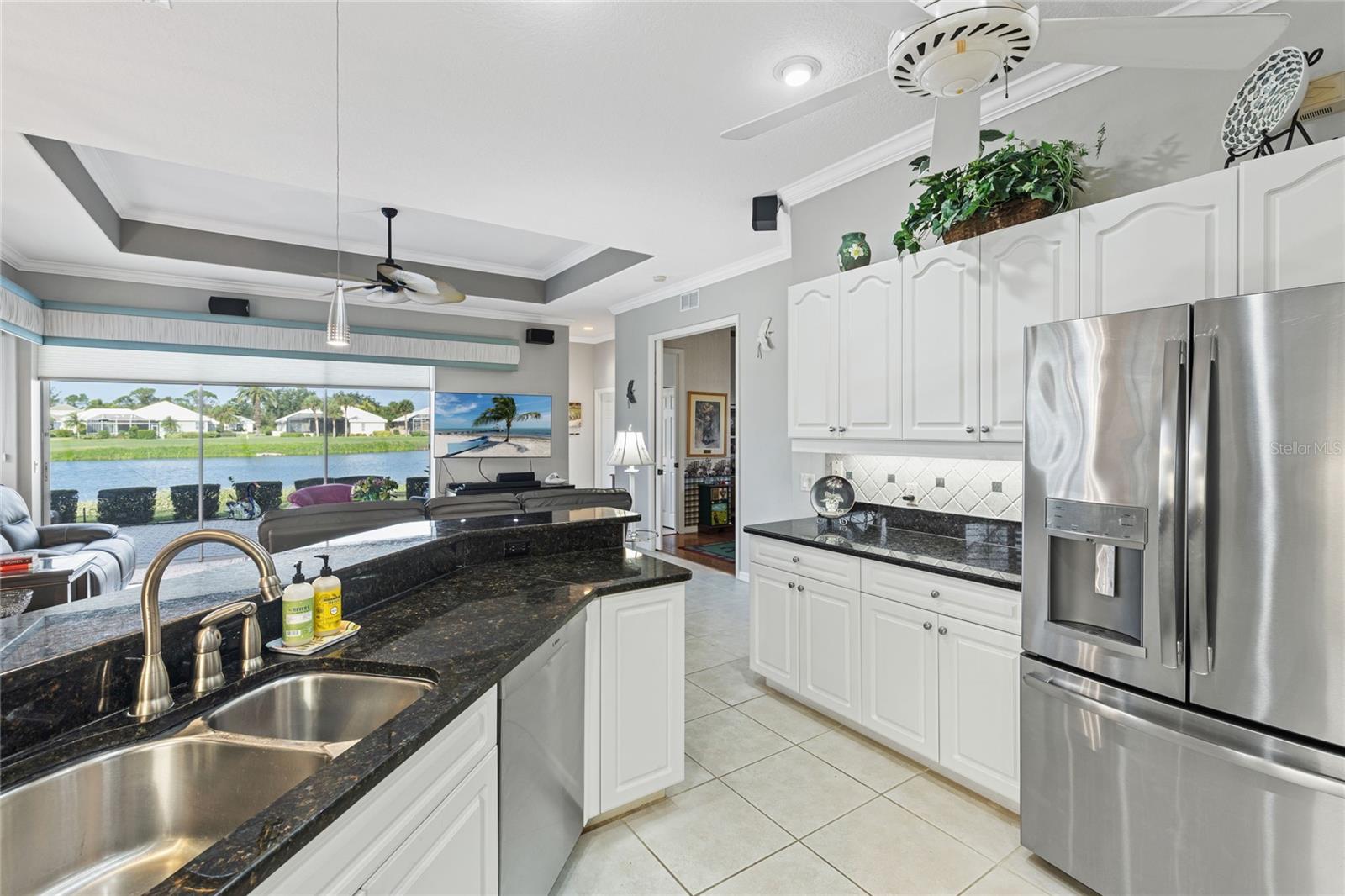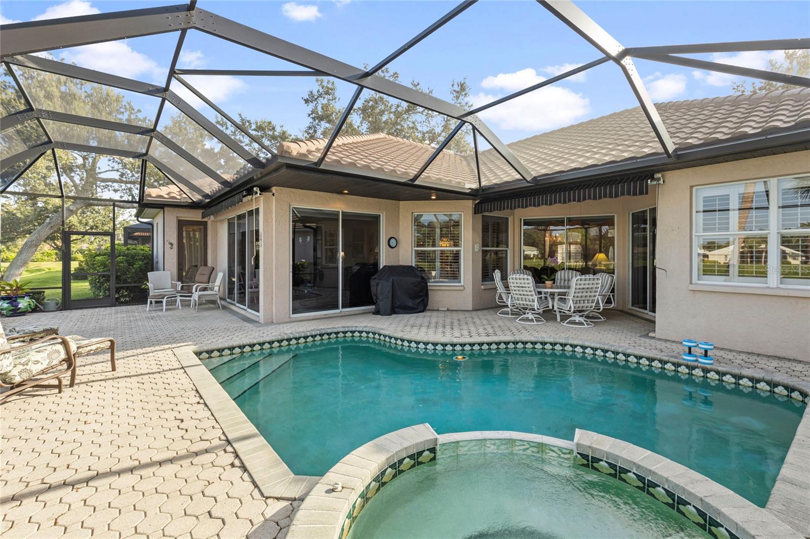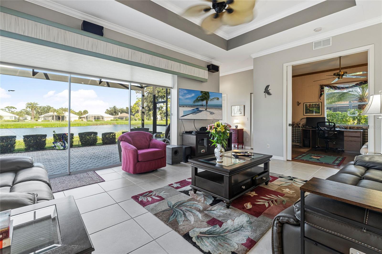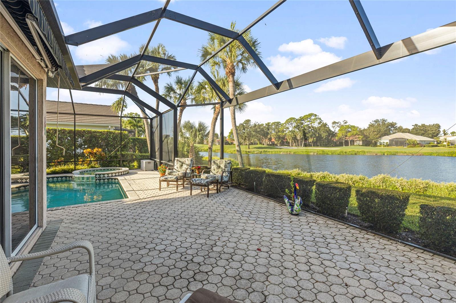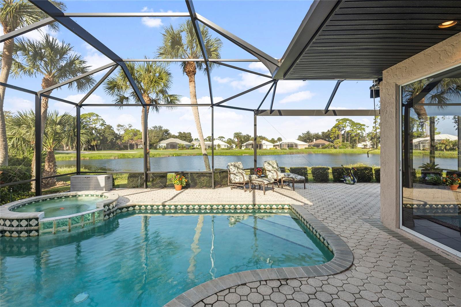 Under contract-accepting backup offers. Beautiful 3 Bedroom, 3 Bath Home with DEN and Stunning Golf Course & Pond Views! Enjoy elegant living in this spacious home overlooking the 12th fairway in member-owned Venice Golf & Country Club where a Golf Membership is IMMEDIATELY available to the new owner. Step inside into foyer and the sunny living room which faces west and has an amazing sunset view! The separate dining room and family room both have tray ceiling ceilings. There is crown molding throughout the foyer, living room, dining room, family room, DEN, kitchen, and hallway. The den features hardwood flooring, while ceramic tile flows through the main living areas for easy maintenance. The kitchen with breakfast bar, granite countertops, and pantry is just the right size and has separate breakfast area. This home was thoughtful designed with a split floor plan which provides privacy when entertaining overnight guests. The primary suite boasts a fabulous view, a large en-suite bath with dual vanities, and has sliding glass doors to the lanai. There are two guest bedrooms with a separate bath. The third bathroom has easy access ro the lanai and is adjacent to the den. Step outside from the living room and family room to the large, covered lanai with a heated pool and spa. Its generous size has plenty of space for outdoor dining and lounging. For peace of mind the house was re-piped in 2011 and a new roof and pool cage with panoramic screen were installed in 2023. Venice Golf & Country Club is a community of only 587 homes and is known for its 18-hole championship course, 23 ponds, and 13 natural preserves. Members enjoy access to tennis, club pool, bocce courts, a clubhouse with both formal and casual dining, and a separate bar overlooking the 18th tee. On cooler evenings sit with friends around the fire pit. The Wellness Center features state-of-the-art equipment and offers a vaiety of fitness classes, spa services, personal trainers, and physical therapist on site. There is truly something for everyone in this friendly and welcoming community where you will meet and make new friends that last a lifetime. It is conveniently located a few miles from the quaint town of Venice, gulf beaches, the Atlanta Braves practice stadium, and just 20 miles south of Sarasota. Florida living at its best! MEMBERSHIP IS MANDATORY.