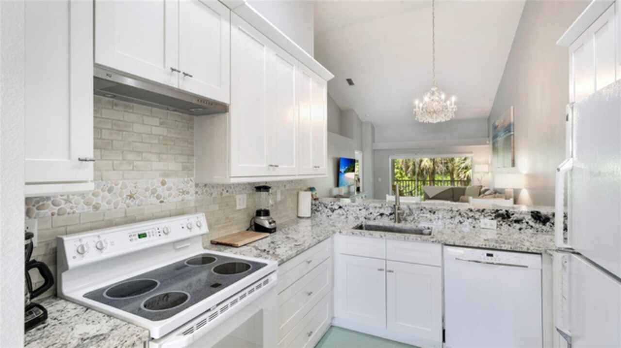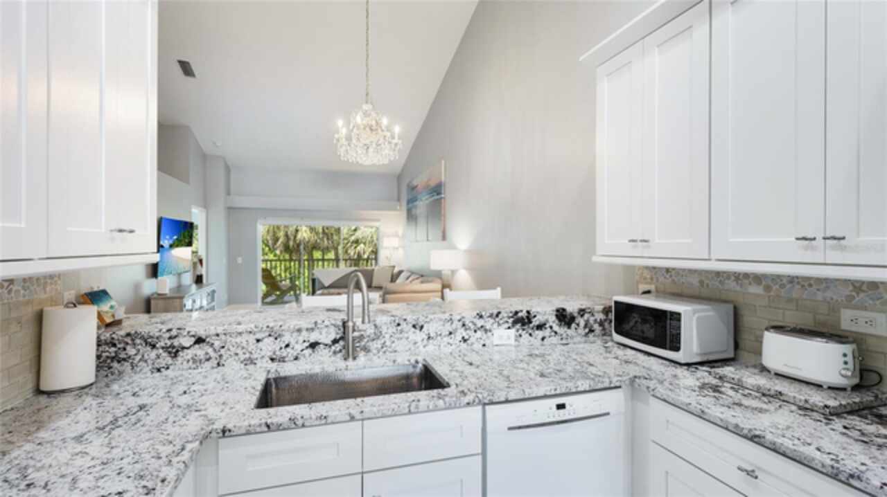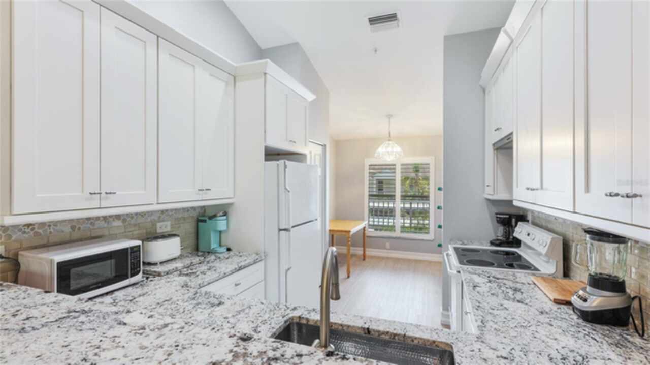 Completely Renovated and Turn Key! Just bring your suitcase and move right in! Enter this second floor unit to Luxury Vinyl Flooring throughout. Head into the open floorplan to find cathedral ceilings, plenty of natural light and an open space that feels larger than the square footage. The kitchen has been renovated with new tall cabinetry with crown molding, granite counters and a beautiful backsplash with a coastal vibe. The unit has been interior designed to feel like you are on vacation every day with a coastal elegance. The master bedroom has a stunning view of the preserve from the large windows and plenty of storage with two master closets including a large walk-in closet. The master bath has been completely renovated with new cabinetry, mirror, granite counters, fixtures and a beautifully done walk-in shower. In this split floorplan, the second bedroom, laundry closet and guest bathroom are on the other side of the unit where the second bathroom is completely updated as well. Head outside to the screened in porch to a serene view of the preserve and a lovely pond view during rainy season. Other updates include new fixtures throughout, window shutters, a new water heater and the unit has been re-plumbed. Park your car right in front of your residence where there is a separate storage closet/locker for bikes, beach chairs, golf clubs and more. As an owner in Arbor Greens you can enjoy all of the benefits of Country Club living as a Social Member without the expense of a golf membership. Social Membership includes use of the clubhouse with formal dining room, casual dining area, pools, spa, fitness center, Har-true tennis courts, and all activities. Arbor Greens owners can still play golf at a guest rate. Make the choice to live in the unit full time, part time or use it as an investment property as it can be rented at a 30 day minimum. Stoneybrook Golf & Country Club is conveniently located to medical facilities, highways, shopping, dining, entertainment, and the pristine beaches of Siesta Key.