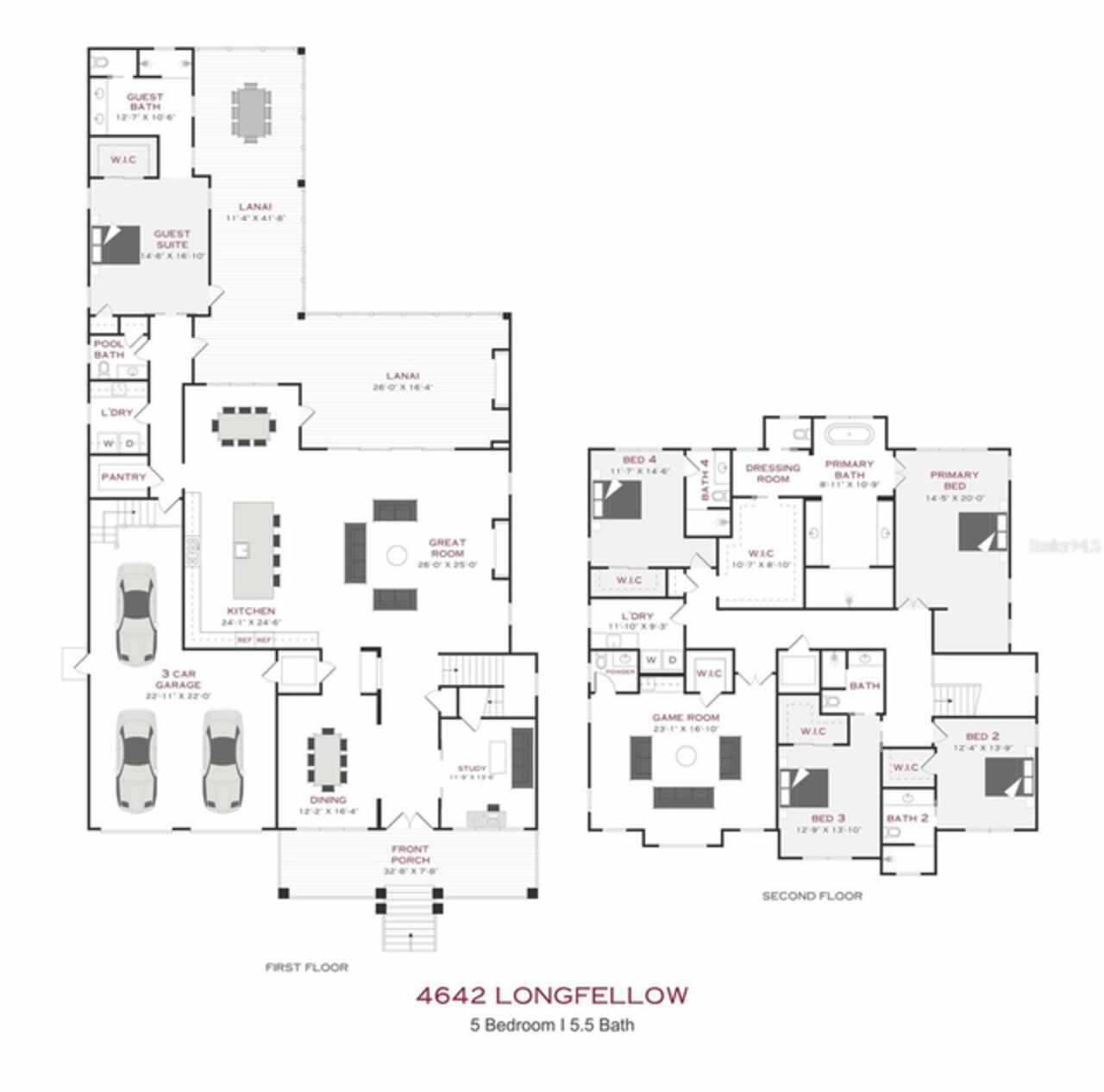 Under Construction. Welcome to the "Streamsong", the latest design by Taralon Homes. Located in the highly sought after Sunset Park neighborhood of South Tampa. This 5 bedroom, 5/2 bath home rests on an exceptional 200 foot deep site and features a Transitional style elevation with clean lines, sand stucco finish, square columns and a gable roof design with metal accents. Features include an open concept floorplan with spacious living and dining areas, saltwater pool and spa, 943sf covered lanai, outdoor kitchen, and a paver driveway. The first floor includes a Study, Dining Room, Great Room with fireplace, a Chef's kitchen with center island, Wolf/Subzero appliances and a luxury guest suite with private access to the covered lanai and pool. The second floor includes a well-appointed primary suite with exceptional spa-bath, a generous Game Room with wet bar and its own walk-in storage closet, and laundry room. Three additional bedrooms each with ensuite baths and walk-in closets, completes the second level. The home features 7.5" Naturally Aged Medallion Collection wood flooring, 7" crown molding and baseboards, insulated Low-E impact windows, Level 5 drywall finish on walls and ceilings, 2 tankless water heaters, solid core doors throughout, gas fireplace, and a 3-car garage. Additionally space for an elevator has been framed, should it be required by the family in the future. Located in a top-rated school district and just minutes to TIA, restaurants, shopping, and Gulf beaches. Construction is moving ahead of its scheduled completion in March 2026.