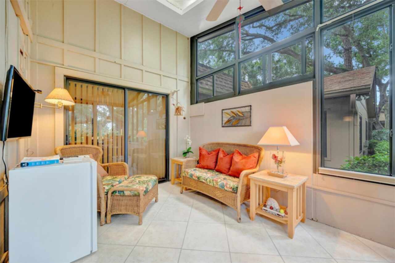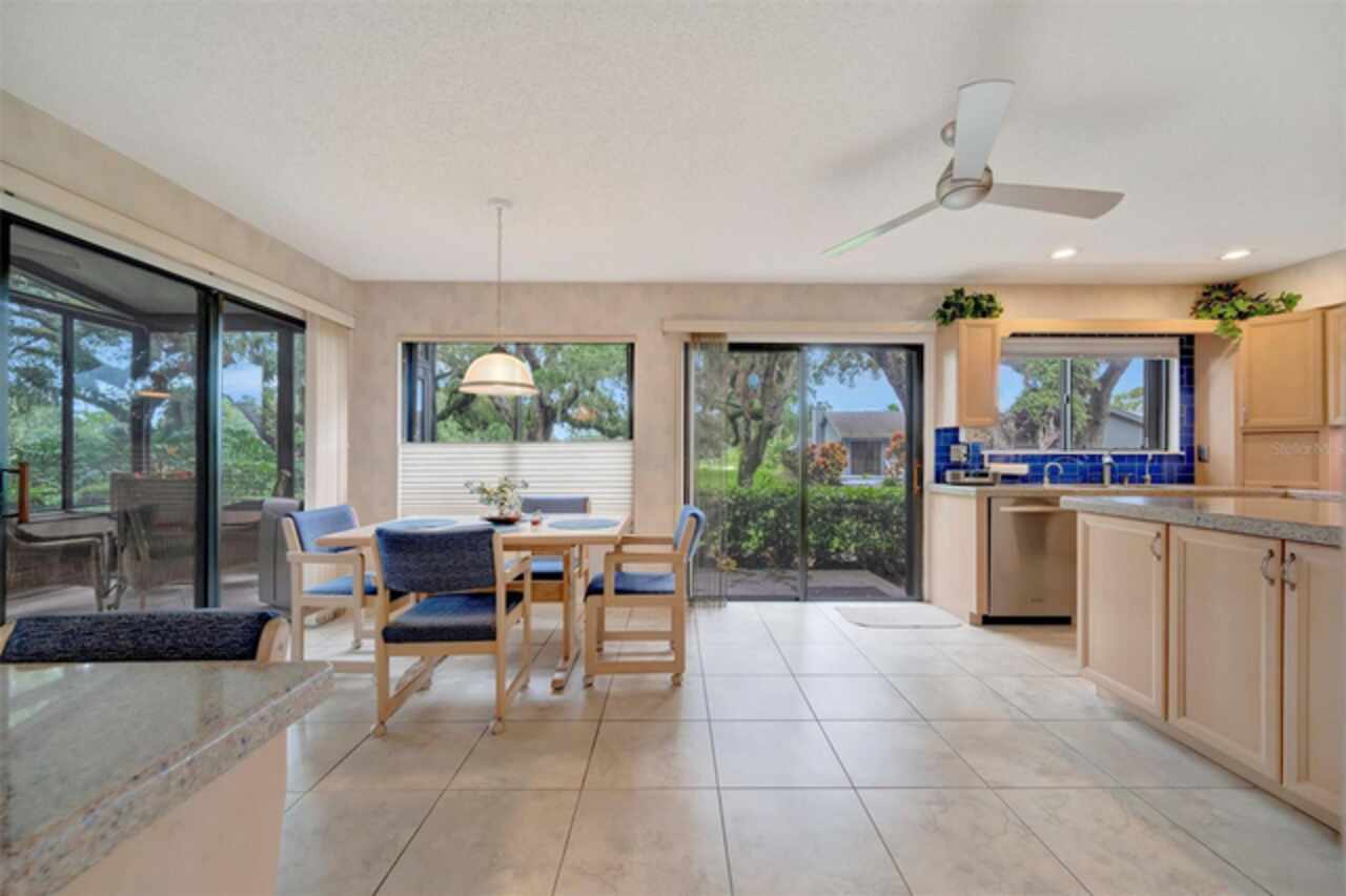 Welcome to your slice of paradise in the Hammocks Bent Tree gated community, a charming Sarasota community surrounded by lush Florida greenery. This well-maintained 3-bedroom, 2-bath 2 car garage townhome offers an inviting open layout with vaulted ceilings, abundant natural light, and a seamless flow between living spaces. The kitchen features plenty of cabinet storage and overlooks the spacious living/dining area, making it perfect for entertaining. Step outside to your private screened lanai and enjoy the tranquil views of the landscaped grounds. The primary suite boasts a walk-in closet and en-suite bath, while the split-bedroom design ensures privacy for guests. Additional highlights include in-unit laundry, covered parking, and low-maintenance living. Oak Hollow residents enjoy a sparkling community pool, clubhouse, and beautifully landscaped common areas. Ideally located just minutes from I-75, shopping, dining, golf courses, and Sarasota's world-renowned beaches, this home offers both comfort and convenience. Whether you're seeking a year-round residence or a seasonal retreat, this townhome is the perfect opportunity to enjoy the Florida lifestyle.