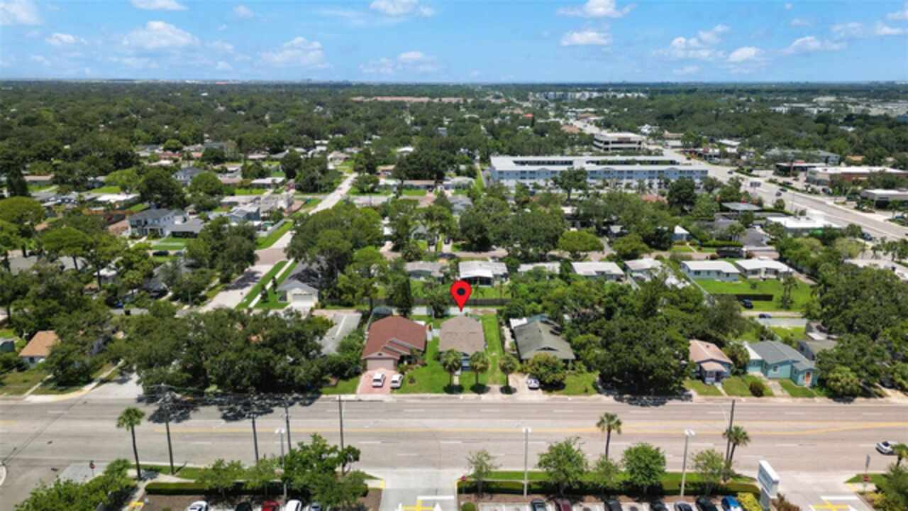 One or more photo(s) has been virtually staged. 1 YEAR HOME WARRANTY WITH AN ACCEPTED OFFER BY 12/1. SELLER IS OFFERING $5000 TOWARDS BUYER'S CLOSING COSTS AND THIS HOME HAS AN ASSUMABLE VA LOAN AT 2.99%!!! Just minutes to Downtown St Pete and I-275, in a location where you can WALK TO IT ALL (Say goodbye to parking lot chaos) Crunch Fitness, Publix, Whole Foods, Starbucks, El Cap, Allendale Park and more! With 2 bedrooms and 2 bathrooms this bungalow absolutely nails the “feels like home” vibe the second you walk in. The open floor plan connects the living, dining and kitchen space with plenty of room for hanging out or hosting friends. The large kitchen has shaker cabinets, stainless steel appliances and tons of counter space, with its very own side entry-perfect for unloading groceries! Step out to your covered patio ideal for lazy evenings, BBQs or a glass of wine rain or shine. The guest room has a big walk-in closet and loads of natural light with a guest bath conveniently located in the hallway while your main ensuite features double closets and a private bath to keep things stress-free. Both bathrooms are updated with new sinks, vanities and travertine tile. Inside laundry room and an extra storage shed? Yup, it's got that too! The fully fenced yard offers privacy and there's even room to add a pool. The OVERSIZED LOT with a street to alley driveway offers plenty of room for the boat or RV. Remodeled in 2016 to include the roof, plumbing, electrical and a new AC in 2024. Flood Zone X and no damage from last year's storms. Schedule your showing today!