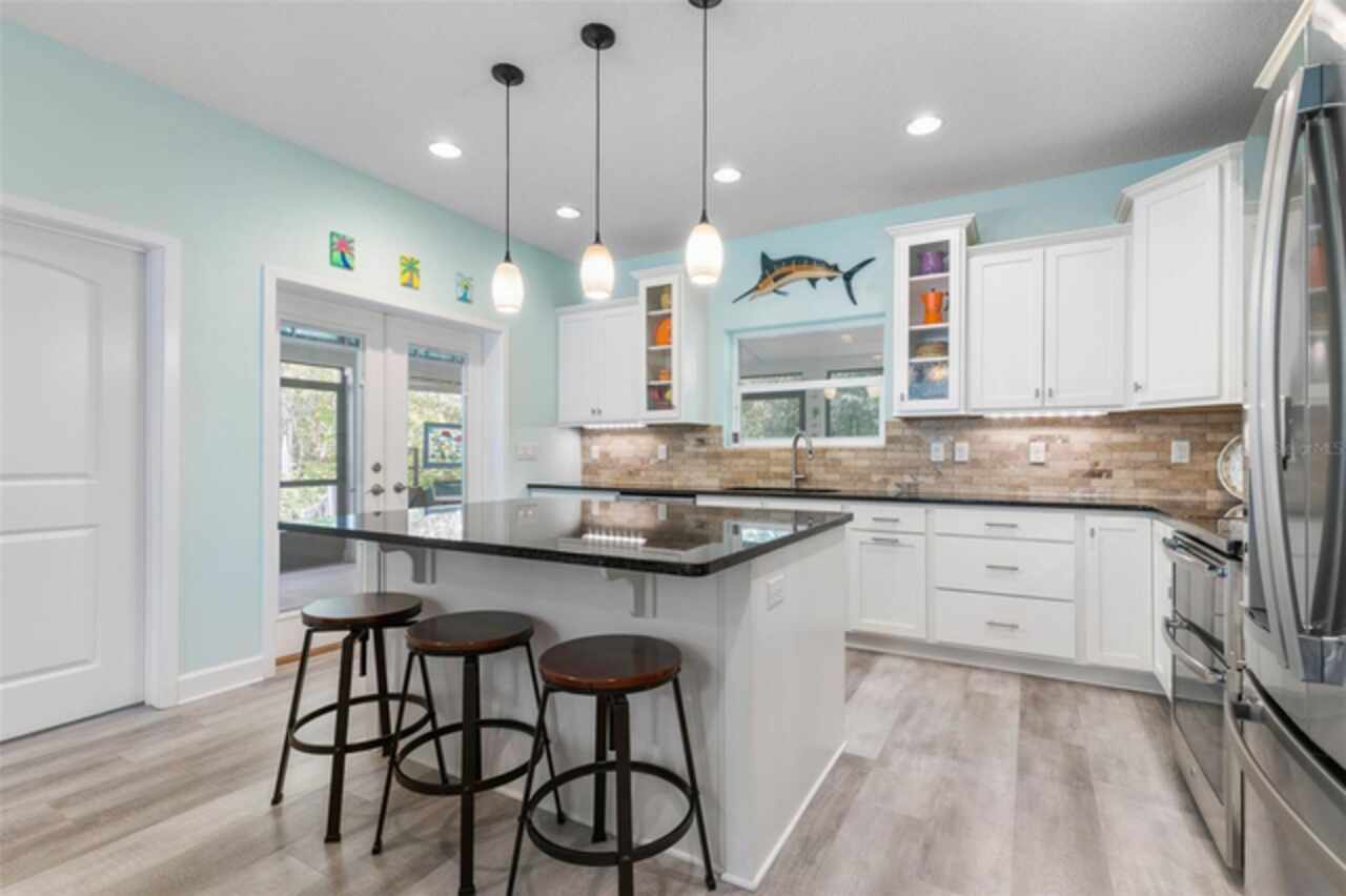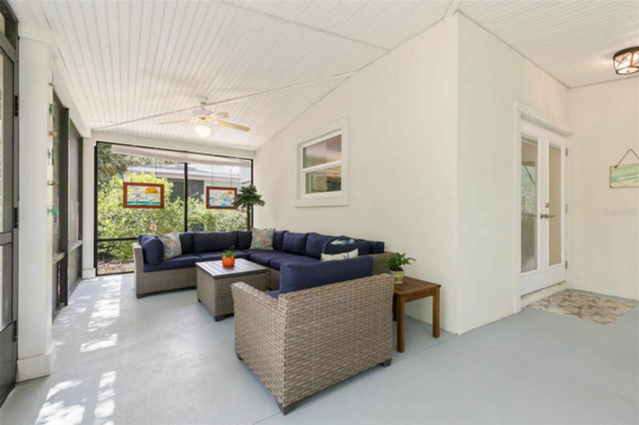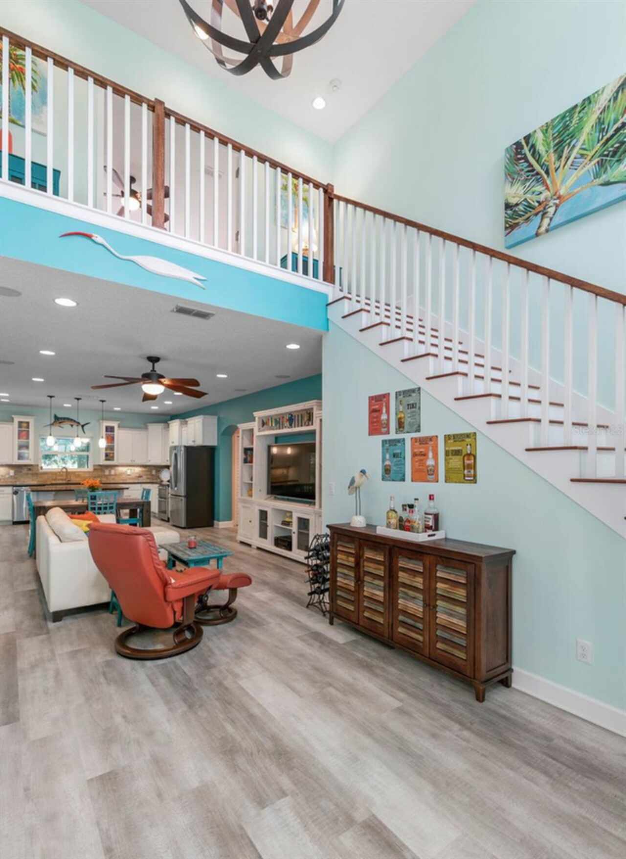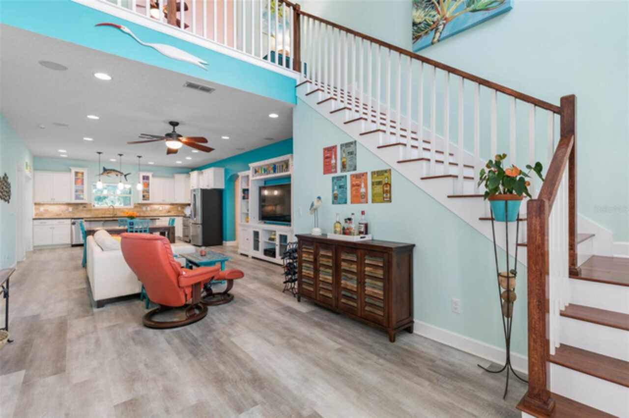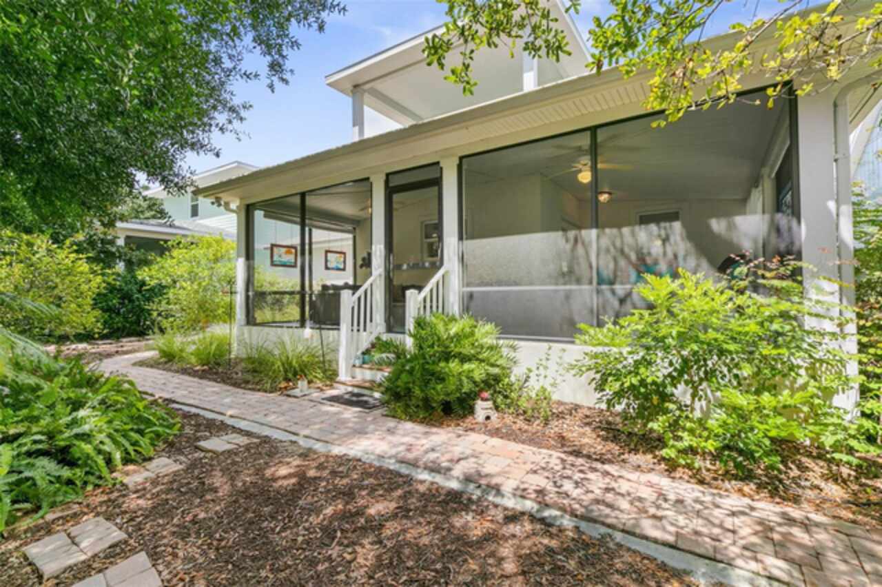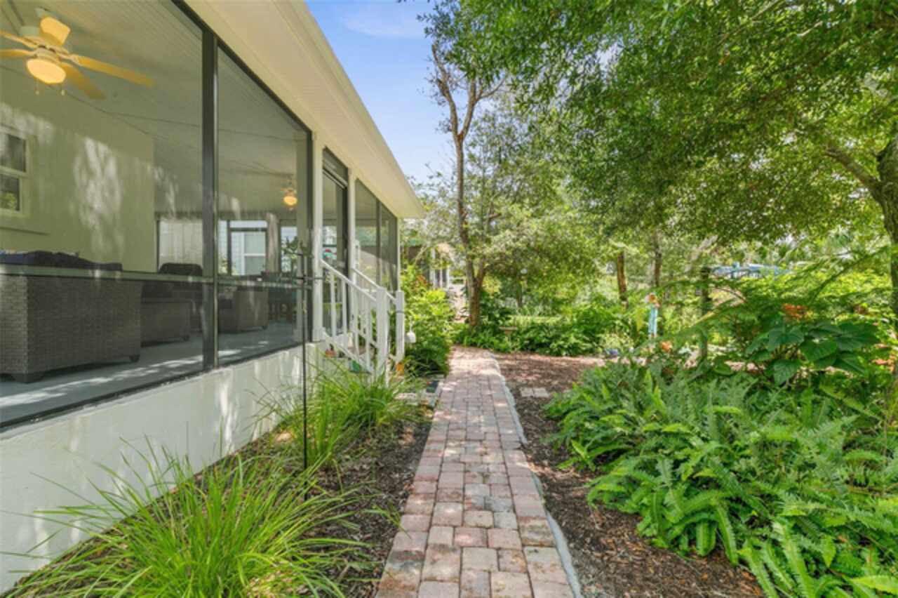 Welcome to Beach Haven's Happy house! Good vibes and sunny days welcome you home to your very own beach life. Stunning Key West style and custom built design- there is no other home like this one in Beach Haven! The owner's were thoughtful in their execution so you will enjoy peace of mind with stem wall elevation -concrete block construction on the first level and Hardie-board cement siding on the second level with Icynene foam insulation as well as Impact windows throughout.( only kitchen french doors are not impact- Balcony and front doors are.) New washer and dryer & refrigerator added in August 2024. Upon entry to this cozy retreat you are wowed with cathedral ceilings to upstairs landing which houses the Owner's retreat with its private balcony overlooking the most beautiful natural setting. This private perch is perfect for sipping coffee or reading a book amongst the birds. Downstairs encapsulates the heart of the home with open concept living for easy entertaining and five speaker surround sound and Luxury Vinyl Plank flooring throughout the home. The cook in the family will enjoy prepping meals and hosting guests easily as the french doors open to a large screened in porch. Take full advantage of the Florida lifestyle as your indoor space flows outdoors with this exceptional floor plan. Dine al fresco and relax in the outdoor living room- you are surrounded by nature in your private back yard which is a true garden oasis. Vibrant citrus trees and flora and fauna can be enjoyed with sweet little garden paths and sitting areas to enjoy the cool of the day. Every house by the sea deserves an oversized garage and this one has a nice work shop area or additional storage area in the back as well as attic access storage. Just down Sandy Beach Way is the community deeded beach access for your favorite beach days. Be sure and and wind down with a cool dip in Beach Haven's community pool overlooking the lake and footbridge. Beach life is calling and we've got your keys to the beach! Buyer to verify measurements.