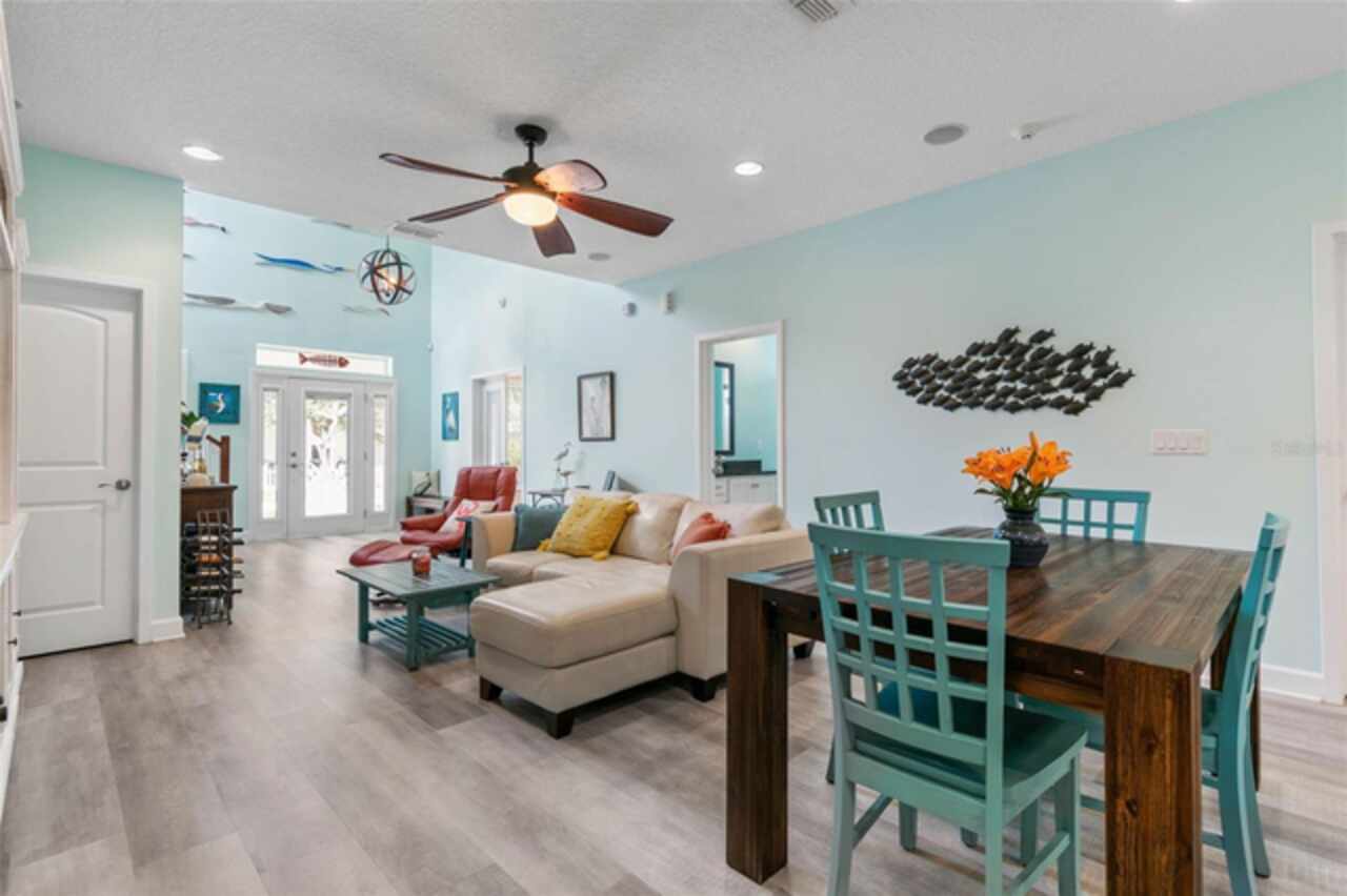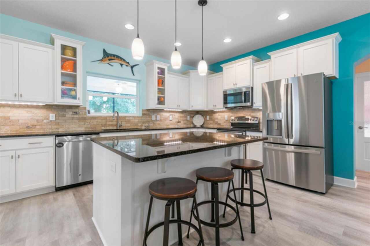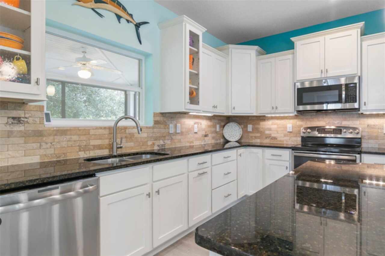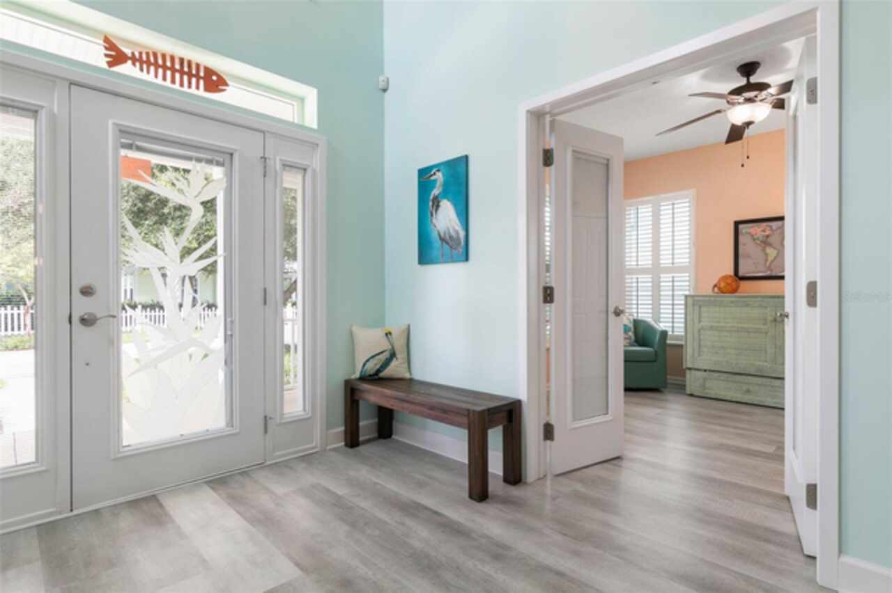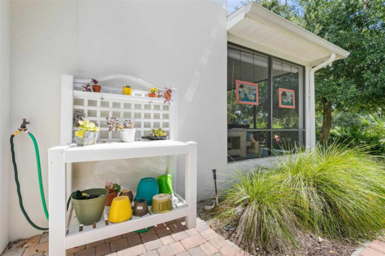 Welcome to Beach Haven's Happy house! Good vibes and sunny days welcome you home to your very own beach life. Stunning Key West style and custom built design- there is no other home like this one in Beach Haven! The owner's were thoughtful in their execution so you will enjoy peace of mind with stem wall elevation -concrete block construction on the first level and Hardie-board cement siding on the second level with Icynene foam insulation as well as Impact windows throughout.( only kitchen french doors are not impact- Balcony and front doors are.) New washer and dryer & refrigerator added in August 2024. Upon entry to this cozy retreat you are wowed with cathedral ceilings to upstairs landing which houses the Owner's retreat with its private balcony overlooking the most beautiful natural setting. This private perch is perfect for sipping coffee or reading a book amongst the birds. Downstairs encapsulates the heart of the home with open concept living for easy entertaining and five speaker surround sound and Luxury Vinyl Plank flooring throughout the home. The cook in the family will enjoy prepping meals and hosting guests easily as the french doors open to a large screened in porch. Take full advantage of the Florida lifestyle as your indoor space flows outdoors with this exceptional floor plan. Dine al fresco and relax in the outdoor living room- you are surrounded by nature in your private back yard which is a true garden oasis. Vibrant citrus trees and flora and fauna can be enjoyed with sweet little garden paths and sitting areas to enjoy the cool of the day. Every house by the sea deserves an oversized garage and this one has a nice work shop area or additional storage area in the back as well as attic access storage. Just down Sandy Beach Way is the community deeded beach access for your favorite beach days. Be sure and and wind down with a cool dip in Beach Haven's community pool overlooking the lake and footbridge. Beach life is calling and we've got your keys to the beach! Buyer to verify measurements.