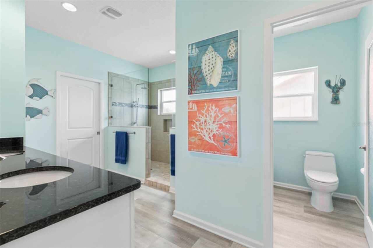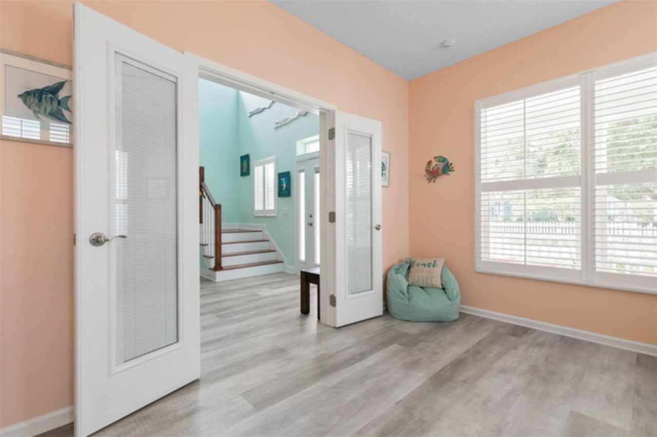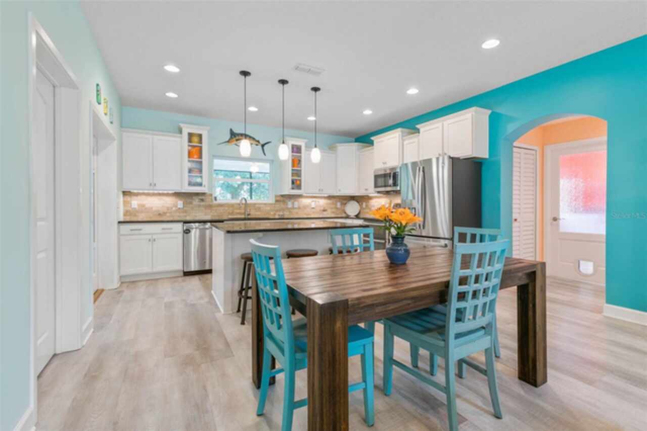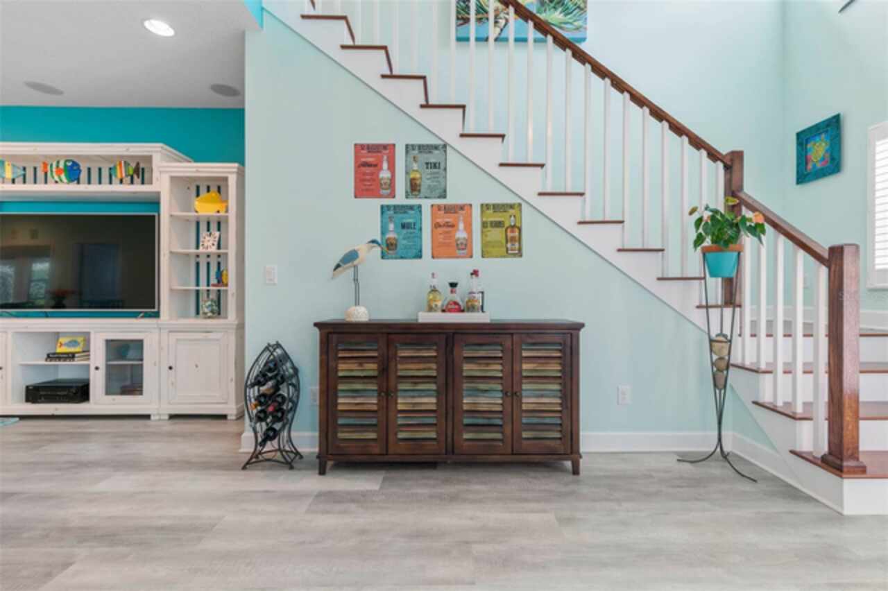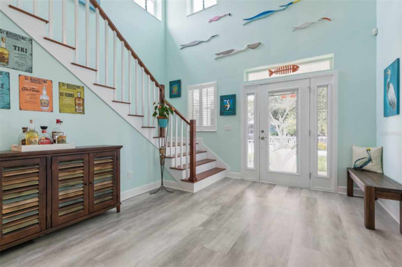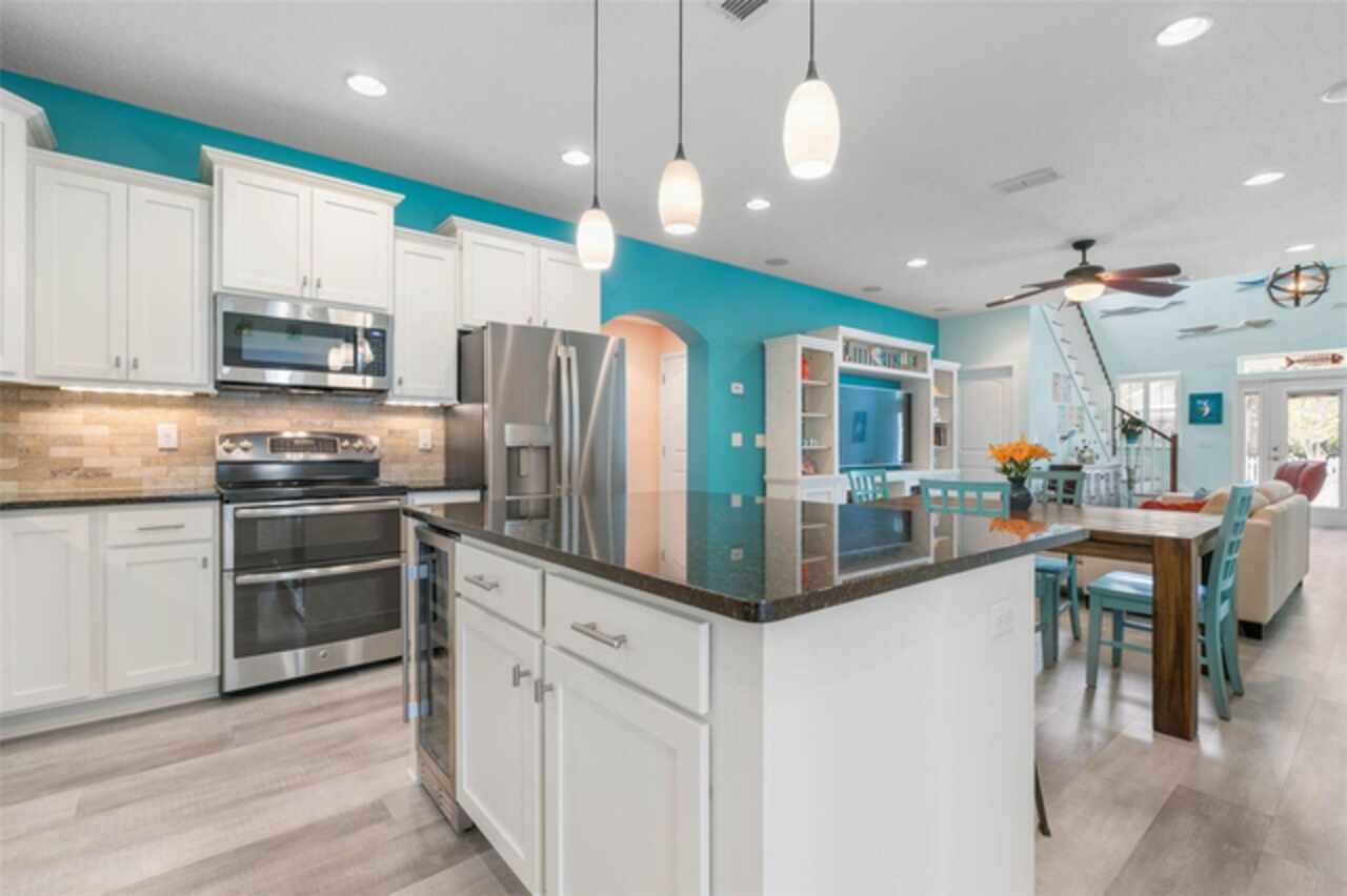 Welcome to Beach Haven's Happy house! Good vibes and sunny days welcome you home to your very own beach life. Stunning Key West style and custom built design- there is no other home like this one in Beach Haven! The owner's were thoughtful in their execution so you will enjoy peace of mind with stem wall elevation -concrete block construction on the first level and Hardie-board cement siding on the second level with Icynene foam insulation as well as Impact windows throughout.( only kitchen french doors are not impact- Balcony and front doors are.) New washer and dryer & refrigerator added in August 2024. Upon entry to this cozy retreat you are wowed with cathedral ceilings to upstairs landing which houses the Owner's retreat with its private balcony overlooking the most beautiful natural setting. This private perch is perfect for sipping coffee or reading a book amongst the birds. Downstairs encapsulates the heart of the home with open concept living for easy entertaining and five speaker surround sound and Luxury Vinyl Plank flooring throughout the home. The cook in the family will enjoy prepping meals and hosting guests easily as the french doors open to a large screened in porch. Take full advantage of the Florida lifestyle as your indoor space flows outdoors with this exceptional floor plan. Dine al fresco and relax in the outdoor living room- you are surrounded by nature in your private back yard which is a true garden oasis. Vibrant citrus trees and flora and fauna can be enjoyed with sweet little garden paths and sitting areas to enjoy the cool of the day. Every house by the sea deserves an oversized garage and this one has a nice work shop area or additional storage area in the back as well as attic access storage. Just down Sandy Beach Way is the community deeded beach access for your favorite beach days. Be sure and and wind down with a cool dip in Beach Haven's community pool overlooking the lake and footbridge. Beach life is calling and we've got your keys to the beach! Buyer to verify measurements.