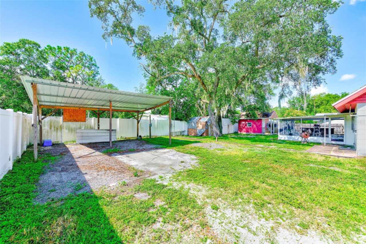 MASSIVE PRICE REDUCTION & SELLER IS OFFERING A $5, 000 BUYER CLOSING COST CREDIT! CAN YOU BELIEVE THE OPPORTUNITY TO OWN A HOME IN THE BACKYARD OF THE USF CAMPUS OR CLOSE TO ALL OF THE AMAZING FUN AT BUSCH GARDENS BUT HERE IT IS! THIS HOME WOULD NORMALLY BE FOUND IN THE MOUNTAINS OF NORTH CAROLINA WITH THE COUNTRY FEEL BUT THIS 3 BEDROOM WITH 2 FULL BATHS AND 1 CAR GARAGE THAT IS COMPLETELY FENCED AND IS GRACED BY THE MOST BEAUTIFUL SOUTHERN OAKS IN THE TAMPA BAY AREA! MASTER SUITE IS LOCATED ON THE MAIN FLOOR WITH 2 SPACIOUS BEDROOMS AND ANOTHER FULL BATHROOM UPSTAIRS! THERE'S MORE TO THIS PROPERTY THAN MEETS THE EYE...THE HOME FEATURES AN ENORMOUS SCREENED REAR PATIO WITH YOUR VERY OWN CUSTOM TIKI BAR AND OPEN PAD FOR THE BAR B QUE AREA AS WELL! THERE'S ALSO A SHE SHED IN THE REAR YARD WHERE YOUR MOM, DAD OR TEEN COULD SLEEP AND ENJOY THE KITCHEN & BATHROOM PRIVILEGES OF THE MAIN HOME! THE SHE SHED IS AN INSULATED & WIRED 110 VOLT 08 BY 16 BUILDING WITH AIR & UPPER LOFT FOR SLEEPING QUARTERS & OUTLETS, PLUGS & LIGHTS! DO YOU OWN A FEW RV'S...THIS HOME HAS A DOUBLE DOOR ENTRY TO A FENCED AREA AND YOU'LL BE ABLE TO PARK UNDER THE CUSTOM 2 BAY CARPORT WITH ELECTRICITY! THERE'S EVEN MORE WITH THE HUGE 20 X 10 FOOT EXTERIOR BUILDING THAT IS WIRED & CAN BE A GREAT WORKSHOP AND ENORMOUS STORAGE AREA TOO! ANOTHER SMALL SHED IS PLACED CONVENIENTLY IN THE BACK YARD FOR YOUR LAWN EQUIPMENT LEAVING THE GARAGE FOR EXTRA ROOM! ROOF 2013; DOUBLE PANED & INSULATED WINDOWS 2017; UPSTAIRS VINYL SIDING 2020; TERMITE TREATED 2021; MASTER BATH REMODELED 2021! STORM DOOR ON FRONT ALLOWS THE CONVENIENCE OF LOTS OF BRIGHT & LIGHT TO ENTER THE FRONT OF THE HOME! NEWER KITCHEN APPLIANCES TOO! DID I MENTION THERE ARE NO HOA FEES AND NO CDD FEES MAKING THIS HOME INCREDIBLY AFFORDABLE! THIS CHARMING HOME IS AVAILABLE AS SOON AS YOU'D LIKE TO CLOSE!