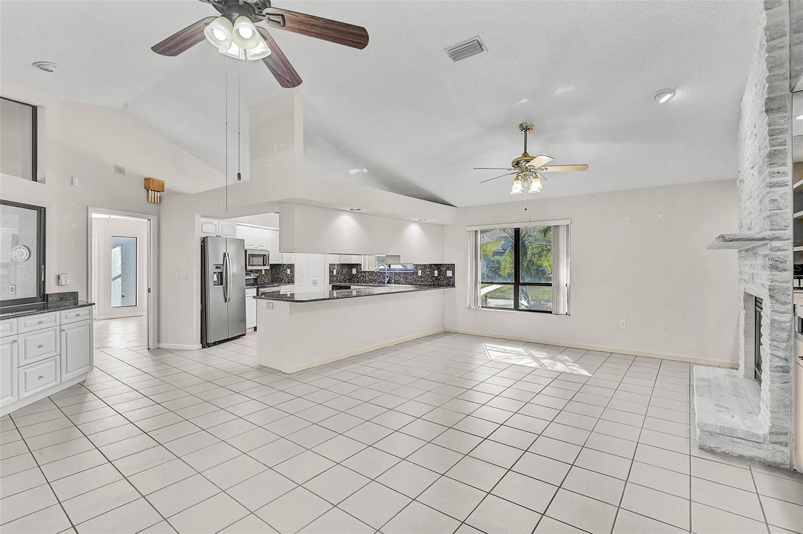 Ceiling Fans(s), Living Room/Dining Room Combo, Open Floorplan, Primary Bedroom Main Floor, Stone Counters, Vaulted Ceiling(s)