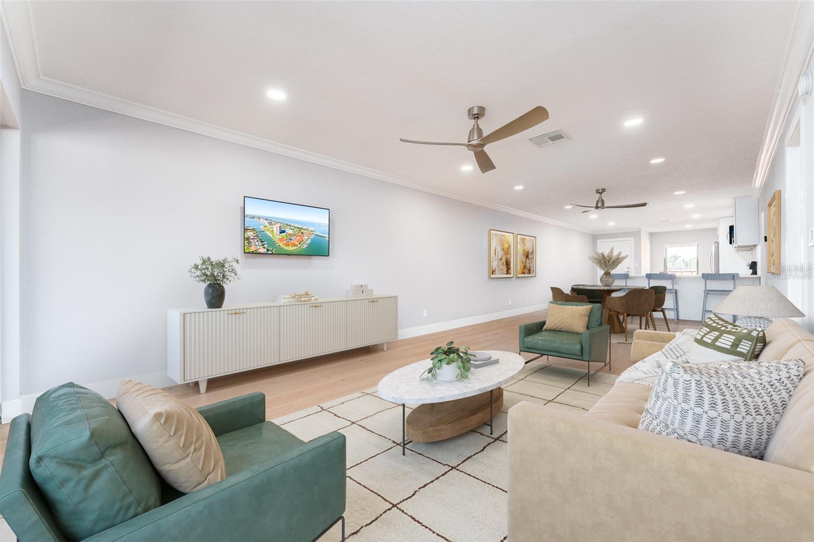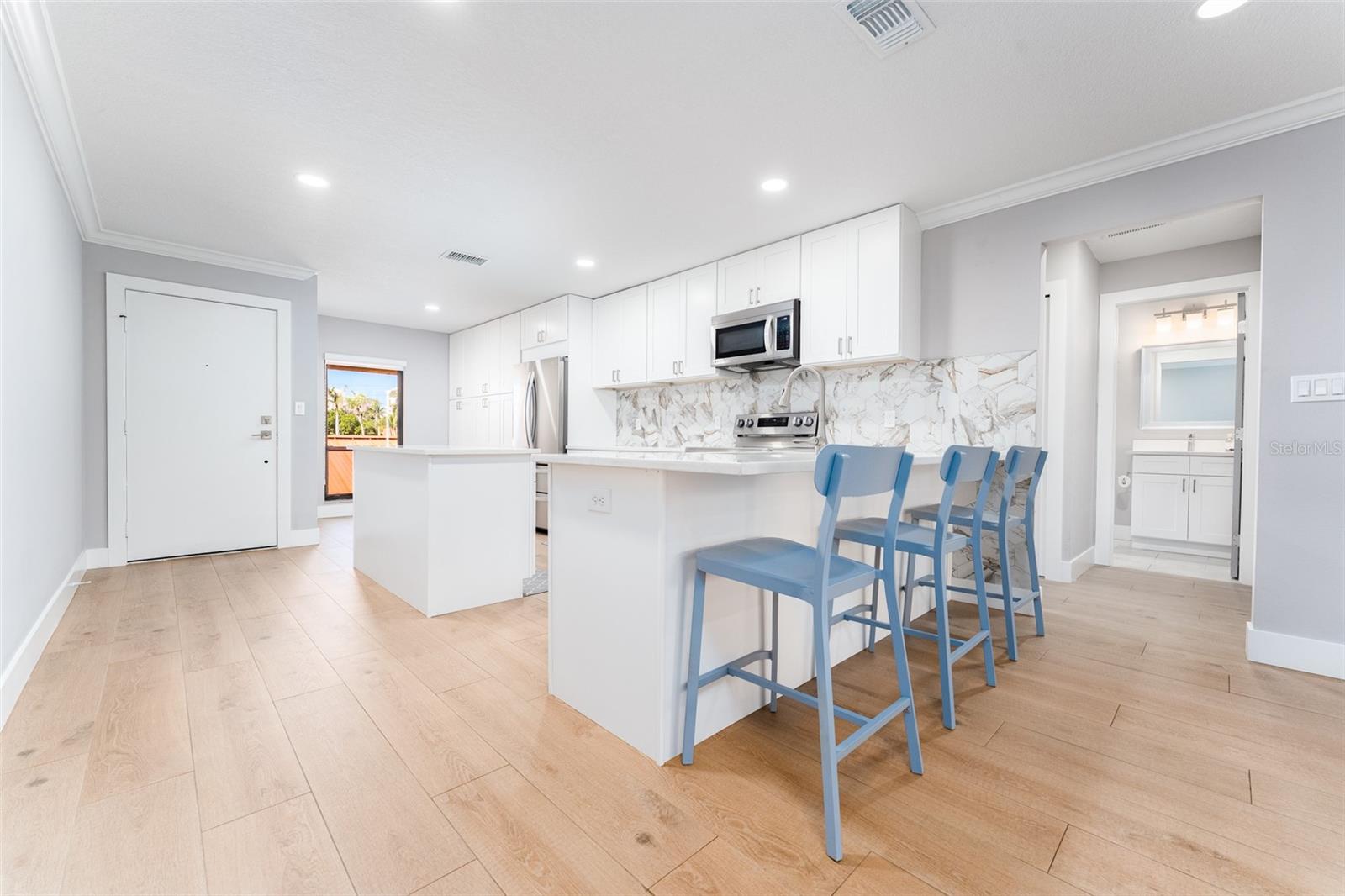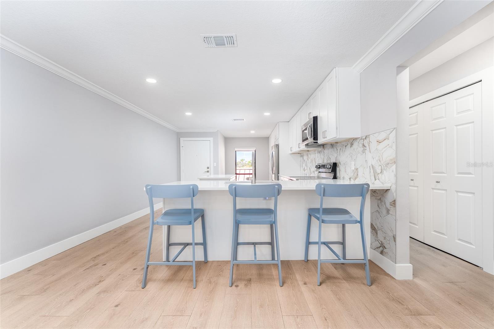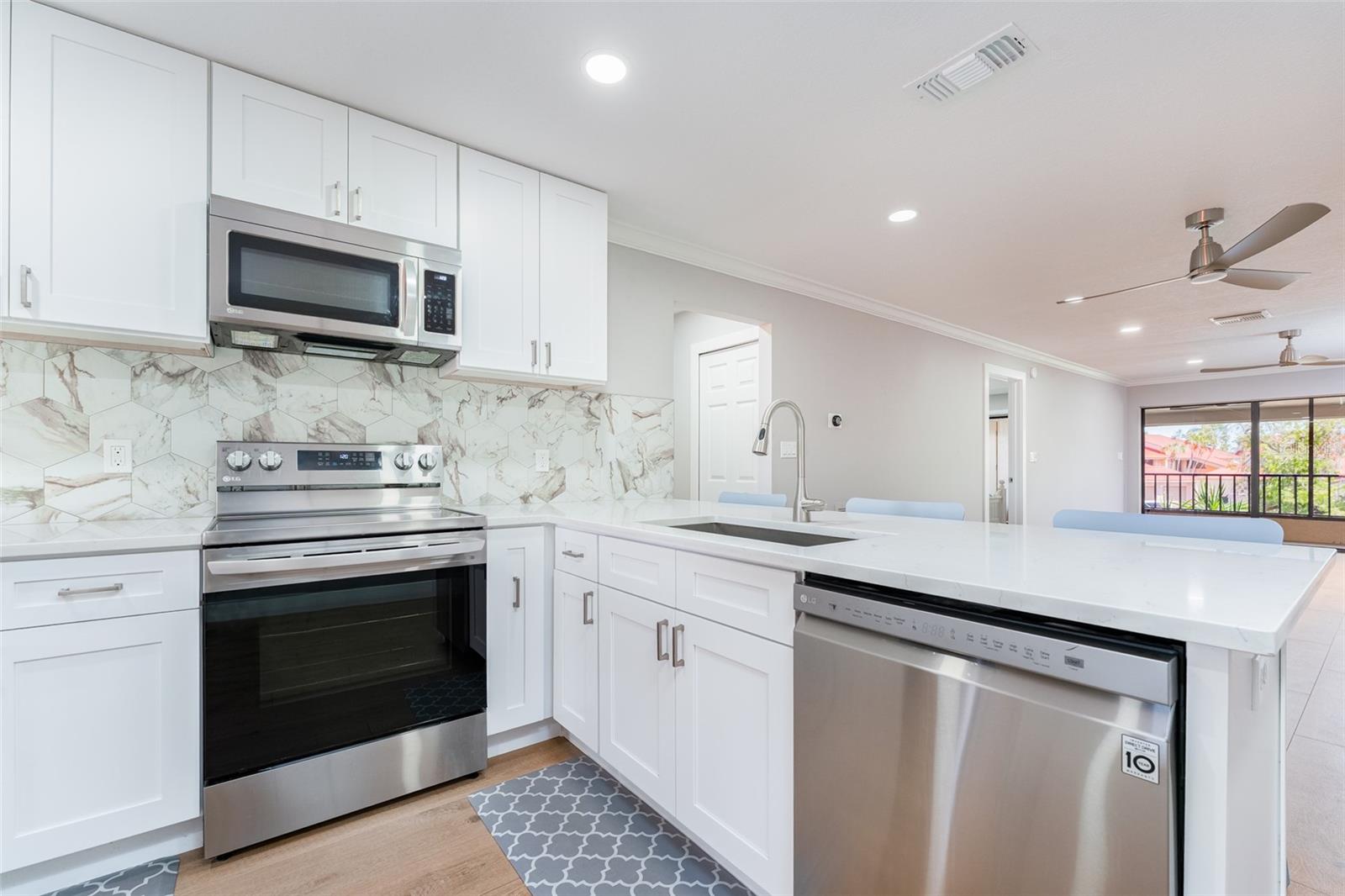 Why go on vacation when you can LIVE where everyone vacations? This beautiful fully renovated condo located in the non-age restricted desirable Villas on Point Brittany gated waterfront community gives you everything you want…and right smack in the middle of tropical paradise! This chic high and dry second floor 1, 220 sq ft open-concept condo has 2 bedrooms, 2-bathrooms, and a large private covered lanai overlooking lush tropical plants. Completely renovated in 2022, this beautiful open unit includes wood-look tile plank flooring throughout, quartz countertops, new A/C and tankless water heater, new stainless appliances, new kitchen cabinets/pantry with extensive storage, new full-size washer/dryer, custom closet finishes as well as new lighting and ceiling fans in every room. The community installed a brand-new 45+ year seamless metal roof in 2025. The spacious primary bedroom has an elegant updated en suite bathroom and built in walk-in closet. Need privacy? No problem! The split floor plan allows the second bedroom and full guest bath plenty of comfort and privacy. So, your guests and family will have their own wing of the condo. The over-sized screened and tiled lanai is accessible from both the family room AND primary bedroom and has a storage closet for all of those beach chairs and toys you’ll need, because the beach is right around the corner! This highly sought after waterfront community has beautiful walking grounds, a resort-style heated/cooled pool and spa, fishing pier, and docks perfect for dolphin and manatee spotting (boat slips are sometimes available for sale or rent). Maintenance-free living with a monthly HOA that includes cable, internet, water insurance and much more. Small pets are welcome in this friendly community. This is the PERFECT home OR home away from home as it can be an excellent income-producing vacation rental. Not only can you make money renting it out, you get to enjoy it yourself! 30-day minimum (12-times-per-year) rental flexibility. The PRIME LOCATION has EVERYTHING at your fingertips! Just 2.5 miles to world famous St. Pete Beach, a short walk to the Bayway Country Store and Butcher Shop (a local favorite), a few minutes from the Don Cesar, Pass-a-Grille beach, Treasure Island, Fort De Soto Park, 10 minutes to all the action, baseball games at Tropicana Field, world-class restaurants, museums, and sites of Downtown St. Pete, and easy access to I-275 with Tampa International airport, Raymond James Stadium, Riverwalk, the Straz Center, and all the Tampa hot spots just a quick 30 minutes away. This is the perfect location for ANYTHING you want to do! Whether you're looking for an income-producing second home in paradise or you want to live in paradise permanently…THIS IS IT!