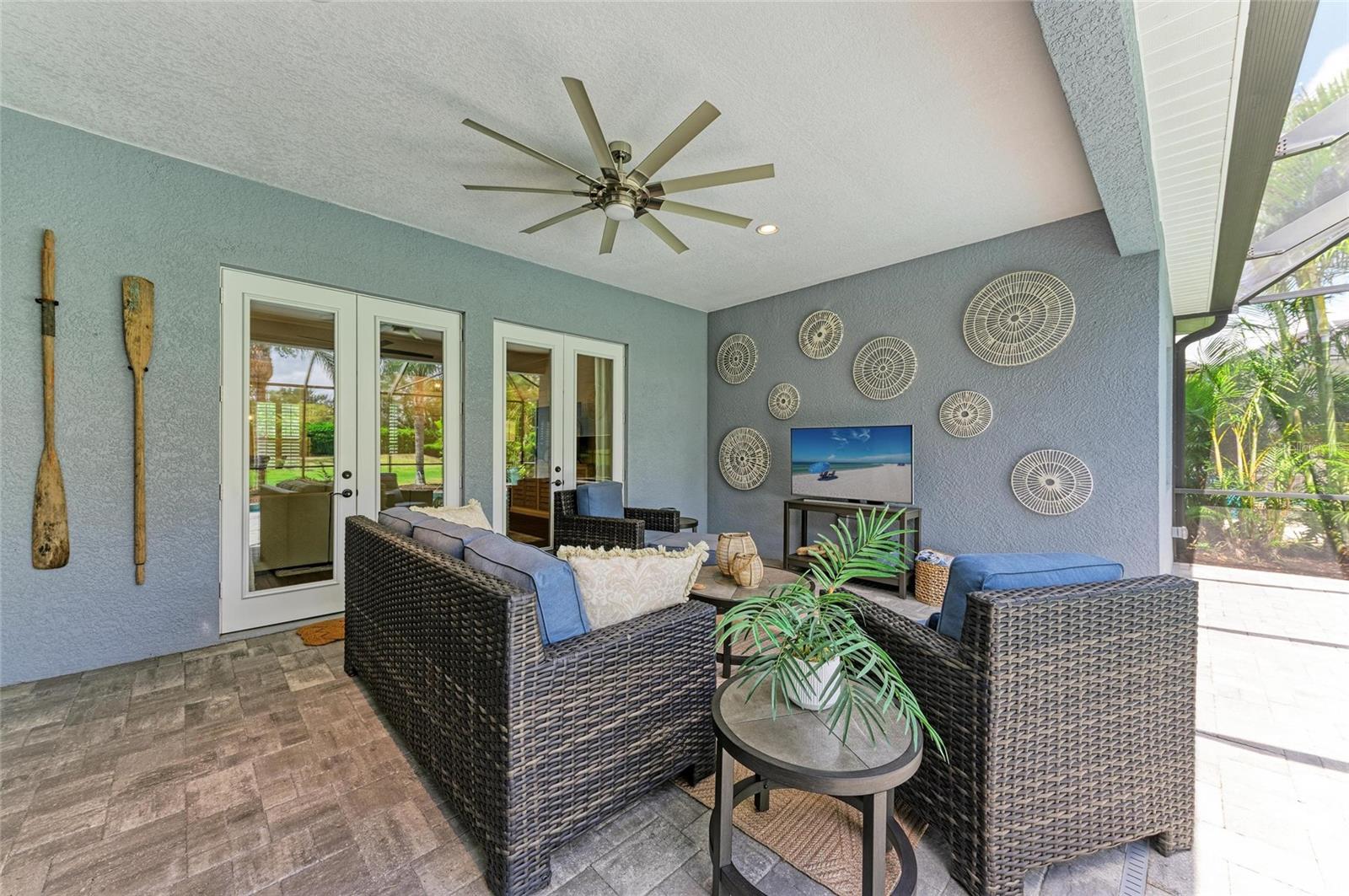 French Doors, Hurricane Shutters, Lighting, Rain Gutters, Sidewalk, Sliding Doors