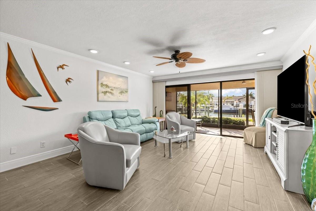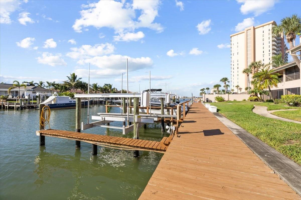 DEEDED BOAT SLIP/ LIFT • PRIVATE GARAGE • FULLY RENOVATED WATERFRONT CONDO This rare first-floor end unit is the only one available with the expanded footprint, perfectly positioned on the serene side of the community along a quiet canal, offering peaceful water views and you boat lift just a few steps away. Step outside to your brand new (2025) 12, 000-lb deeded boat lift sitting just steps beyond your lanai, and in under five minutes you’ll be cruising into the Gulf of Mexico. Whether it’s a quick run to the sandbar, a sunset dinner by boat, or an off shore fishing trip, this is the location for serious boaters. This ground floor unit remained completely dry through past storms, offering peace of mind. Inside, the home has been completely reimagined with timeless coastal style, designer finishes and a brand new HVAC system for year round comfort. A brand new standing seam aluminum roof enhances both island aesthetics and storm-ready durability. The chef’s kitchen steals the show with custom tile backsplash, high-end stainless appliances and an oversized island topped with butcher block, perfect for entertaining. A sleek built-in workspace with glass-inset cabinetry provides an elegant, functional nook for remote work or planning the next boat day. The open layout flows effortlessly through the dining and living areas, anchored by wood tile flooring and recessed lighting that amplifies the airy coastal vibe. Massive sliders flood the space with natural light and open to your oversized screened lanai, the larger style in the community, offering panoramic canal views, gentle breezes, and a seamless indoor-outdoor connection. The waterfront primary suite offers a serene retreat with a walk-in closet and a beautifully updated en suite bath. A true split floor plan ensures privacy, with the guest bedroom, bath, and in-unit laundry tucked on the opposite side. Outside, your private garage easily accommodates a full-size vehicle with additional space for paddleboards, fishing gear, and beach toys, an incredibly rare find for waterfront condo living. The property’s heated and cooled waterfront pool and spa promise resort-style comfort year-round, while lush tropical landscaping and community barbecue grills create the perfect setting for effortless dockside dining. All of this just 10 minutes from Downtown St. Petersburg, 2 miles from St. Pete Beach, and moments from Fort De Soto’s white sand beaches. Whether you’re seeking a vacation retreat, investment property, or your forever waterfront escape, this one checks every box.
