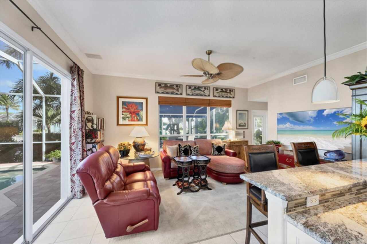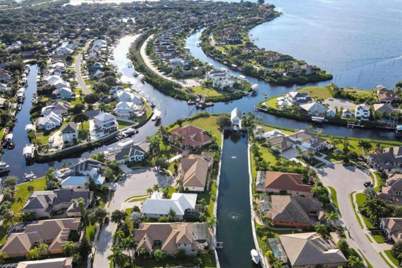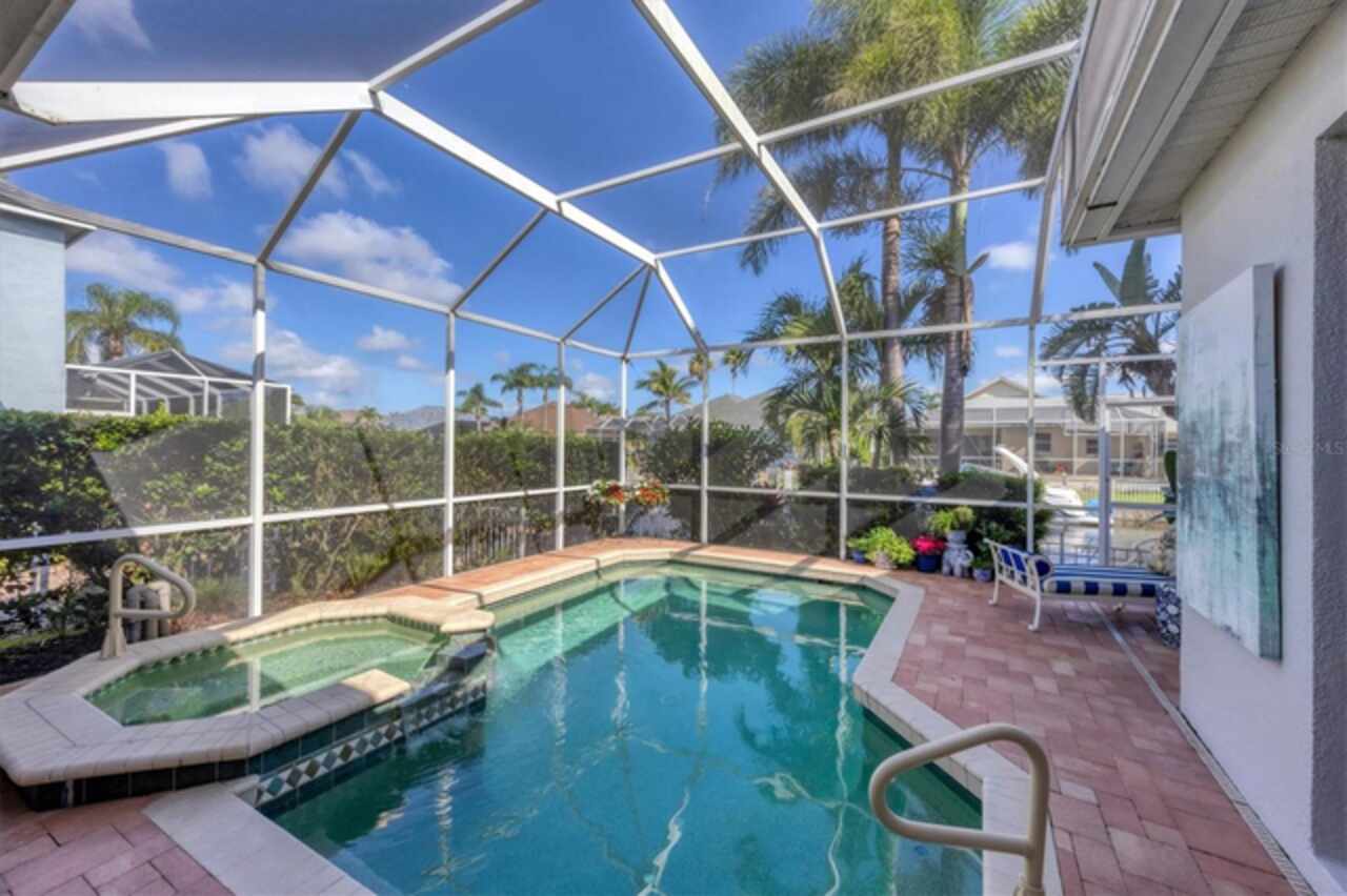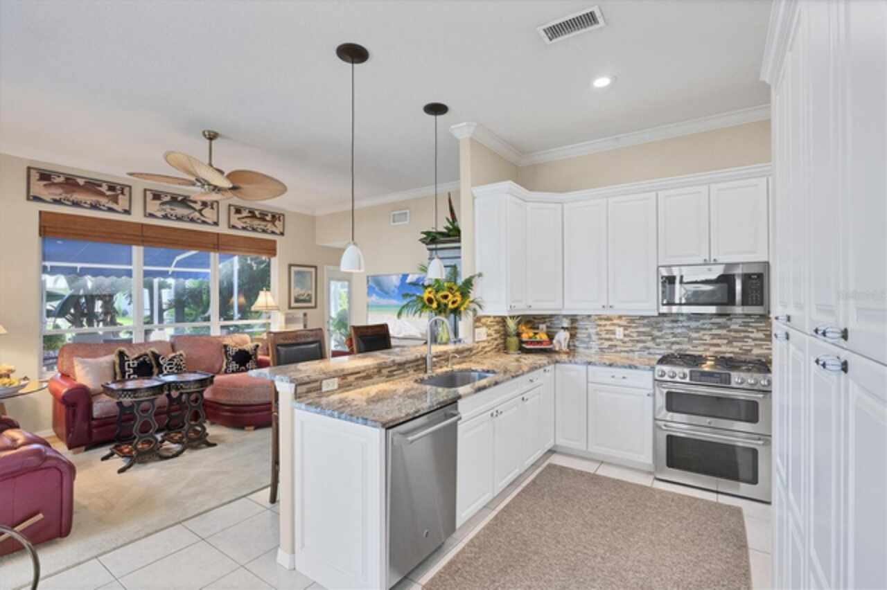 Best value in The Inlets! Now offered at a major price reduction, this Key West–inspired waterfront home combines refined coastal style with unbeatable pricing in one of the area’s premier boating communities. Beautifully updated and move-in ready, this 3-bedroom, 2.5-bath home is designed for seamless indoor-outdoor living. An open floor plan with soaring ceilings, crown molding, and disappearing-corner sliders connects the interior to expansive screened patios, creating the perfect setting for entertaining or relaxing by the water. The kitchen shines with white cabinetry, granite countertops, tile backsplash, and stainless appliances—including a gas range and double electric oven—while the large pantry/laundry room offers abundant storage. The primary suite is a private retreat with pool views, lanai access, dual closets, and a spa-like bath featuring double vanities, a garden tub, and walk-in shower. A split plan provides two additional bedrooms plus a hall bath, while a convenient half bath opens to the outdoor living area. Step outside to your tropical oasis: a heated saltwater pool and spa, covered lanai, remote awning, and solar shades for comfort year-round. The 3-car tandem garage includes double rear doors to the canal—perfect for boat storage or maintenance. Dock your boat (up to 36 ft) with power and water and enjoy fishing, cruising the Manatee River, or dining at local waterfront venues—all with direct Gulf access. Updates include fresh 2024 exterior paint, 2020 HVAC, 2022 pool pump, and 2023 gas heater/automation with salt cell. Community amenities feature tennis, walking trails, fishing dock, kayak launch, playground, and social activities—all with low HOA, no CDD, and low flood insurance. Minutes to I-75, SR-64, Sarasota, St. Pete, Tampa, airports, dining, shopping, and Gulf beaches—this is truly the best-priced waterfront lifestyle in The Inlets.