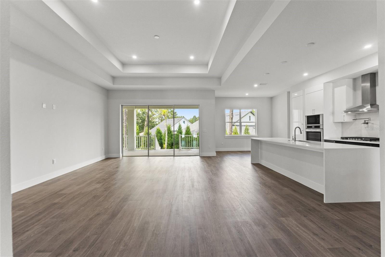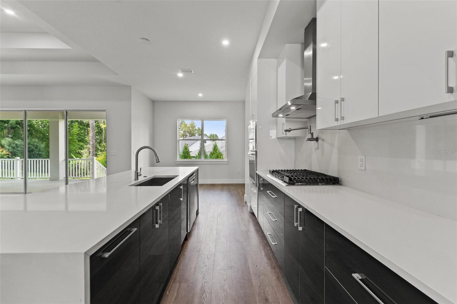 Lighting, Outdoor Grill, Outdoor Kitchen, Sidewalk, Sliding Doors