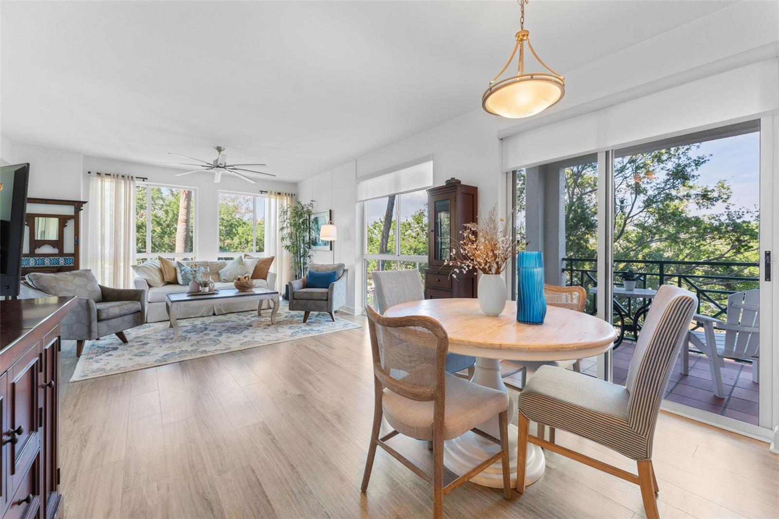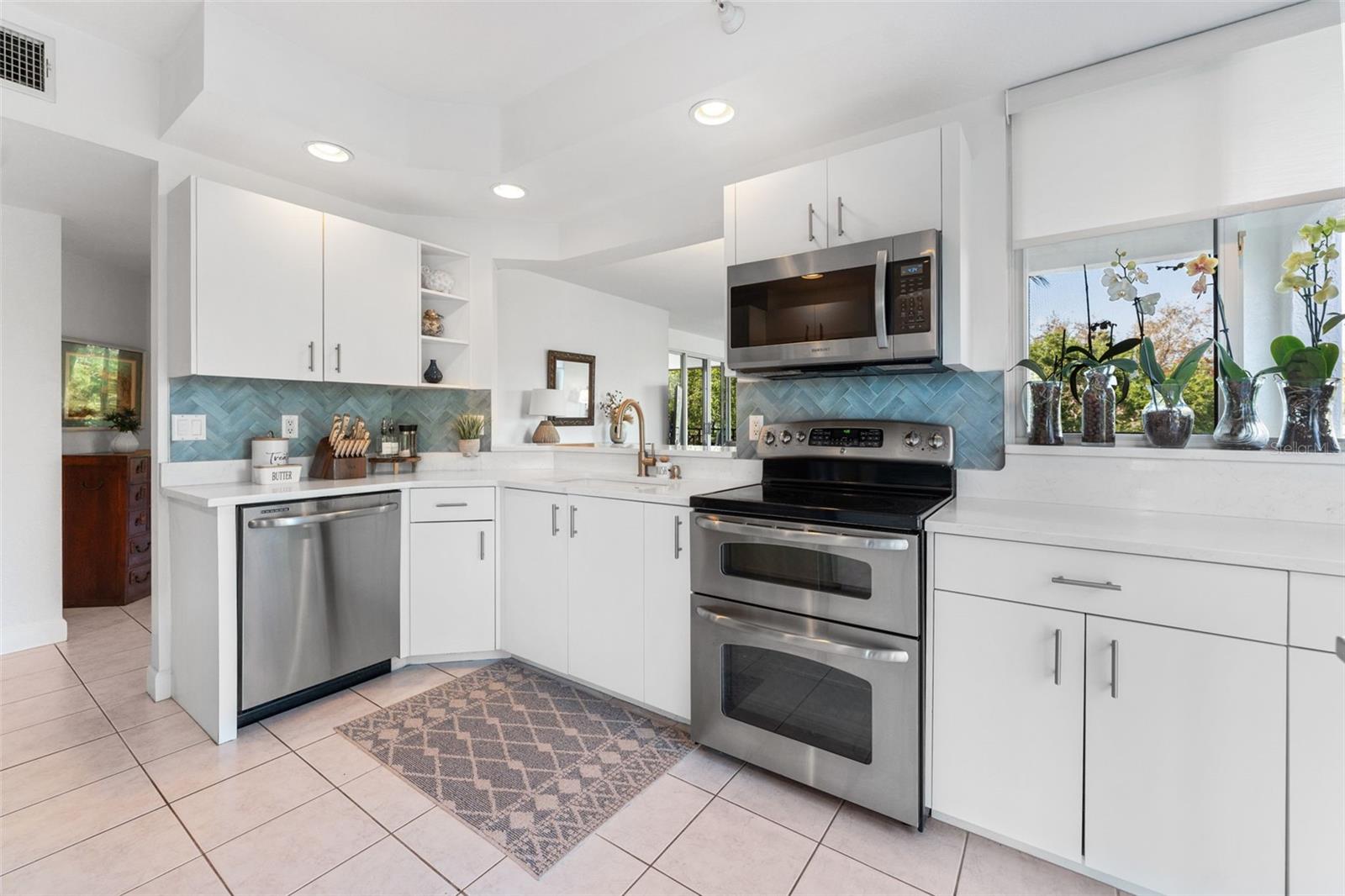 Welcome to your dream retreat at Dolphin Cay! This stunning end unit condo in the desirable Dominica building is truly move-in ready and beautifully updated. From the moment you walk in, you'll notice the difference — the spacious split-bedroom floor plan is flooded with natural light thanks to floor-to-ceiling windows outfitted with brand new custom Levolor light-filtering shades. Whether it's the soft glow of sunrise or the warm hues of sunset, you’ll enjoy gorgeous light all day long. The kitchen is a showstopper, featuring 2023 updates including sleek new countertops, backsplash, sink, and faucet — plus a state-of-the-art LG Door-in-Door refrigerator and microwave. A charming balcony off the kitchen offers the perfect spot for morning coffee or evening wine — and it's just one of three balconies in the unit, giving you an abundance of outdoor living space. The primary suite opens onto a private, oversized lanai protected by 2017-installed hurricane shutters — peace of mind and pure relaxation in one. Step into the fully renovated primary bathroom, reimagined from the studs up into a sophisticated, spa-like haven in 2024. The custom walk-in closet is equally impressive, complete with tailored cabinetry and a built-in laundry bin. This home is full of thoughtful, top-to-bottom 2023 enhancements and polished details you have to see to appreciate. And let’s not forget — your very own under-building parking space (#35) makes life easy. Set against a backdrop of ever-changing views — water, treetops, and visiting birds — this home is a sanctuary of serenity and style. Dolphin Cay is a guard-gated, resort-style community nestled on 88 acres of lush tropical landscaping, featuring a private beach, fitness center, three swimming pools, kayak launch, fishing pier, walking trails, and more. This one is truly special — don’t let it slip away. Schedule your showing today