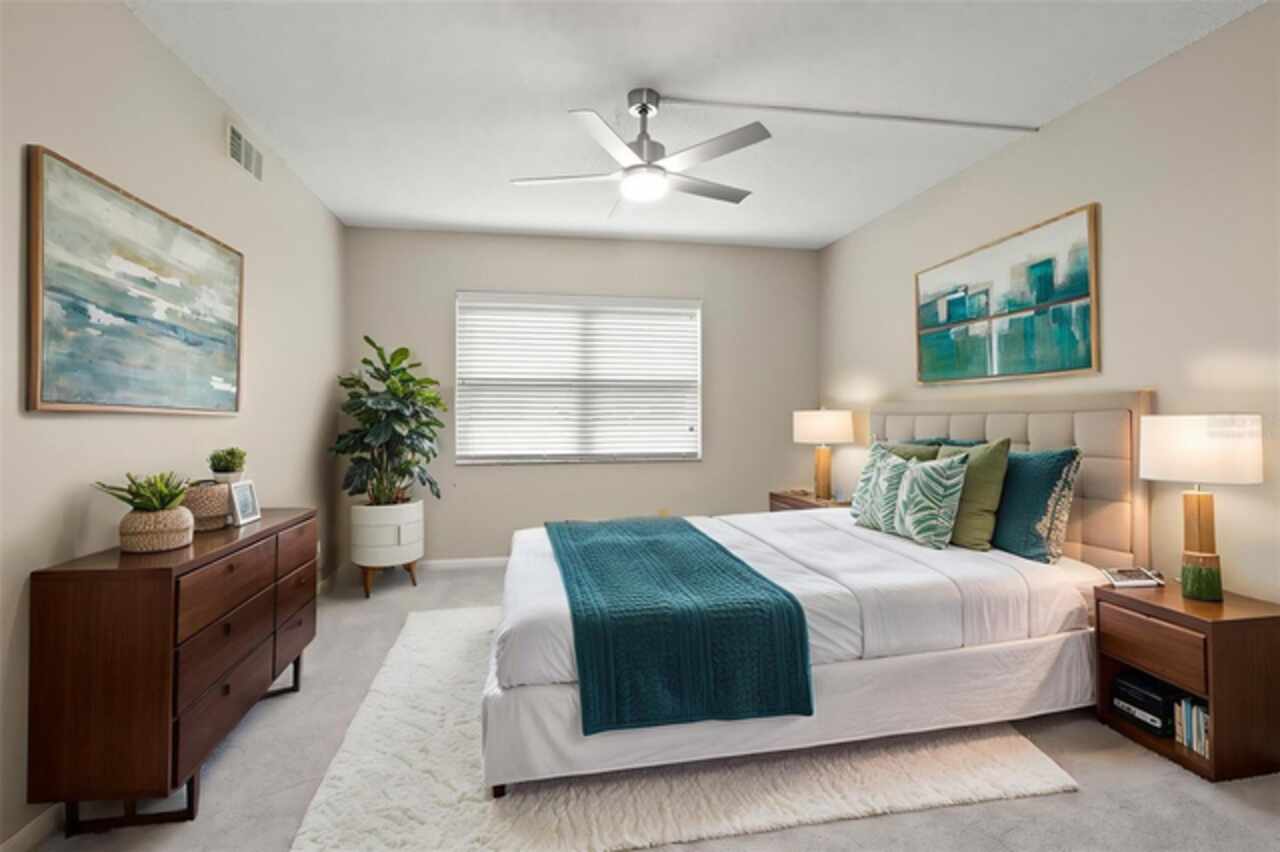 One or more photo(s) has been virtually staged. Located within the beautiful gated neighborhood of Placido Bayou, this ground-floor condo offers a rare blend of privacy, tranquility, and prime location. Surrounded by lush greenery, this two-bedroom, two-bath residence lives like a single-family home with all the low-maintenance perks of condo living. Step inside to a bright, open layout with a split floor plan, designed for both comfort and convenience. The spacious living area flows seamlessly into a large screened-in porch, your personal sanctuary to unwind or entertain while overlooking a private backyard and peaceful, tree-lined setting. The light-filled kitchen features abundant cabinetry and a dedicated laundry closet with in-unit washer and dryer. The expansive primary suite includes a walk-in closet and ensuite bath, while the second bedroom is ideally positioned across the condo with its own private bath, perfect for guests or a home office. Recently refreshed with new paint, flooring, and updated lighting, this well-maintained home is move-in ready, yet offers the opportunity to add your personal style. While conveniently located on the first floor, this condo has no history of flooding. Ample parking and resort-style amenities, including a heated community pool and spa, round out the offerings in this pet-friendly, nature-filled neighborhood. The guard gated community of Placido Bayou offers a paradise setting with picturesque lakes for fishing, scenic paths for running, and lush trees providing shade and tranquility. Conveniently located just minutes from downtown St. Petersburg’s vibrant waterfront, you’ll have easy access to an array of dining options, boutique shopping, world-class arts, cultural and sporting events. Beaches, airports, and golf courses are also just a short drive away, and the Racquet Club of St Petersburg is at the entry of the neighborhood, where you can enjoy both pickle ball and tennis! Welcome home to your own piece of paradise!