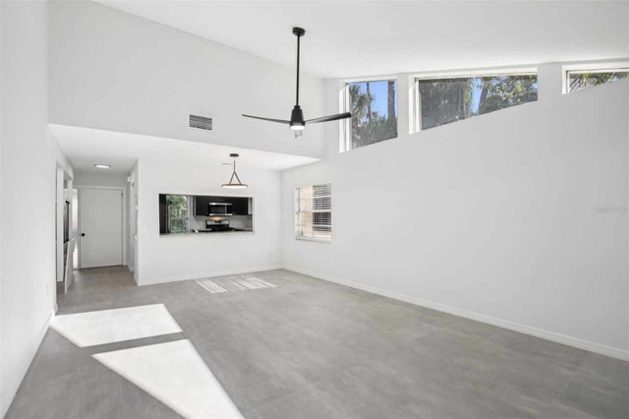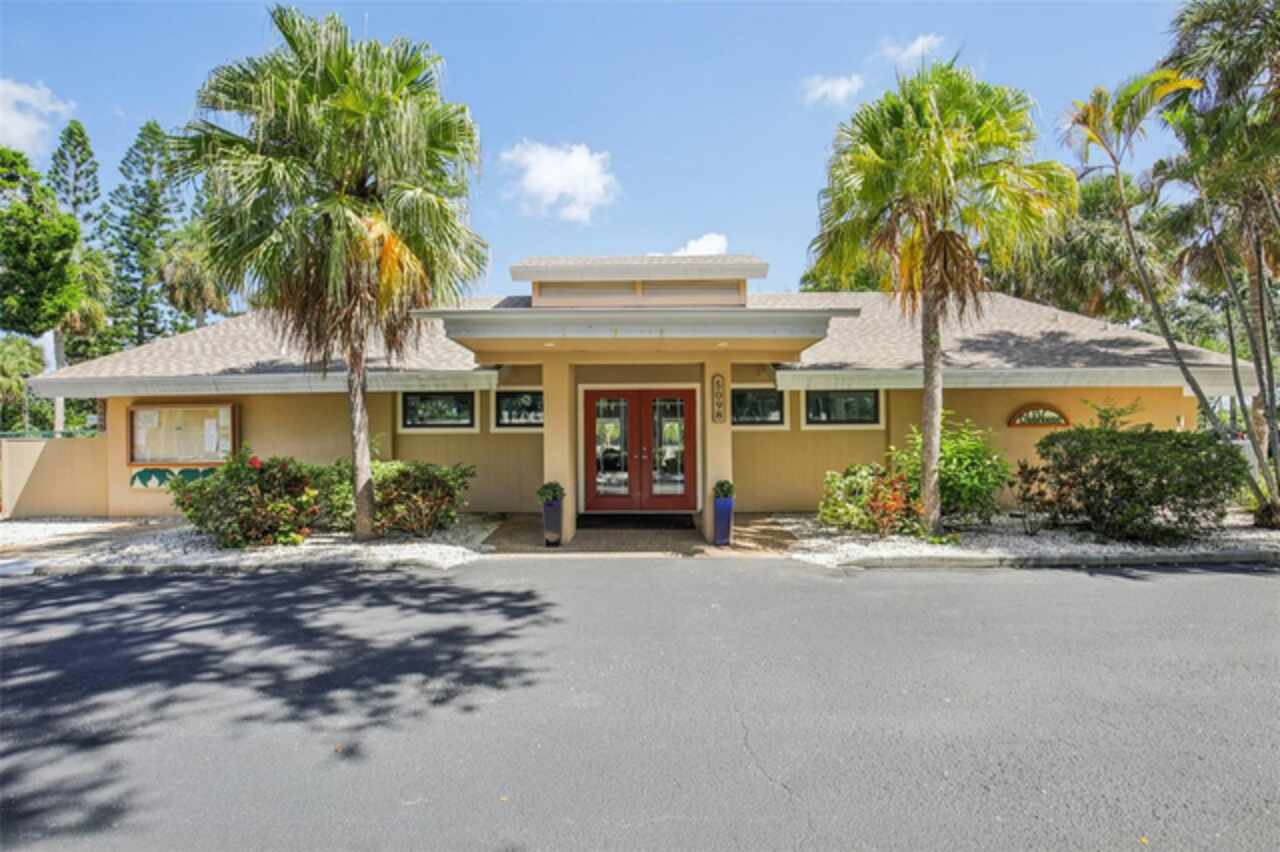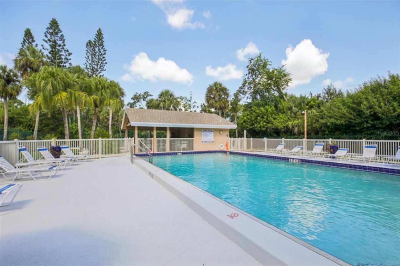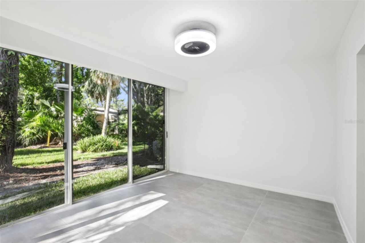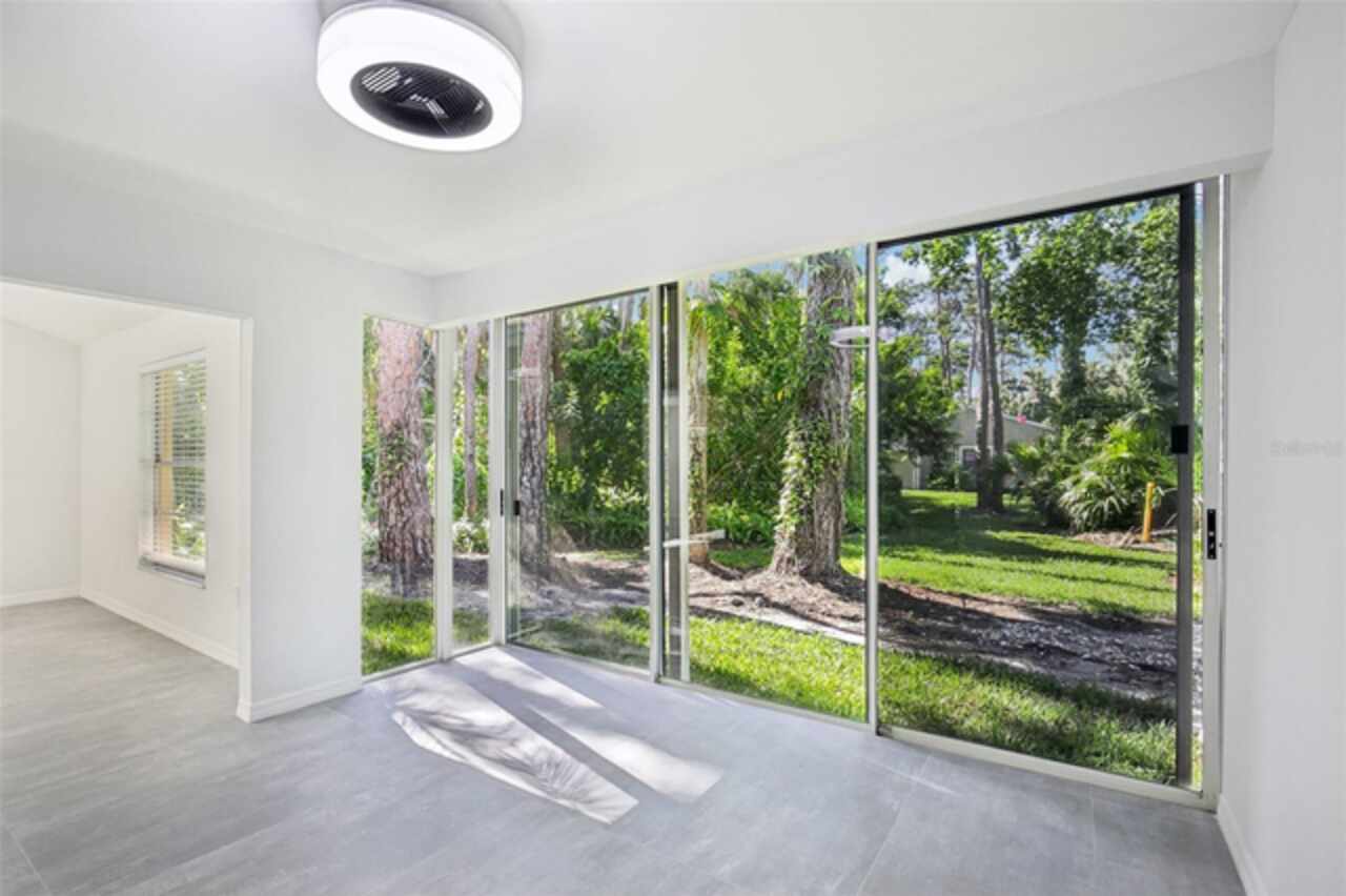 Under contract-accepting backup offers. NEW PRICE - EXCEPTIONAL VALUE - DON'T MISS OUT! Tucked away at the end of a quiet cul-de-sac, this tastefully refurbished two-story “Treetop” villa blends modern living with the natural beauty of Village Gardens. Newly painted in soft neutrals with sleek black accents, and surrounded by stately pines and lush landscaping, this home feels like a contemporary treehouse hidden in the heart of Sarasota. The first level offers a spacious kitchen with stainless steel appliances and breakfast bar, a bright living/dining room with soaring ceilings and clerestory windows, and an enclosed flex room overlooking peaceful gardens. A guest bedroom and renovated bathroom are conveniently located downstairs, creating a desirable split-bedroom layout. The internal laundry room with bonus under-stair storage adds everyday convenience. Upstairs, the dedicated owner’s suite features high ceilings, a huge walk-in closet, updated en-suite bath, and its own enclosed lanai with glass sliders—an ideal spot for morning coffee among the treetops. Extensive updates include new tile flooring throughout, fresh paint, new ceiling fans and lighting, updated bathroom vanities and mirrors, new fixtures and hardware, a new water heater, and a new double carport roof. Every detail has been thoughtfully selected for style, quality, and move-in-ready comfort. At Village Gardens, neighbors quickly become friends in a welcoming community offering a full array of amenities: heated pool, clubhouse, library, billiards, grill and ramada, tennis, pickleball, and shuffleboard courts, plus an onsite car wash station. This home will appeal to permanent residents, snowbirds and investors seeking long-term rentals. All just minutes from downtown Sarasota, world-class shopping, cultural attractions, and pristine Gulf beaches—this Treetop villa truly checks every box for your Florida lifestyle.