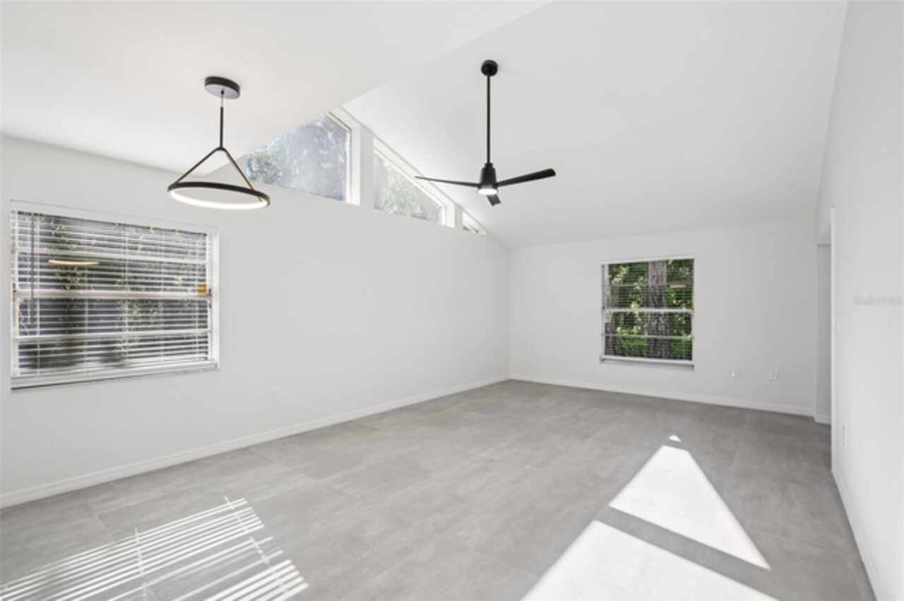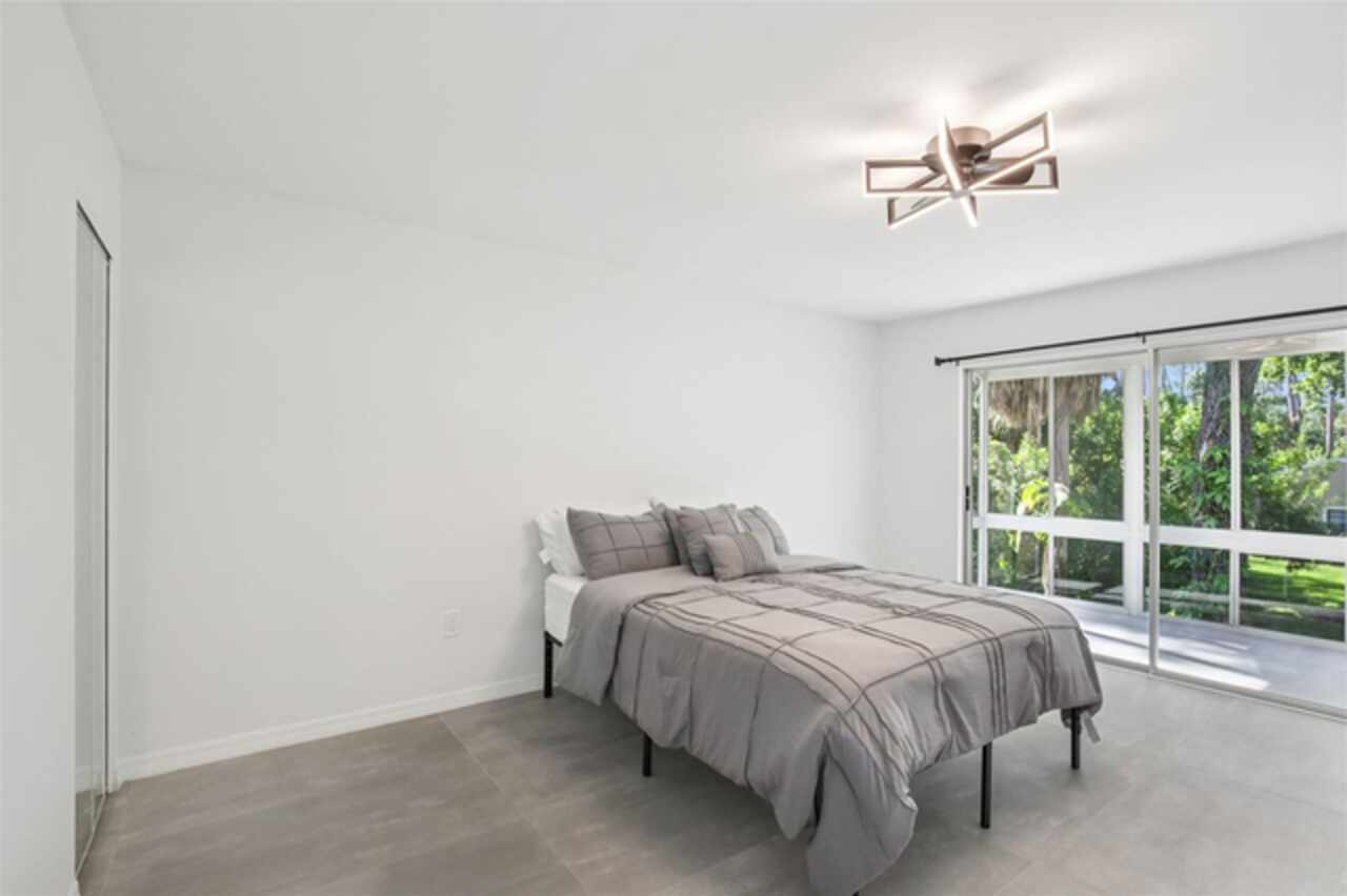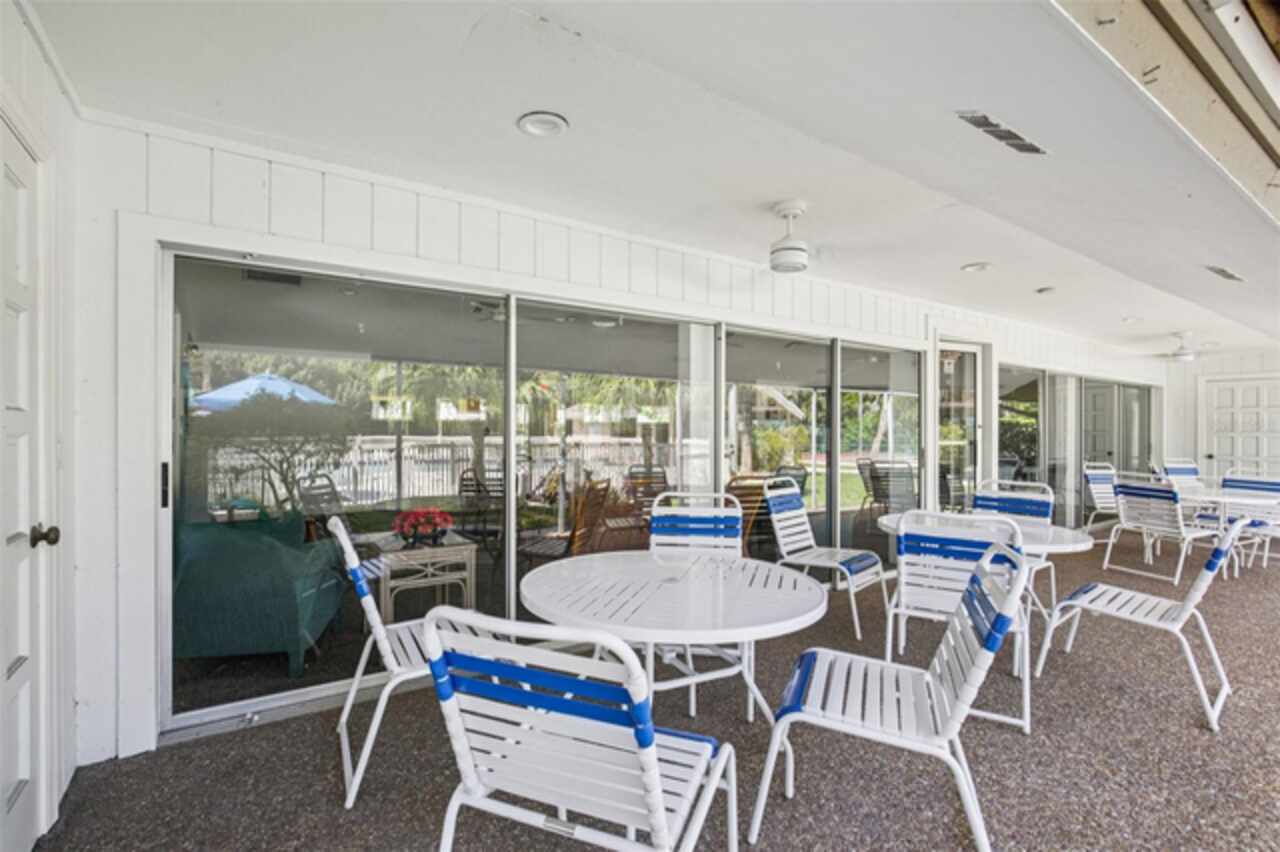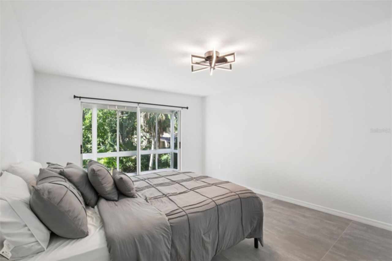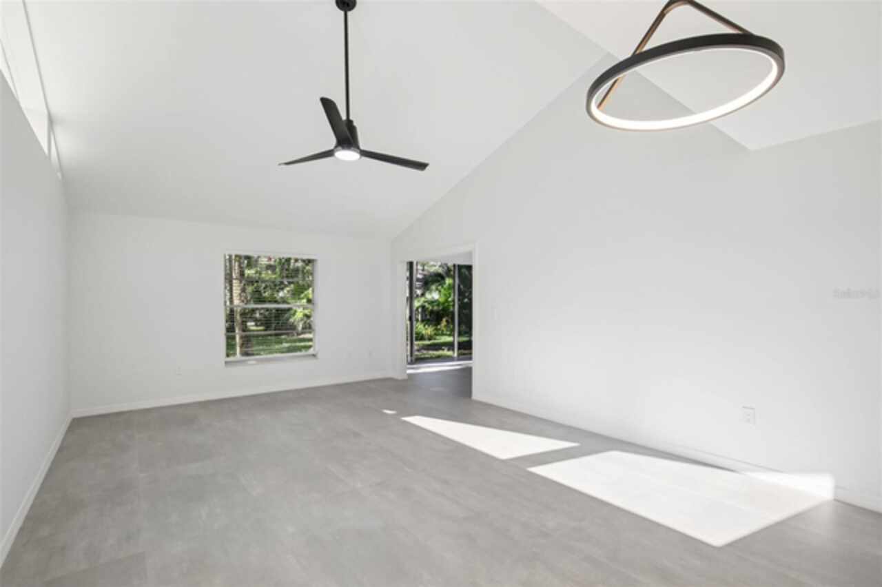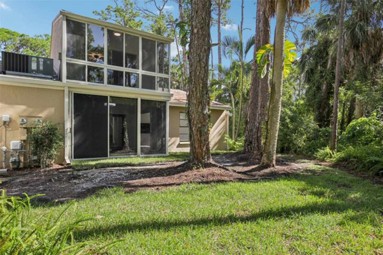 Under contract-accepting backup offers. NEW PRICE - EXCEPTIONAL VALUE - DON'T MISS OUT! Tucked away at the end of a quiet cul-de-sac, this tastefully refurbished two-story “Treetop” villa blends modern living with the natural beauty of Village Gardens. Newly painted in soft neutrals with sleek black accents, and surrounded by stately pines and lush landscaping, this home feels like a contemporary treehouse hidden in the heart of Sarasota. The first level offers a spacious kitchen with stainless steel appliances and breakfast bar, a bright living/dining room with soaring ceilings and clerestory windows, and an enclosed flex room overlooking peaceful gardens. A guest bedroom and renovated bathroom are conveniently located downstairs, creating a desirable split-bedroom layout. The internal laundry room with bonus under-stair storage adds everyday convenience. Upstairs, the dedicated owner’s suite features high ceilings, a huge walk-in closet, updated en-suite bath, and its own enclosed lanai with glass sliders—an ideal spot for morning coffee among the treetops. Extensive updates include new tile flooring throughout, fresh paint, new ceiling fans and lighting, updated bathroom vanities and mirrors, new fixtures and hardware, a new water heater, and a new double carport roof. Every detail has been thoughtfully selected for style, quality, and move-in-ready comfort. At Village Gardens, neighbors quickly become friends in a welcoming community offering a full array of amenities: heated pool, clubhouse, library, billiards, grill and ramada, tennis, pickleball, and shuffleboard courts, plus an onsite car wash station. This home will appeal to permanent residents, snowbirds and investors seeking long-term rentals. All just minutes from downtown Sarasota, world-class shopping, cultural attractions, and pristine Gulf beaches—this Treetop villa truly checks every box for your Florida lifestyle.