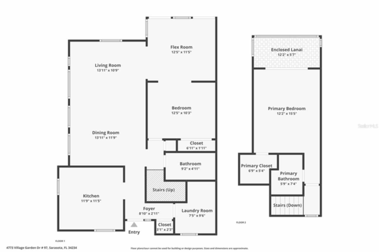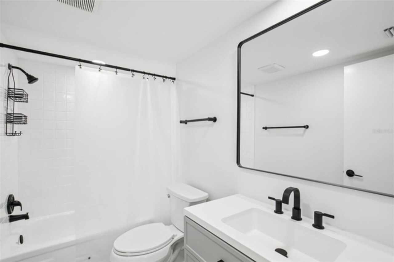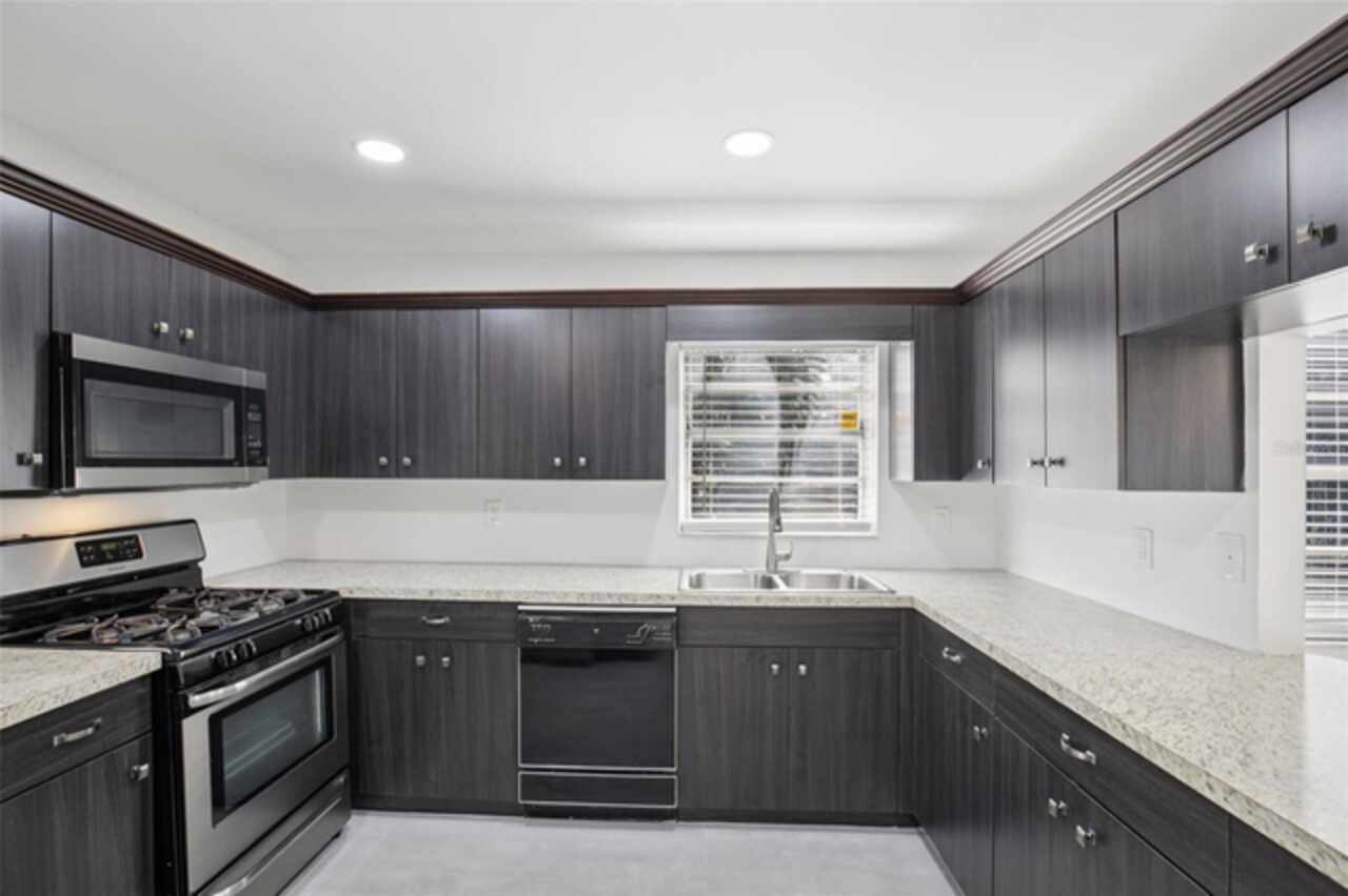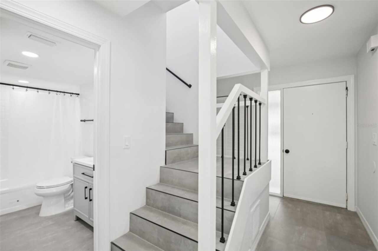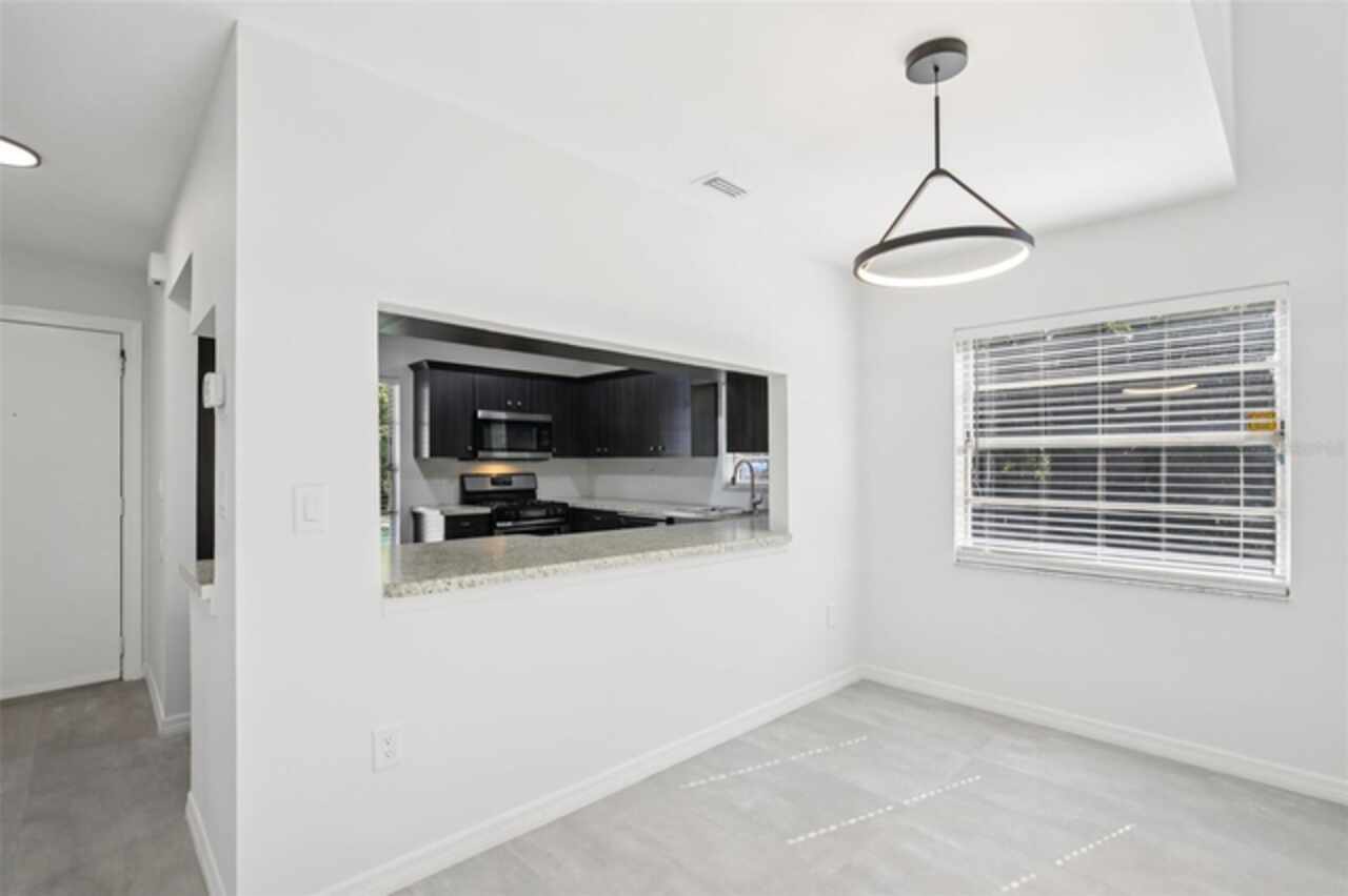 Under contract-accepting backup offers. NEW PRICE - EXCEPTIONAL VALUE - DON'T MISS OUT! Tucked away at the end of a quiet cul-de-sac, this tastefully refurbished two-story “Treetop” villa blends modern living with the natural beauty of Village Gardens. Newly painted in soft neutrals with sleek black accents, and surrounded by stately pines and lush landscaping, this home feels like a contemporary treehouse hidden in the heart of Sarasota. The first level offers a spacious kitchen with stainless steel appliances and breakfast bar, a bright living/dining room with soaring ceilings and clerestory windows, and an enclosed flex room overlooking peaceful gardens. A guest bedroom and renovated bathroom are conveniently located downstairs, creating a desirable split-bedroom layout. The internal laundry room with bonus under-stair storage adds everyday convenience. Upstairs, the dedicated owner’s suite features high ceilings, a huge walk-in closet, updated en-suite bath, and its own enclosed lanai with glass sliders—an ideal spot for morning coffee among the treetops. Extensive updates include new tile flooring throughout, fresh paint, new ceiling fans and lighting, updated bathroom vanities and mirrors, new fixtures and hardware, a new water heater, and a new double carport roof. Every detail has been thoughtfully selected for style, quality, and move-in-ready comfort. At Village Gardens, neighbors quickly become friends in a welcoming community offering a full array of amenities: heated pool, clubhouse, library, billiards, grill and ramada, tennis, pickleball, and shuffleboard courts, plus an onsite car wash station. This home will appeal to permanent residents, snowbirds and investors seeking long-term rentals. All just minutes from downtown Sarasota, world-class shopping, cultural attractions, and pristine Gulf beaches—this Treetop villa truly checks every box for your Florida lifestyle.