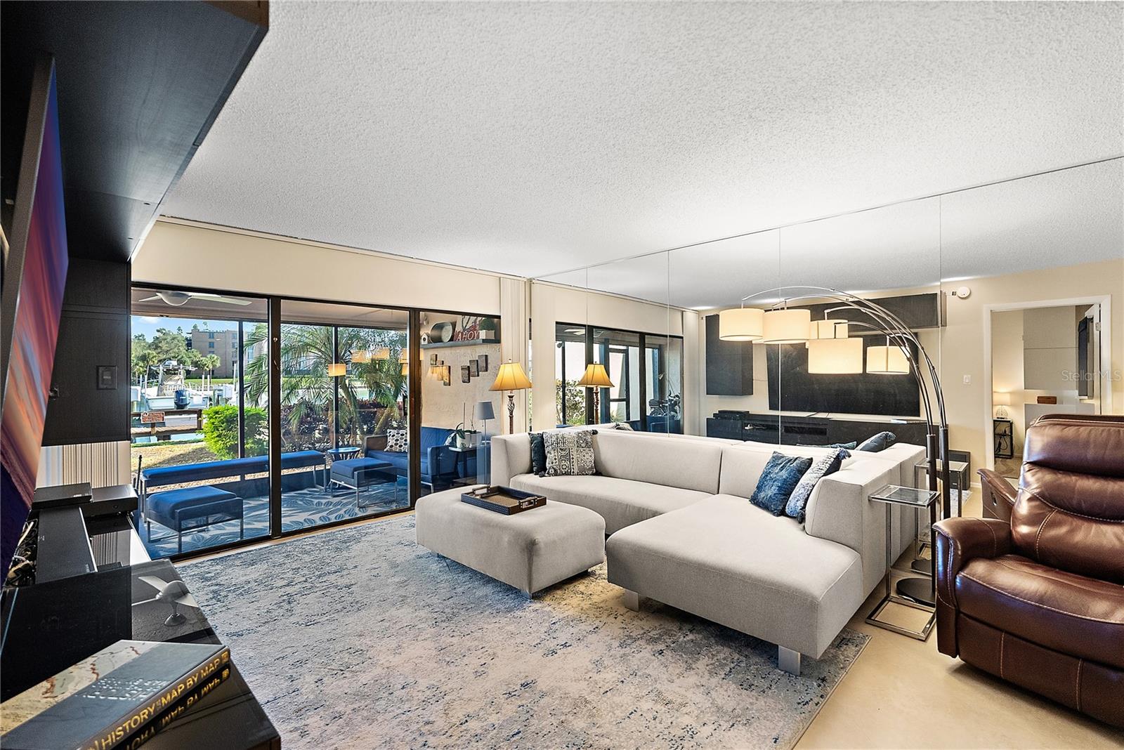 Every day feels like a vacation in this furnished, turnkey waterfront retreat. From the moment you step inside this two-bedroom, two-bath residence, you’re greeted by soft natural light pouring in from both the east and west, reflecting off the water and filling the home with a warm coastal glow. Thoughtfully designed for easy living, the condo features sleek porcelain tile throughout, custom built-ins in every room, and a side-by-side washer and dryer tucked neatly into a closet. A tankless water heater helps keep things efficient and endless, while hurricane shutters on all windows add a layer of comfort and confidence, whether you’re here full-time or enjoying it as a lock-and-leave getaway. Best of all, it’s being sold fully furnished and truly turnkey—every piece already curated—so you can step straight into the waterfront lifestyle. Outside is truly magical. Sip your morning coffee watching the sun rise over the water, then unwind in the evening as the sky turns shades of pink and gold. The boat slip with a 13, 000-pound lift is included and is 30 feet in length, so spontaneous sunset cruises, dolphin sightings, and sandbar Sundays are always just a few steps away. The lifestyle extends all the way to the garage, where thoughtful touches make everyday living easier: an EV charger for your electric vehicle, plus bike and surfboard holders to keep your gear organized and ready for your next adventure. Set within a private, gated, non-55+ waterfront community, this residence offers the rare combination of security, serenity, and vibrant, all-ages coastal living. The access to downtown and the Gulf Beaches is quick, given the nearby interstate and Tampa International Airport is just a 25 minute drive. If you’ve been dreaming of an effortless place by the water—where your boat, your furniture, your toys, and your Florida lifestyle are all waiting for you—this is it!