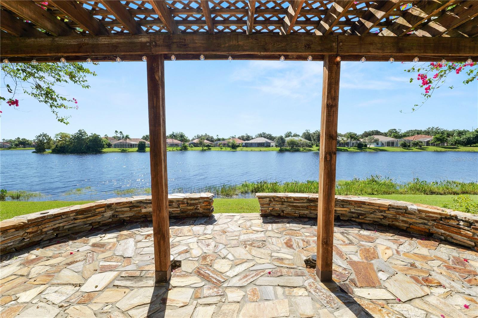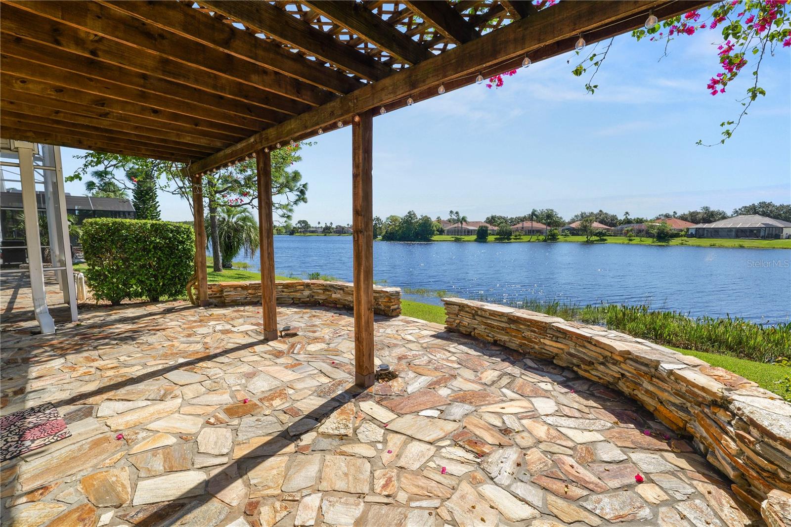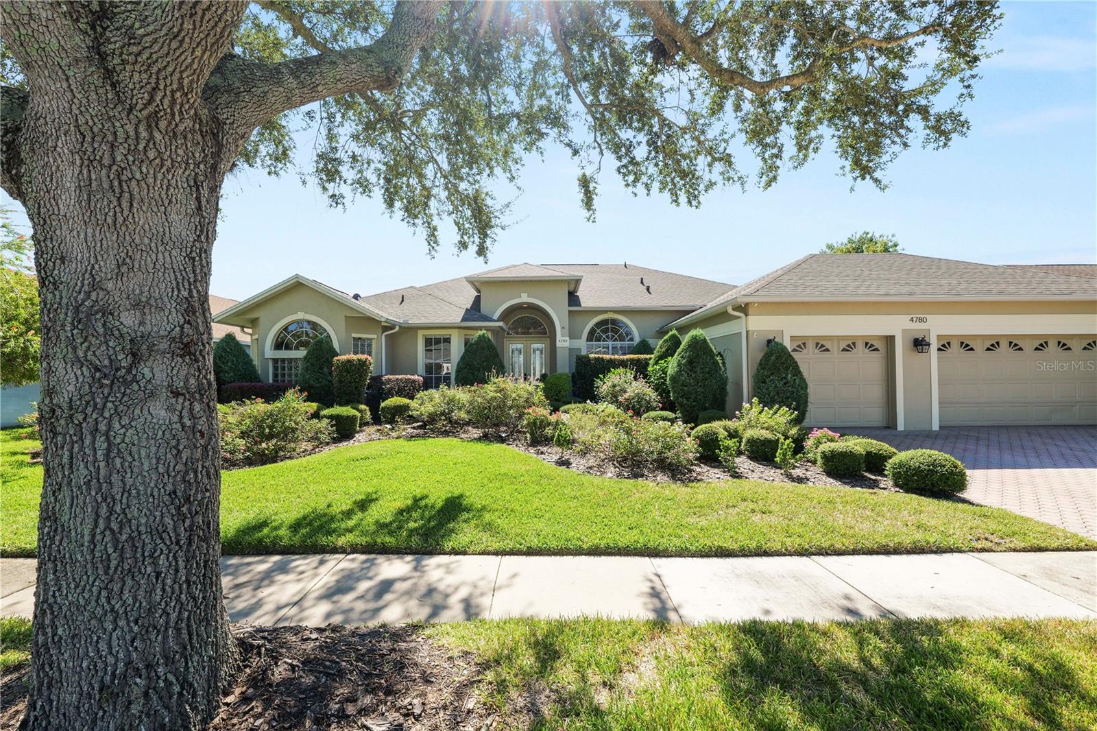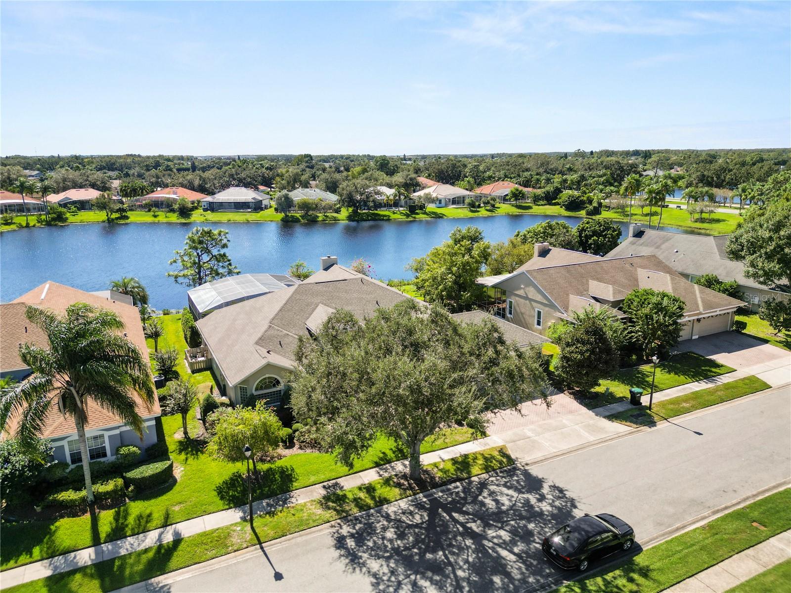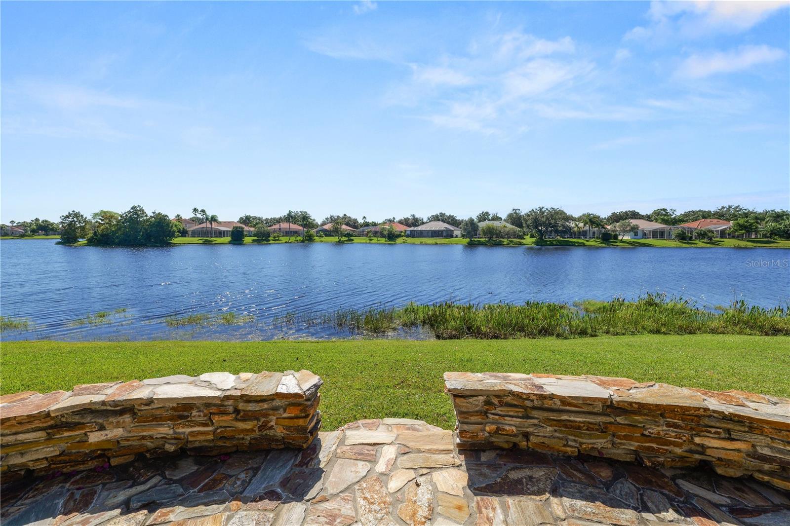 Under contract-accepting backup offers. This lakefront Calabay Cove property has manicured grounds with gorgeous flower gardens in the front and a sparkling pool overlooking the serene waters of Lake Calabay. The 4/5-bedroom home is just as beautiful inside, with tile/wood floors, high ceilings, crown molding and large windows – which let in lots of natural light & showcase the water views. French doors in master bedroom, living room, family room and game room give you easy access to the pool and pergola areas. Just off the foyer, you’ll find the 5th bedroom or use as a dedicated home office, formal living room with French doors accessing the pool area and a formal dining area. At the rear of the floorplan, the family room is open to the kitchen and includes a wood burning fireplace and custom built-ins. The kitchen features shaker cabinetry, granite countertops, pro-style appliances, a center island and a breakfast nook. Just steps away, the backyard oasis includes a covered patio for entertaining, plus a completely screened-in pool & spa surrounded by a stone deck. Outside the enclosure, the pergola-covered patio is lined by another garden and provides a great spot to admire the lake. The back wing of the house has a BONUS recreation/game room with a dry bar and access to the patio and pergola. The spa-like master ensuite includes custom tilework, a double vanity, a soaking tub and a separate shower. Two guest rooms down the hall share an updated Jack & Jill bathroom with all the same high-end finishes found throughout the rest of the home. The laundry room off the 3-car garage also has granite countertops and tons of storage. Calabay Cove is a gated community with easy access to schools, parks, trailheads and highways. Plus, The Loop shopping mall, Publix and numerous dining options are all just 5 minutes from your front door. Less than 20 minutes to the theme parks, 25 minutes to the airport and 1 hr to the beach! Enjoy the most breathtaking sunrise and sunset from the pool and pergola areas. This lovely home's roof was replaced 10/22. Third car garage converted into a workshop with wall-mounted A/C. Pool table in game room remains with the property. Custom designed dinette set with bench also remain.