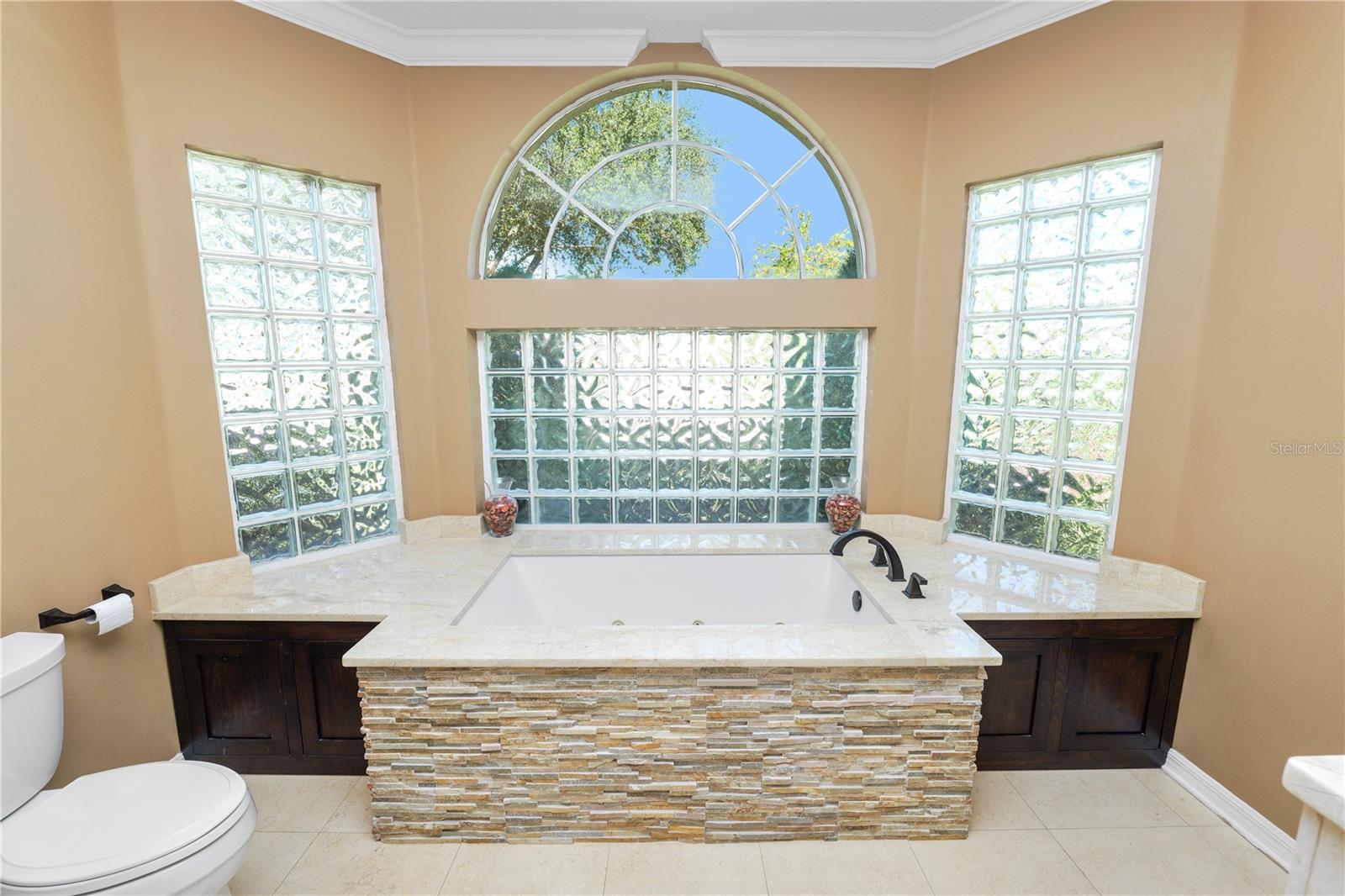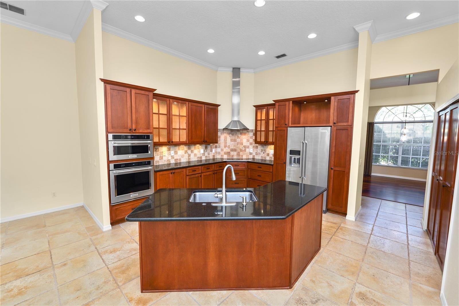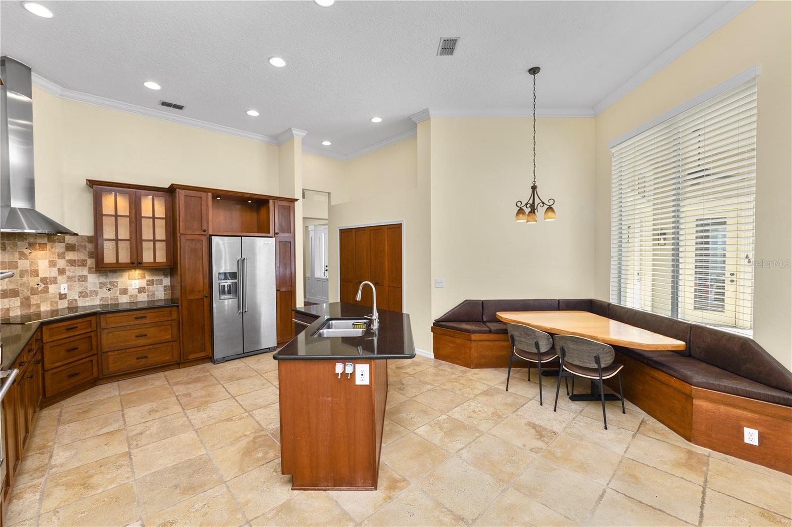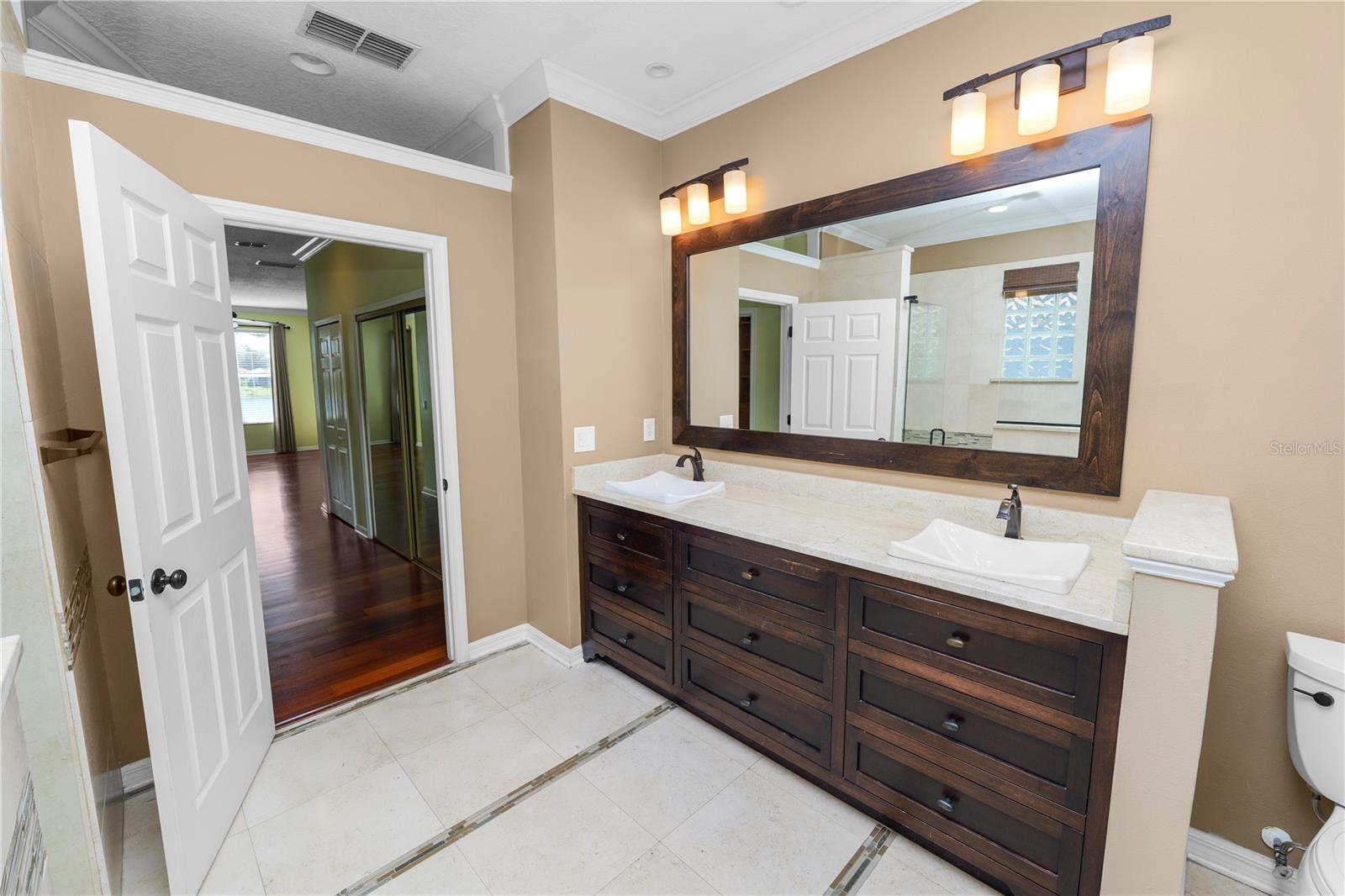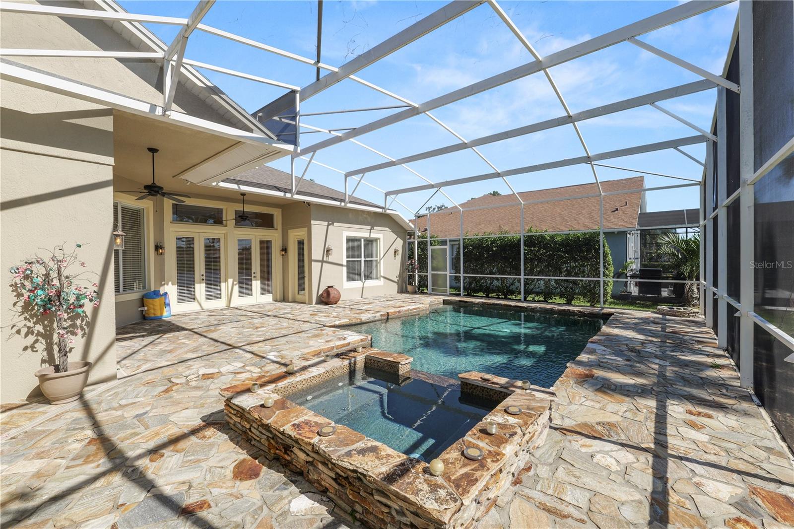 Under contract-accepting backup offers. This lakefront Calabay Cove property has manicured grounds with gorgeous flower gardens in the front and a sparkling pool overlooking the serene waters of Lake Calabay. The 4/5-bedroom home is just as beautiful inside, with tile/wood floors, high ceilings, crown molding and large windows – which let in lots of natural light & showcase the water views. French doors in master bedroom, living room, family room and game room give you easy access to the pool and pergola areas. Just off the foyer, you’ll find the 5th bedroom or use as a dedicated home office, formal living room with French doors accessing the pool area and a formal dining area. At the rear of the floorplan, the family room is open to the kitchen and includes a wood burning fireplace and custom built-ins. The kitchen features shaker cabinetry, granite countertops, pro-style appliances, a center island and a breakfast nook. Just steps away, the backyard oasis includes a covered patio for entertaining, plus a completely screened-in pool & spa surrounded by a stone deck. Outside the enclosure, the pergola-covered patio is lined by another garden and provides a great spot to admire the lake. The back wing of the house has a BONUS recreation/game room with a dry bar and access to the patio and pergola. The spa-like master ensuite includes custom tilework, a double vanity, a soaking tub and a separate shower. Two guest rooms down the hall share an updated Jack & Jill bathroom with all the same high-end finishes found throughout the rest of the home. The laundry room off the 3-car garage also has granite countertops and tons of storage. Calabay Cove is a gated community with easy access to schools, parks, trailheads and highways. Plus, The Loop shopping mall, Publix and numerous dining options are all just 5 minutes from your front door. Less than 20 minutes to the theme parks, 25 minutes to the airport and 1 hr to the beach! Enjoy the most breathtaking sunrise and sunset from the pool and pergola areas. This lovely home's roof was replaced 10/22. Third car garage converted into a workshop with wall-mounted A/C. Pool table in game room remains with the property. Custom designed dinette set with bench also remain.