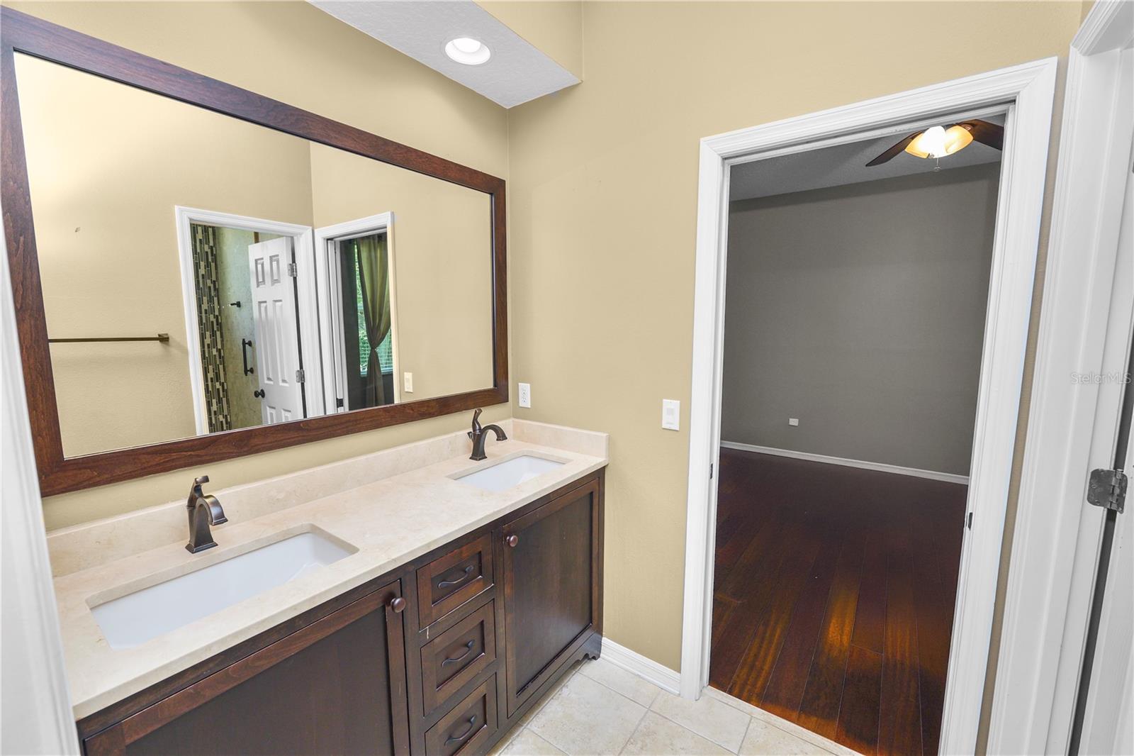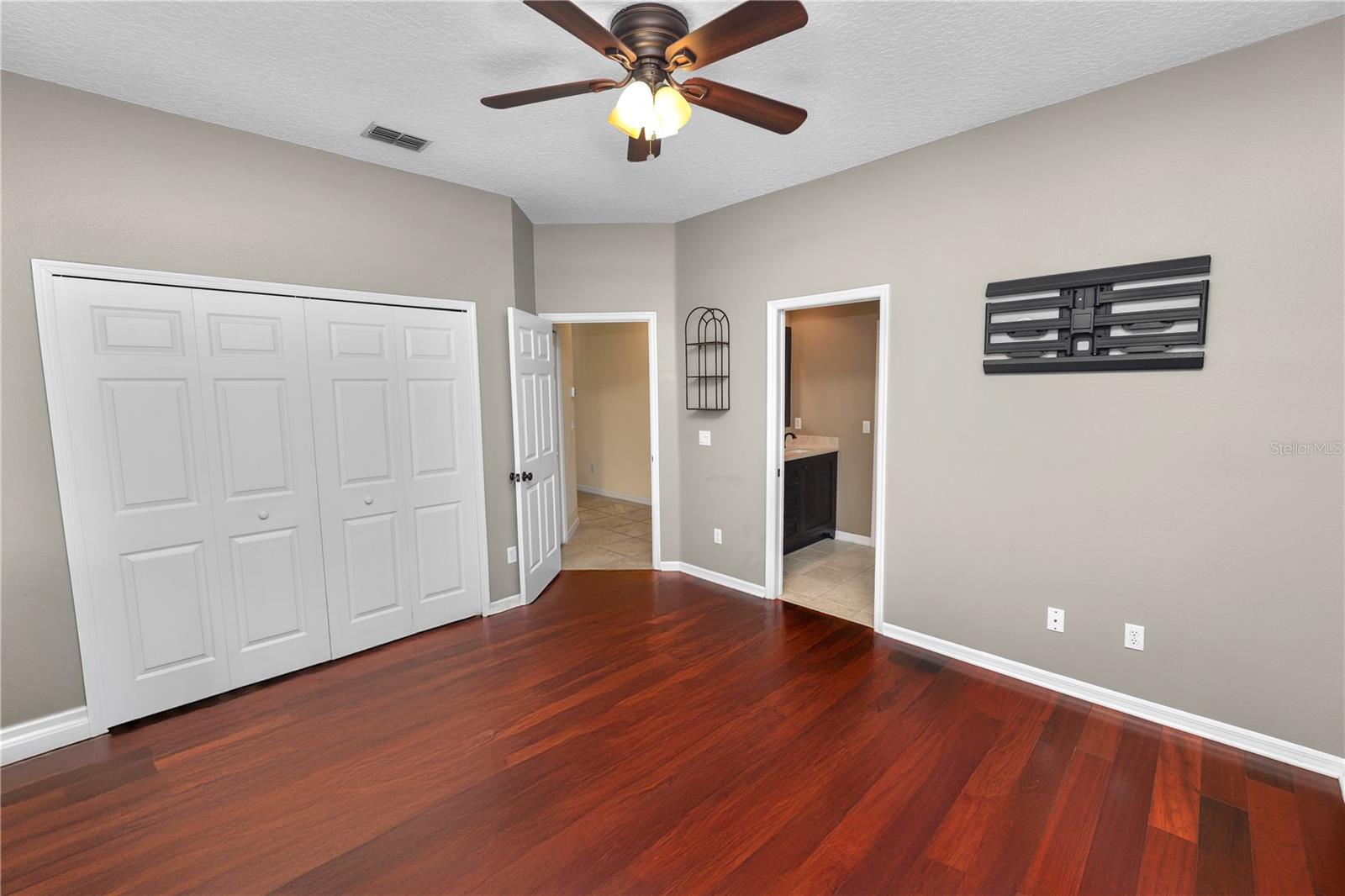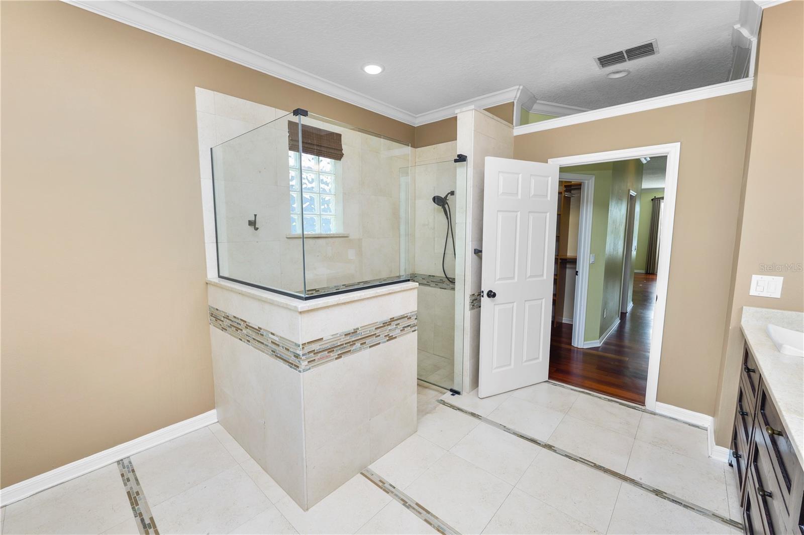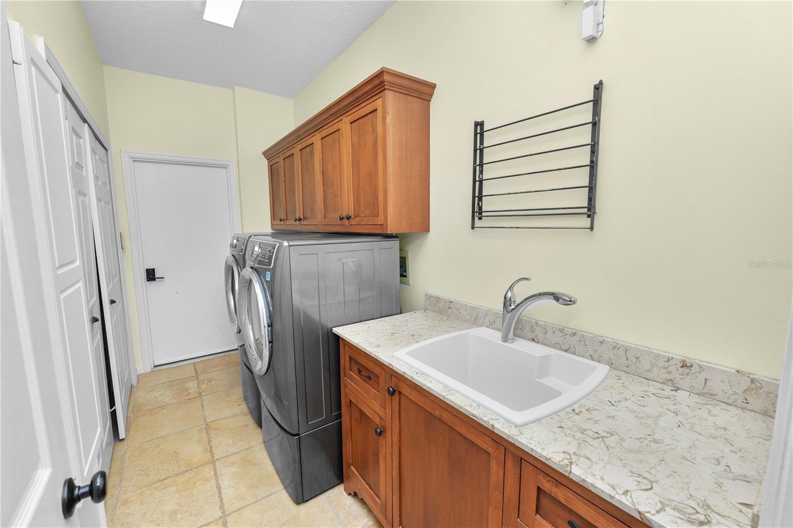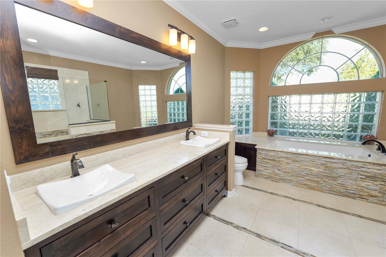 Under contract-accepting backup offers. This lakefront Calabay Cove property has manicured grounds with gorgeous flower gardens in the front and a sparkling pool overlooking the serene waters of Lake Calabay. The 4/5-bedroom home is just as beautiful inside, with tile/wood floors, high ceilings, crown molding and large windows – which let in lots of natural light & showcase the water views. French doors in master bedroom, living room, family room and game room give you easy access to the pool and pergola areas. Just off the foyer, you’ll find the 5th bedroom or use as a dedicated home office, formal living room with French doors accessing the pool area and a formal dining area. At the rear of the floorplan, the family room is open to the kitchen and includes a wood burning fireplace and custom built-ins. The kitchen features shaker cabinetry, granite countertops, pro-style appliances, a center island and a breakfast nook. Just steps away, the backyard oasis includes a covered patio for entertaining, plus a completely screened-in pool & spa surrounded by a stone deck. Outside the enclosure, the pergola-covered patio is lined by another garden and provides a great spot to admire the lake. The back wing of the house has a BONUS recreation/game room with a dry bar and access to the patio and pergola. The spa-like master ensuite includes custom tilework, a double vanity, a soaking tub and a separate shower. Two guest rooms down the hall share an updated Jack & Jill bathroom with all the same high-end finishes found throughout the rest of the home. The laundry room off the 3-car garage also has granite countertops and tons of storage. Calabay Cove is a gated community with easy access to schools, parks, trailheads and highways. Plus, The Loop shopping mall, Publix and numerous dining options are all just 5 minutes from your front door. Less than 20 minutes to the theme parks, 25 minutes to the airport and 1 hr to the beach! Enjoy the most breathtaking sunrise and sunset from the pool and pergola areas. This lovely home's roof was replaced 10/22. Third car garage converted into a workshop with wall-mounted A/C. Pool table in game room remains with the property. Custom designed dinette set with bench also remain.