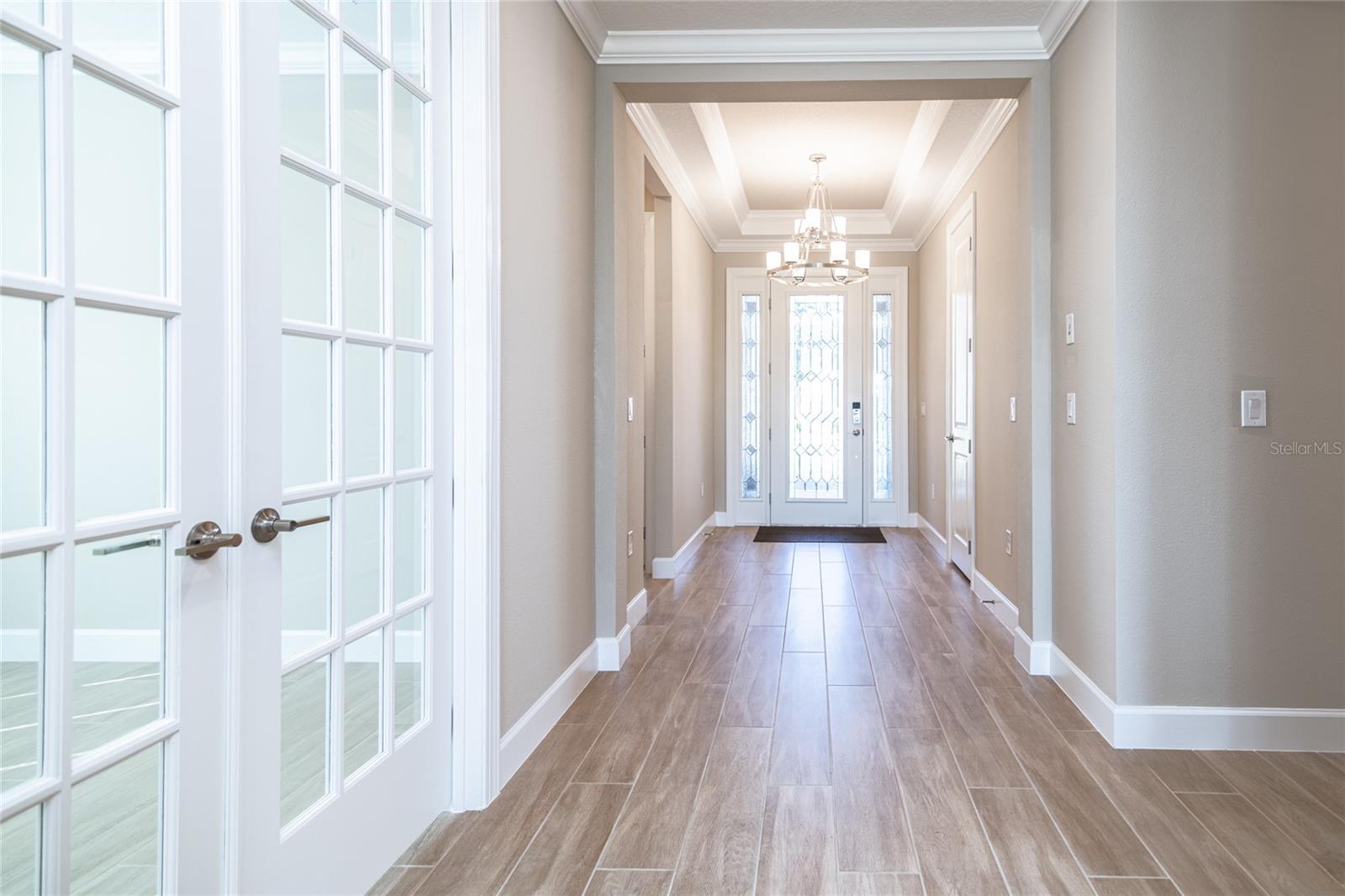 One or more photo(s) has been virtually staged. Want resort style living in a 55+ community but don’t want to wait to build?... Welcome home to this stunning 3-bedroom, 3-full bath home with office in Esplanade at Wiregrass Ranch. This home was completed in 2024 by Taylor Morrison, one of America’s most trusted home builders. Enjoy upgrades that provide functionality, style and comfort in this popular Lazio floor plan such as durable wood-look tile flooring, OVERSIZED KITCHEN ISLAND with STORAGE ON BOTH SIDES, soft-close cabinets, under cabinet lighting, crown molding throughout, tray ceilings, stainless steel appliances, CULLIIGAN WATER SOFTENING SYSTEM W/ DUAL TANKS, 2 UV LIGHT HVAC, dampers on all AC vents to control air flow, LARGER MASTER CLOSET, 8’ LONG SHOWER with multiple spray heads, upgraded bay window expansion in master bedroom and guest room, plus a $25, 000 OUTDOOR KITCHEN FIT WITH GRILL, SINK AND REFRIGERATOR. The large 3-CAR GARAGE leaves plenty of space for a golf cart. This home is located in an established part of Esplanade with minimal to no construction around. The spacious 62ft lot is on a cul-de-sac backing up to HOA conservation area with plenty of room for a pool. Enjoy low-maintenance living with services that include lawn care, reclaimed water, cable/internet and trash pick-up. You will feel you are always on vacation with the stunning resort-style pool and spa, 24/7 gym, tennis, pickleball and bocce ball courts billiard/card room, spa, concierge services for travel and pets, curated activities such as wine tastings and culinary events and plenty of clubs to join to bring neighbors together. Esplanade at Wiregrass is close to top hospitals and medical facilities, the Shops of Wiregrass, Premium Outlets and restaurants. Less than hour commute to the Tampa International airport, this home and community offer a lifestyle of convenience, flexibility and luxury.