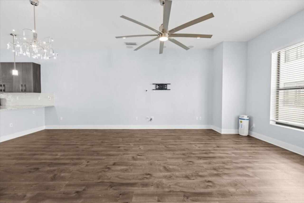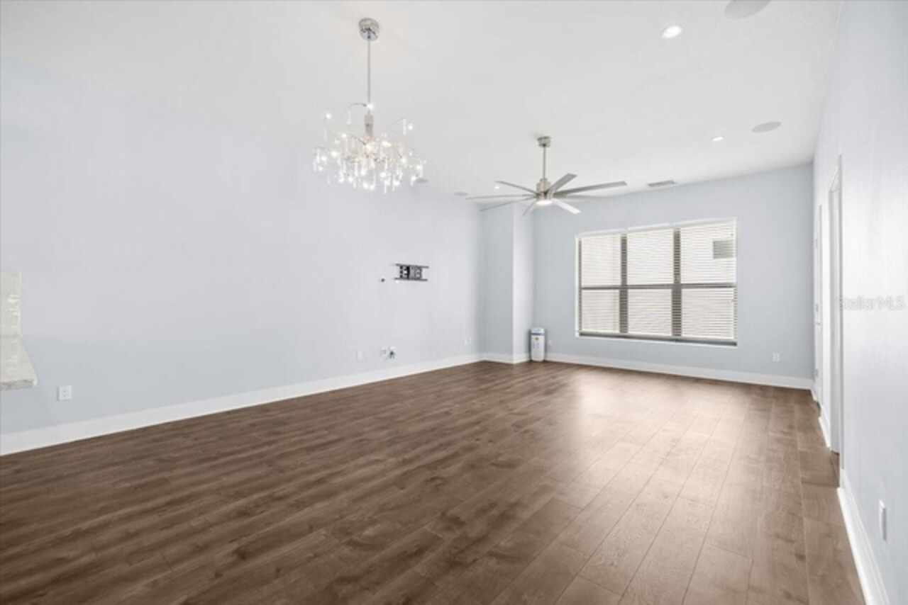 Ceiling Fans(s), Eat-in Kitchen, High Ceilings, Kitchen/Family Room Combo, Living Room/Dining Room Combo, Open Floorplan, PrimaryBedroom Upstairs, Solid Wood Cabinets, Split Bedroom, Stone Counters, Thermostat, Walk-In Closet(s), Window Treatments