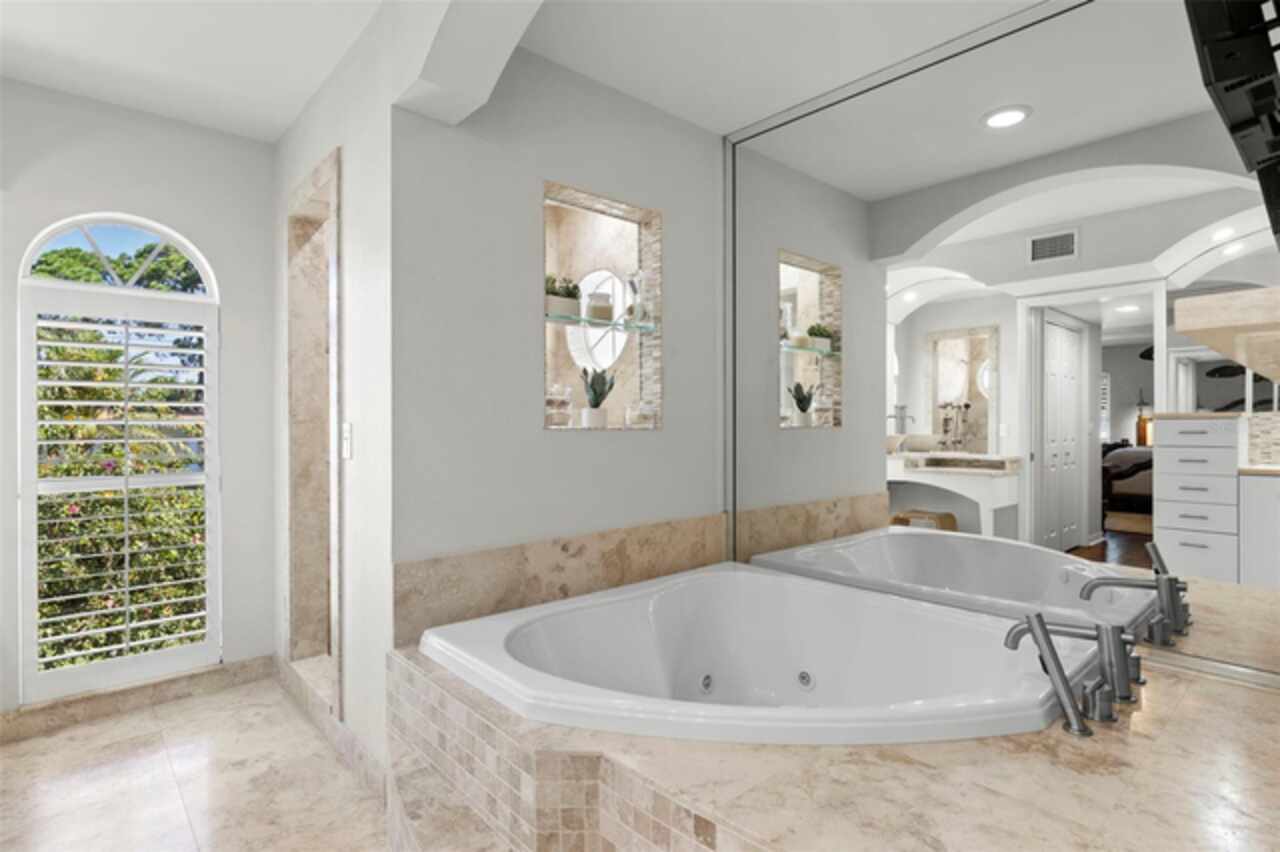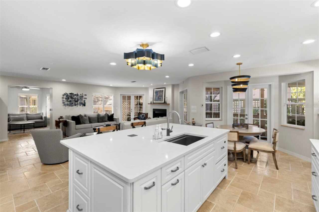 Experience Sunset Park living in this ELEVATED, thoughtfully designed home with NO flooding history! This stunning 3 bedroom, 2.5 bathroom home spans 2, 492 sq. ft., with a den and oversized two-car garage, showcasing luxury upgrades and storm-ready construction for both elegance and peace of mind. As you arrive, the home greets you with impressive curb appeal, beautifully landscaped grounds with an irrigation system, and a long driveway offering ample parking. A gated entryway leads to the front door, where clay tile flooring introduces the home’s refined interior. Inside, vaulted ceilings and an open floor plan separate the living areas from the bedrooms. The living room features travertine stone floors and a wood-burning fireplace, creating a warm and inviting centerpiece. The chef’s kitchen is a showpiece, complete with a built-in paneled refrigerator with separate ice drawer, KitchenAid gas range, convection oven, warming drawer, microwave convection oven, two Fisher & Paykel dishwashers, prep sink, wine cooler, marble backsplash, quartz countertops, and an eat-in area, perfect for entertaining or everyday living. Adjacent is a versatile office/den ideal for work-from-home or study. The first-floor primary suite offers a spa-like retreat with a jetted tub, double vanities, and two walk-in closets. Upstairs, two additional bedrooms share a beautifully remodeled full bathroom. Practical features include a spacious laundry room with abundant storage, a security system with Ring cameras and floodlights, and an irrigation system for effortless maintenance. Outdoors, the private backyard is designed for year-round enjoyment. French doors open to a covered porch with a mosquito misting system, overlooking a resurfaced Chicago brick pool with a built-in bench. Juliet balconies, a gated fence for privacy, and ample space for seating and relaxation complete this outdoor oasis. The oversized two-car garage offers ample storage and convenience. With meticulous updates and storm-ready construction throughout, this home delivers unparalleled comfort, luxury, and security. Located in the heart of Sunset Park, one of the most desired neighborhoods of South Tampa, this home is just minutes to the Selmon Expressway, less than a 10-minute drive to both the Gandy and Courtney Campbell Bridges, under 13 minutes to Downtown Tampa, less than 10 minutes to Tampa International Airport, and minutes from the city’s finest dining, shopping, and entertainment options. Enjoy the combination of prime location, a spacious and beautifully upgraded home, and elevated living with no past flooding! This is it. Schedule your private tour today!