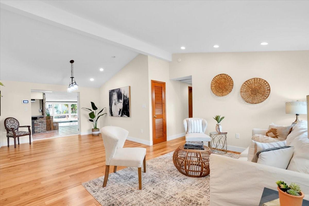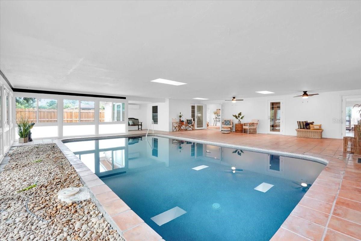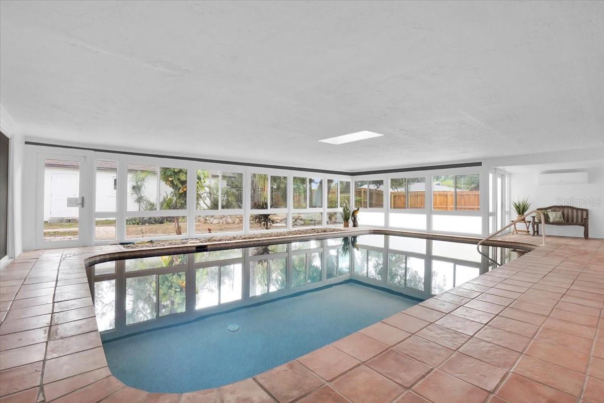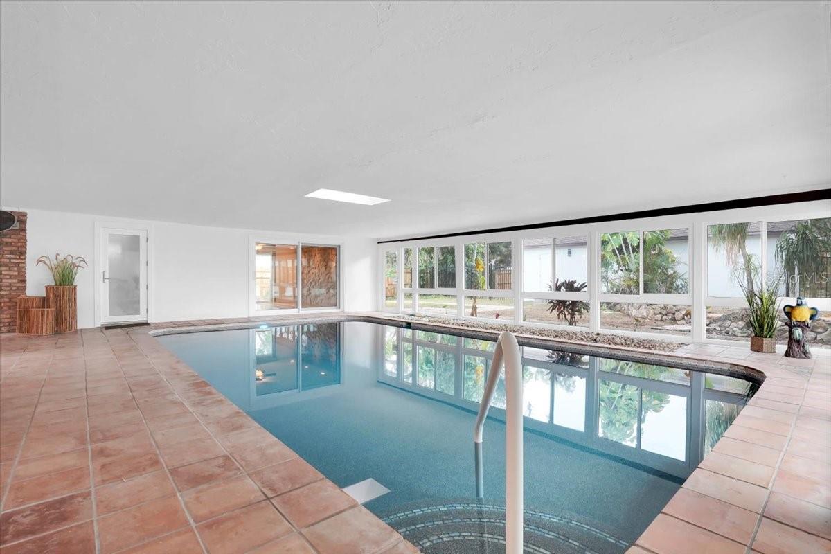 Don't miss the first unveiling of this home Saturday 1-4 before it is featured on TV. A rare find in west Bradenton, this re-imagined Tropical Highlands residence combines modern comfort, unexpected versatility, and a Florida lifestyle you simply won’t find anywhere else. Set on an oversized corner lot with no HOA and no flood zone, the property has been transformed with extensive upgrades—including impact windows and doors, a new roof, new electrical panel, relined plumbing, new bamboo flooring, new gutters and soffits, fresh fixtures, and a new mini-split AC that fully conditions the home’s standout feature: an expansive heated indoor pool wrapped in windows and designed for year-round enjoyment. Inside, a thoughtful split floor plan offers two private primary suites, each with walk-in closets and direct access to the pool room. One primary suite includes an additional private flex room—ideal for a home office, vanity room or nursery. The second suite showcases a beautiful natural-stone accent wall. A third bedroom—with terracotta flooring, a generous walk-in closet, and a charming window-seat nook with built-in storage—adds even more flexibility for guests or creative use. The kitchen provides abundant cabinetry and prep space, flowing easily into bright living areas finished with plantation shutters and warm bamboo floors. Every space feels refreshingly open, clean, and move-in ready. Outdoors, the fully fenced property includes a remote-controlled gate, mature oaks, fresh paver walkways, and an oversized tandem-depth garage that accommodates up to four vehicles or invites future workshop/hobby possibilities. All of this is set in one of Bradenton’s most convenient pockets—walking distance to GT Bray Park and Bradenton Country Club, minutes to IMG Academy, and a short drive to the world-class beaches of Anna Maria Island. A West Bradenton opportunity unlike anything else on the market—modernized, versatile, and ready for its next chapter. Homes with this level of renovation and versatility rarely come to market—schedule your private showing and experience the lifestyle this property offers firsthand.