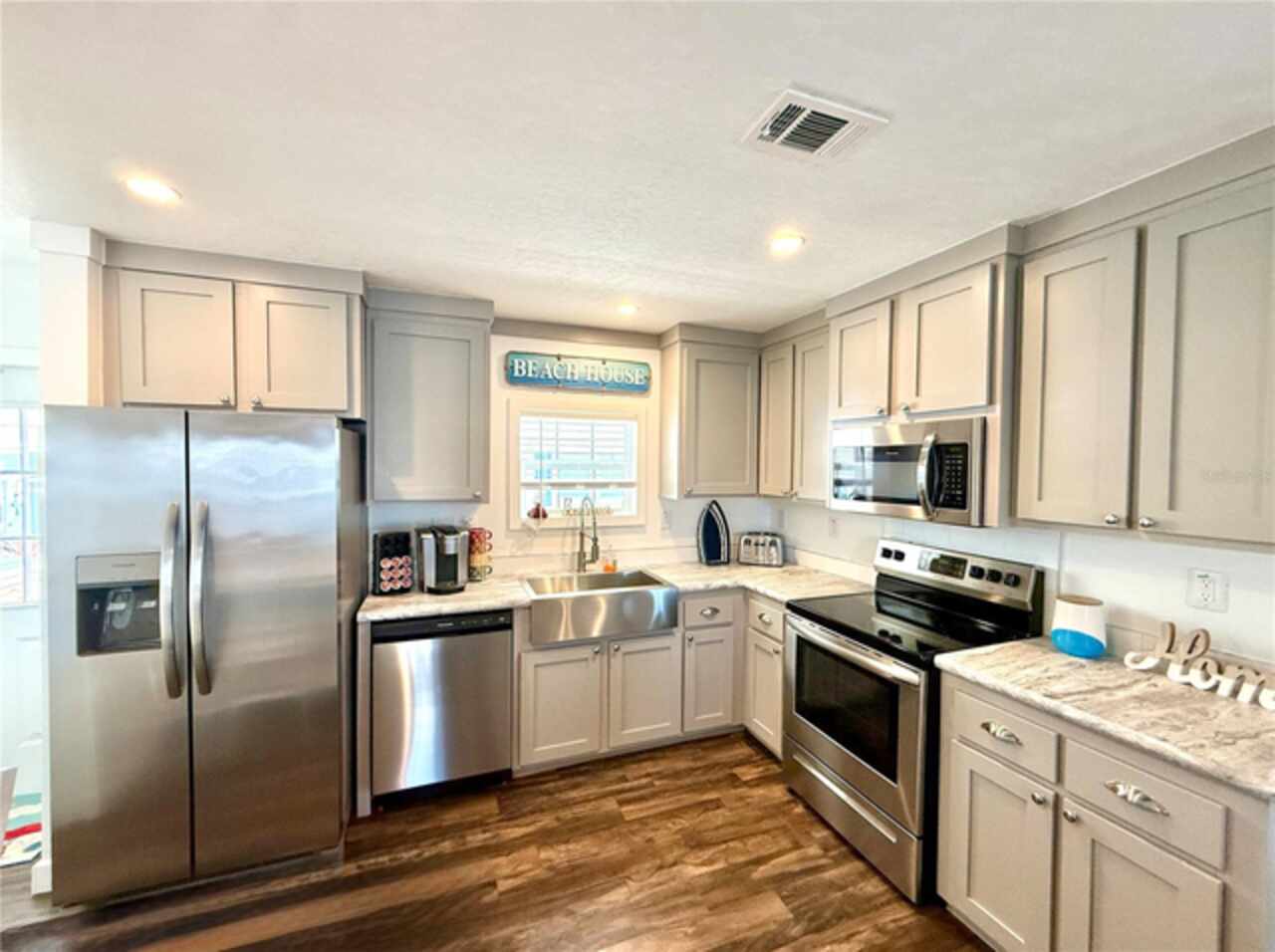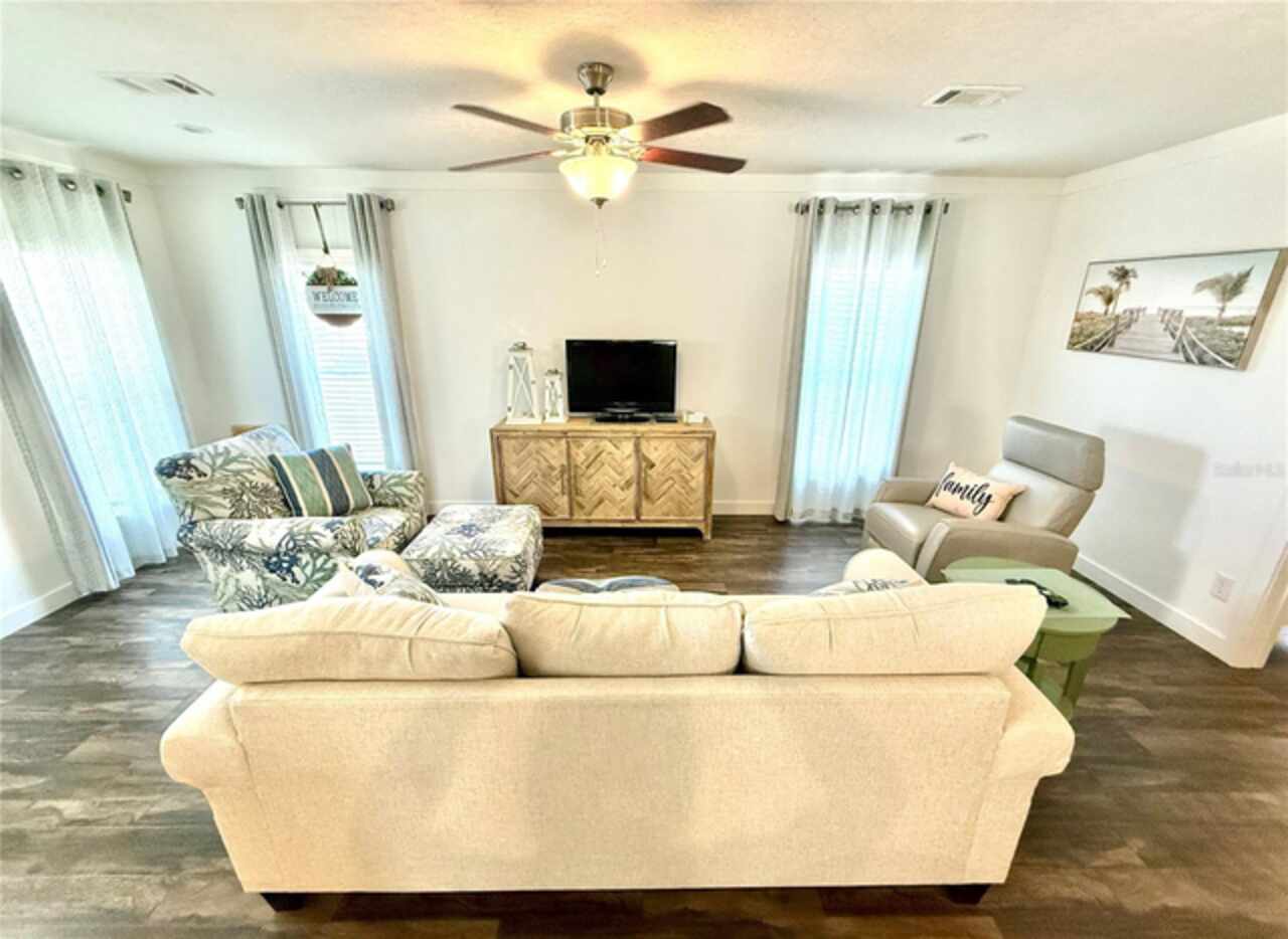 Experience effortless living in this newly constructed 2023 modular home, where every detail has been thoughtfully designed for comfort and style. The expansive, sun-filled floor plan creates a welcoming atmosphere, leading you through two generously sized bedrooms and two contemporary baths. The heart of the home, the kitchen, is a chef's delight, boasting a full suite of sleek, stainless steel appliances and a farmhouse-style sink that adds a touch of rustic elegance. Below your feet, beautiful luxury vinyl plank flooring flows seamlessly throughout the entire residence, unifying the space. With modern recessed LED lighting already installed and tasteful blinds and curtains adorning every window, this home is completely ready for you to move in and begin your new chapter. This beautiful property is located in a one-of-a-kind community—a true hidden gem. It's a haven for enthusiasts, welcoming both golf carts and motorcycles, and providing the convenience of optional on-site storage for RVs and boats. Your new lifestyle includes resort-style amenities that cater to every interest: A sprawling, heated swimming pool and spa for year-round relaxation. A dedicated Tiki Hut for sunny afternoons with neighbors. A modern fitness center, along with courts for pickleball and shuffleboard, and a miniature golf course for friendly competition. Indoor recreation is plentiful, with a dedicated area for billiards and ping-pong. Nurture your creative side in the arts and crafts room, which hosts activities like sewing, painting, and card games. The community’s spacious clubhouse is the vibrant social hub, hosting a calendar full of lively dinners, dances, and other special events.