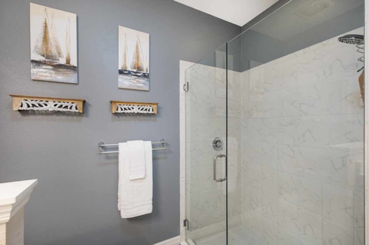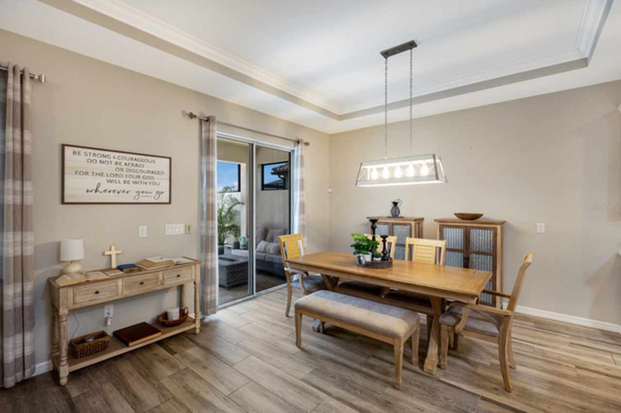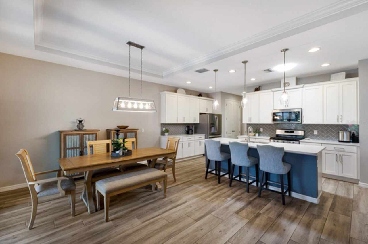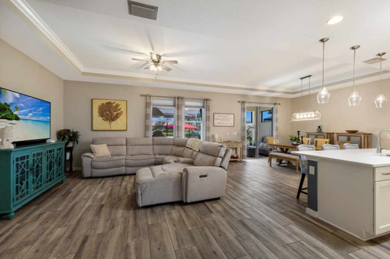 Under contract-accepting backup offers. Welcome to this stunning 2019 Ashton Woods home, perfectly blending timeless elegance with modern comfort. Discover peaceful water views while enjoying your private Florida oasis with the expansive saltwater pool with spa and sun shelf surrounded by a luxurious travertine lanai. The custom outdoor kitchen boasts a gas grill, bar seating, and an extendable awning, making it the perfect spot to entertain year-round. Inside you will find a light and bright open-concept design showcasing neutral finishes throughout, including wood-look tile flooring and tray ceilings with crown molding. A welcoming entry and spacious main hallway lead you into the heart of the home—the chef’s kitchen. Complete with quartz countertops, a stylish herringbone backsplash, a gas range and nearby pantry, this kitchen is designed for both everyday living and entertaining. The large primary suite offers a peaceful retreat, featuring a spa-like ensuite bath with a seamless glass walk-in shower and a separate walk-in closet. Three additional guest bedrooms—all with walk-in closets—provide ample space, with one offering direct access to the spacious guest bath. All surrounded by lush, mature landscaping framing the large backyard and side yard, enhancing both privacy and curb appeal. Located in the desirable As a Links at Rosedale resident, you’ll enjoy an active country club lifestyle with a social membership that includes access to five Har-Tru tennis courts, a Junior-size Olympic swimming pool, a state-of-the-art wellness center, and a modern clubhouse offering a dining room, lounge, game room "19th hole" and bistro patio. With community fees covering two manned gates, dog parks, and landscaping, plus no CDD fees, you’ll relish low-maintenance living. Centrally located in Bradenton, you're just minutes from I-75, Lakewood Ranch, the UTC Mall, Gulf-coast beaches, and the Sarasota/Bradenton International Airport.
