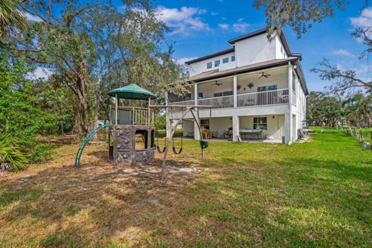 Welcome to this thoughtfully designed, custom-built 4-bedroom, 2.5-bath, 2, 560 sq ft home. LVP flooring on the main level, and carpet in the bedrooms, it sits on a private 1-acre lot with mature trees and backs up to protected wetlands. Enjoy the 380 sq ft screened porch, backyard playground, and fire pit, perfect for cozy evenings. The 1, 700 sq ft garage offers space for multiple vehicles, ATVs, and more, with no HOA restrictions. Located just 3.4 miles from Tampa Airport, 10 miles from downtown, and close to Gulf beaches, this home combines comfort, privacy, and convenience!