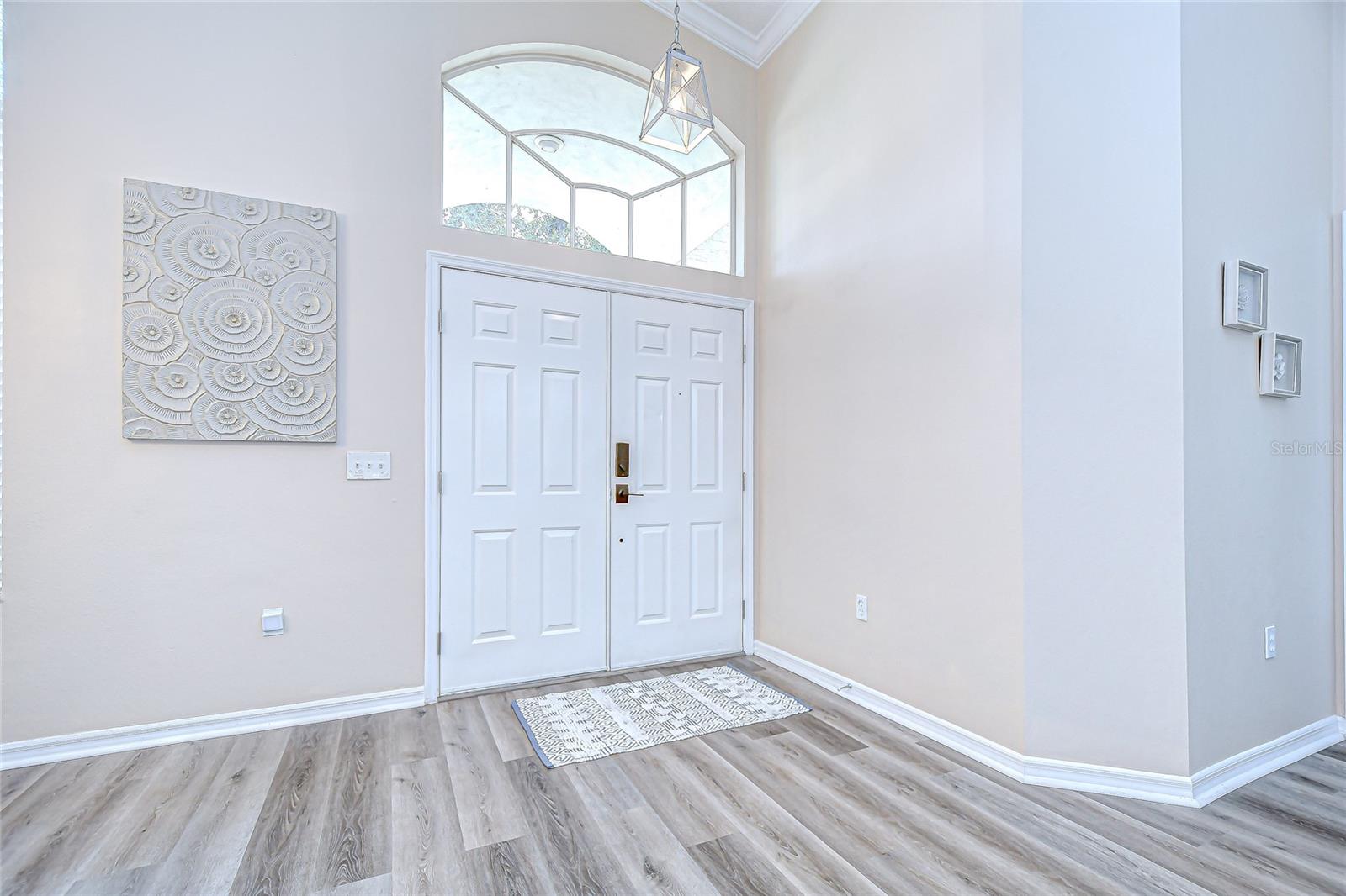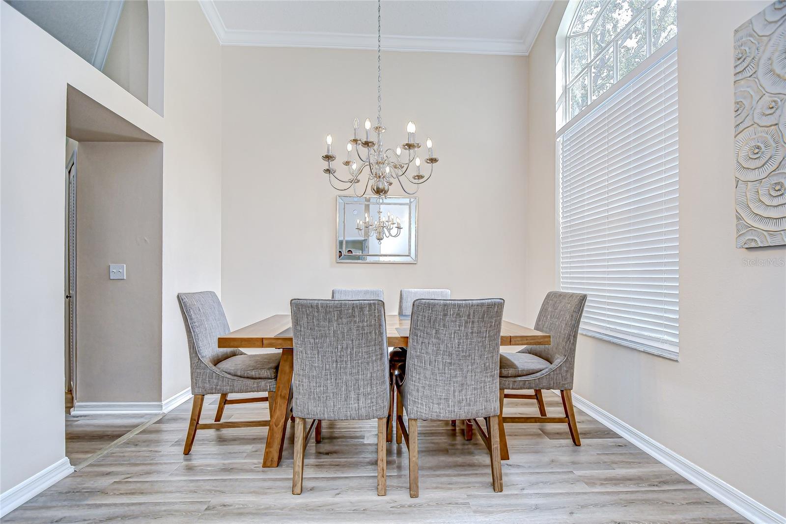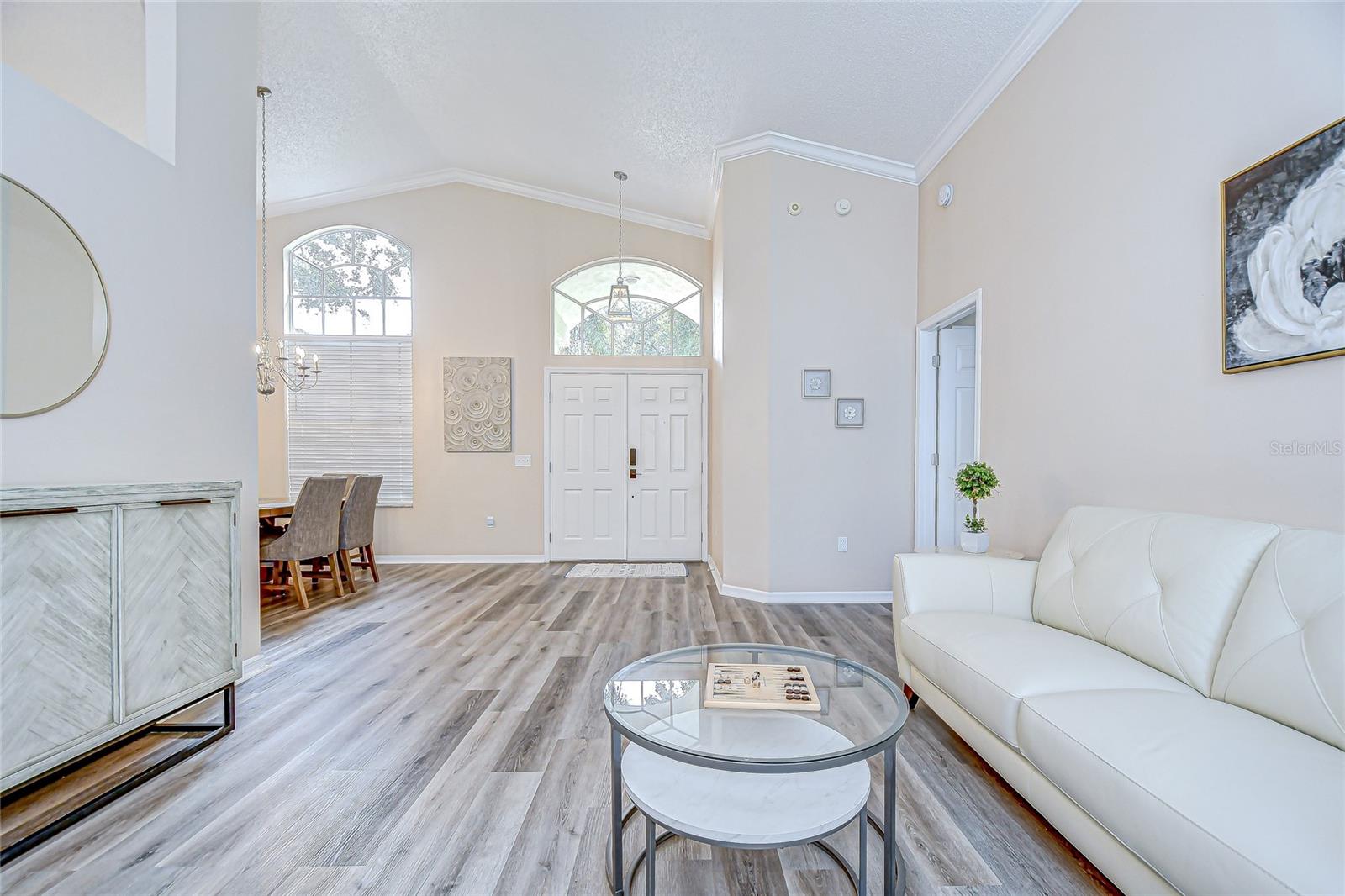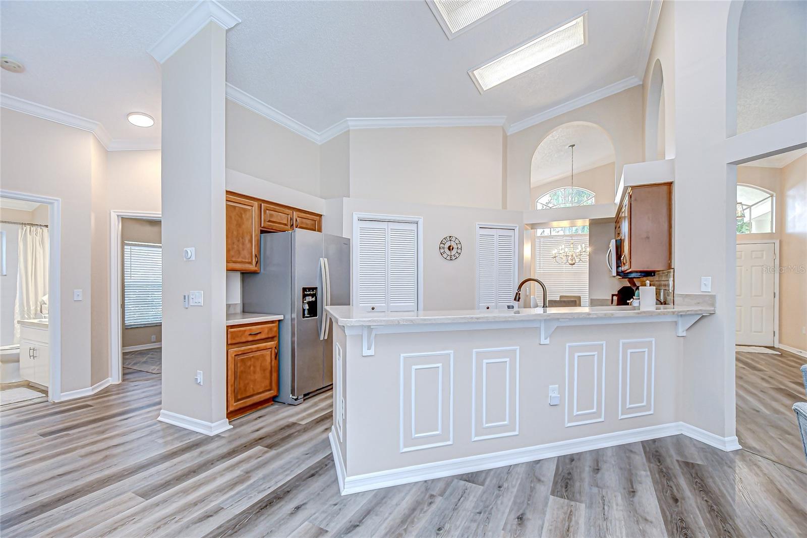 Ceiling Fans(s), Crown Molding, Eat-in Kitchen, High Ceilings, Kitchen/Family Room Combo, Open Floorplan, Primary Bedroom Main Floor, Thermostat, Vaulted Ceiling(s), Walk-In Closet(s)
