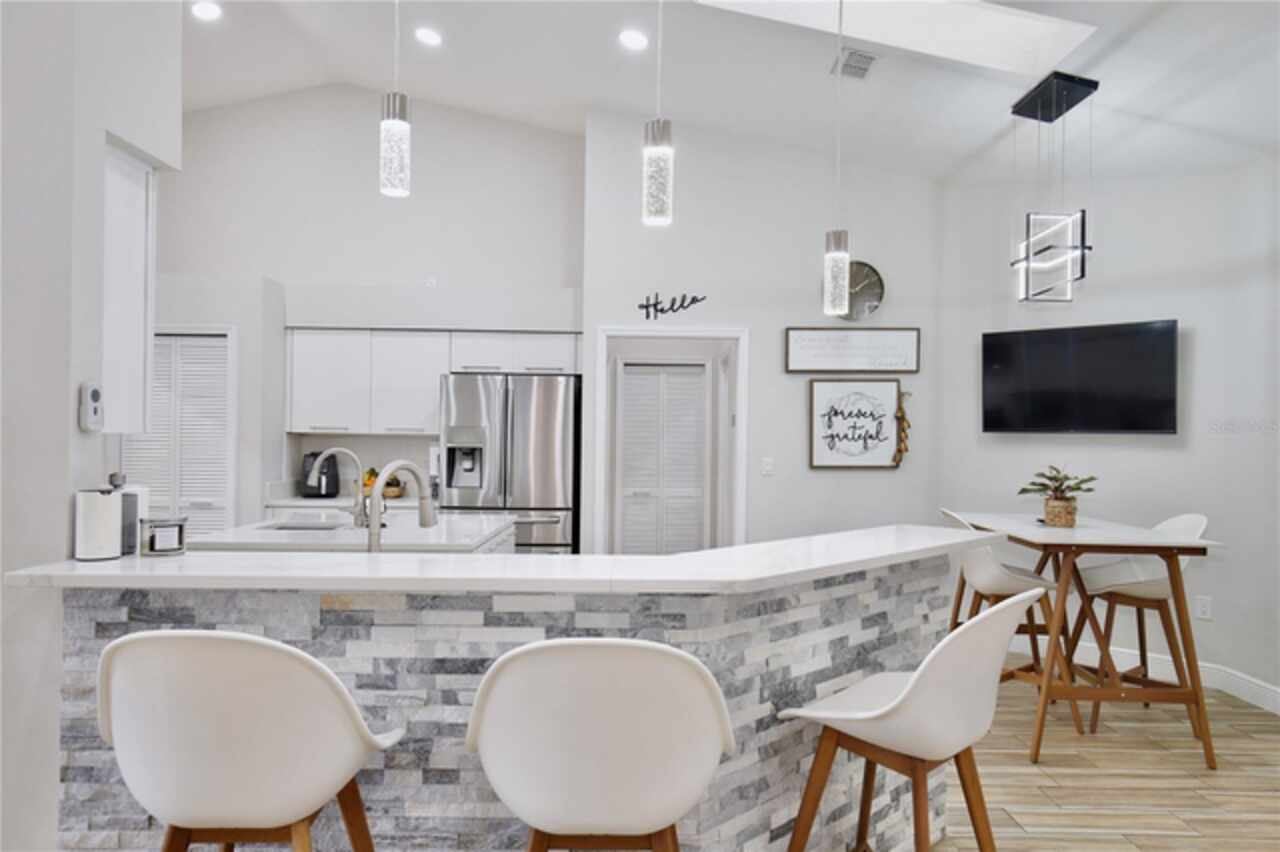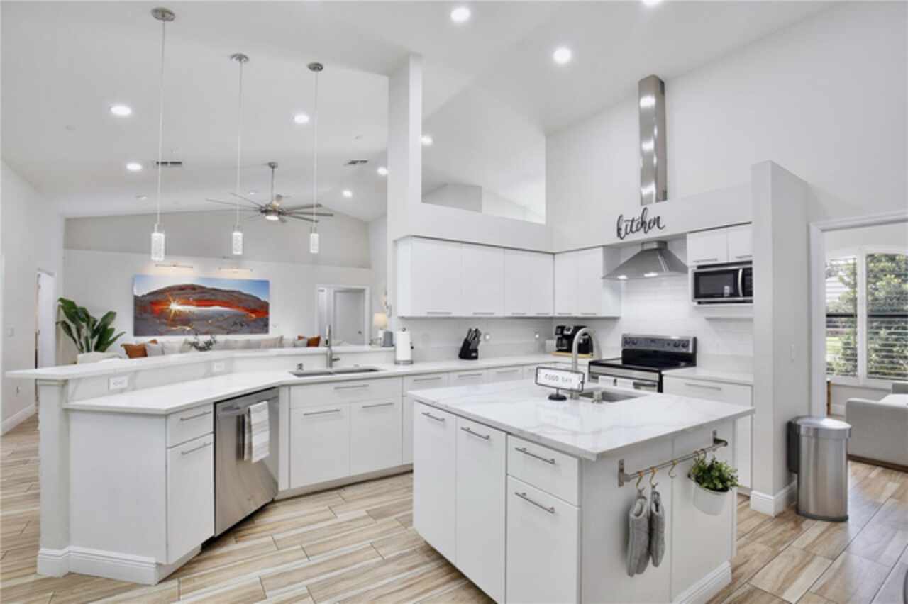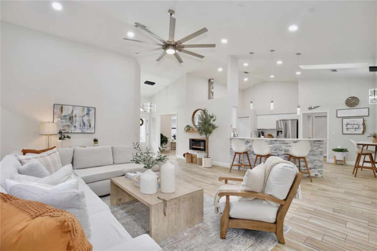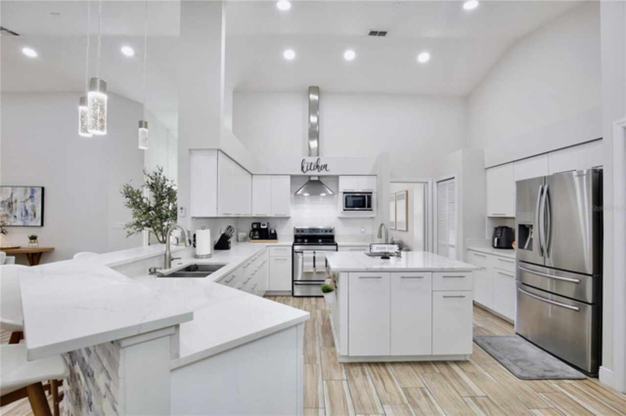 Under contract-accepting backup offers. Discover the epitome of Floridian luxury living in this stunning fully remodeled waterfront home. Nestled in the gated community of East Lake Reserve, this property offers a serene oasis with its captivating curb appeal, meticulous landscaping, and breathtaking water views. Step inside to an open and airy interior boasting neutral colors, soaring ceilings, and stylish accent lighting. New wood style flooring flows throughout the home, leading you to a spacious living room that transitions seamlessly into an enclosed sunroom, perfect for soaking in the tranquil waterscape. The heart of the home is the newly remodeled kitchen, featuring stainless steel appliances, sleek modern cabinets, and bar top seating under elegant pendant lighting. Accentuated with decorative tile and recessed lighting, the space includes a convenient pantry and a cozy breakfast nook illuminated by a modern chandelier. Beyond the kitchen, the home offers versatility with formal living and dining spaces, currently utilized as a relaxing sitting room and a home office with plantation shutters and a chic glass door entry. The grand primary suite is a private retreat, with a walk in closet offering custom built ins and a hidden storage behind the mirror, perfect for storing shoes. The adjoining updated modern bath is a sanctuary complete with dual vanities and a colossal shower housing a freestanding tub amid exquisite tiling. Guests will enjoy the three additional bedrooms, complete with mirrored closets and plantation shutters. Updated guest baths feature glass door showers and beautiful tile work. A functional laundry room boasts storage cabinets, a sink, and a large folding station. Step outside to a beautifully landscaped outdoor space with a partially covered paver patio and water views, ideal for entertaining or unwinding with nature's soundtrack. Or walk across the street to the community’s boat dock and fishing pier to reel in a fresh catch for dinner. You’ll be a short drive from Orlando International Airport, Lake Nona Medical City, and 417. Spend the weekends browsing the quaint downtown streets of St Cloud, savoring the food trucks of Boxi Park, or go skating at the Ice Factory. There’s endless things to do in this amazing location! Immerse yourself in the 3D tour and schedule a showing to experience this dream home today.